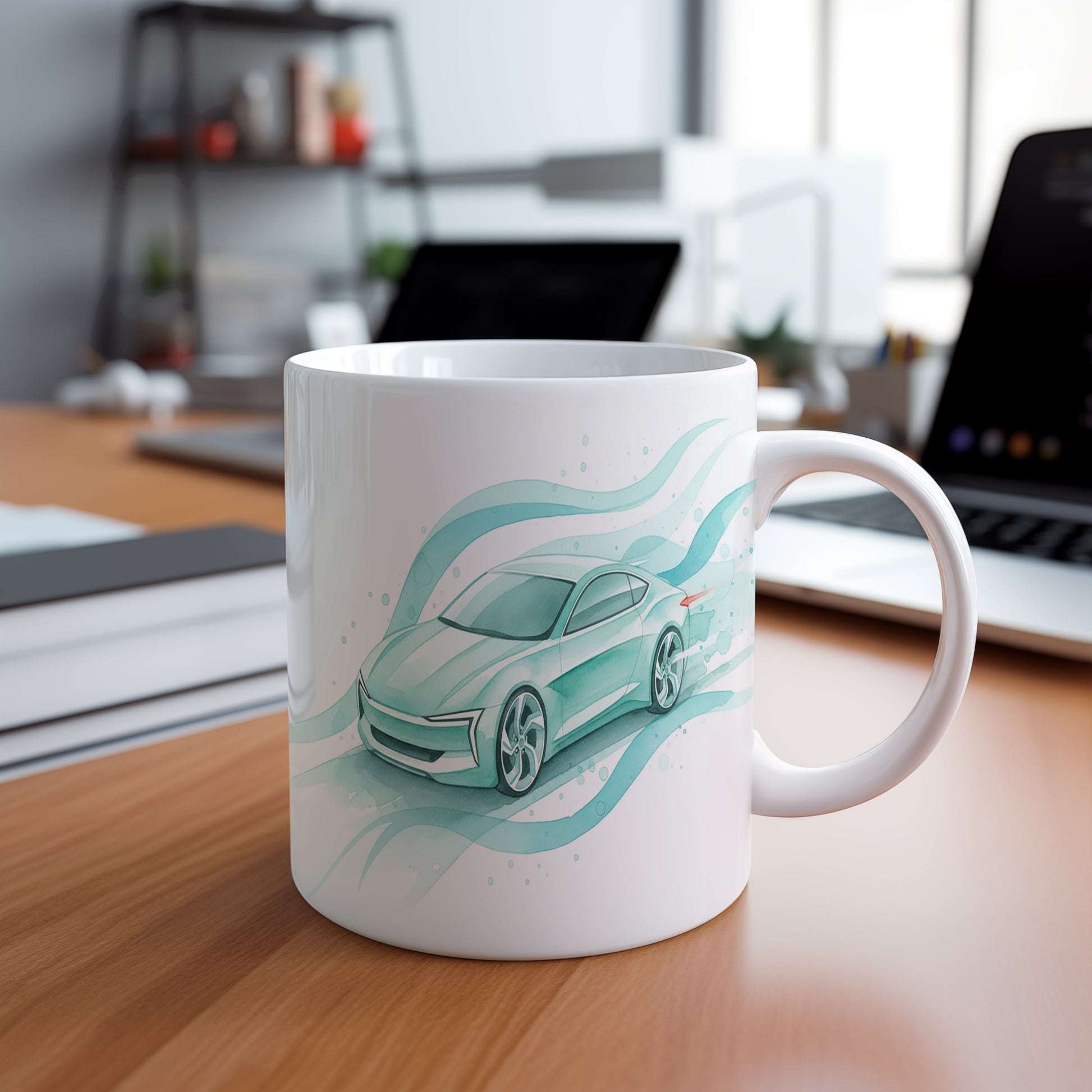 Objevte eleganci a rychlost s hrnkem, na kterém je zachycen futuristický automobil v dynamickém akvarelovém stylu. Hrnek 330 ml – vhodný do myčky i mikrovlnky.