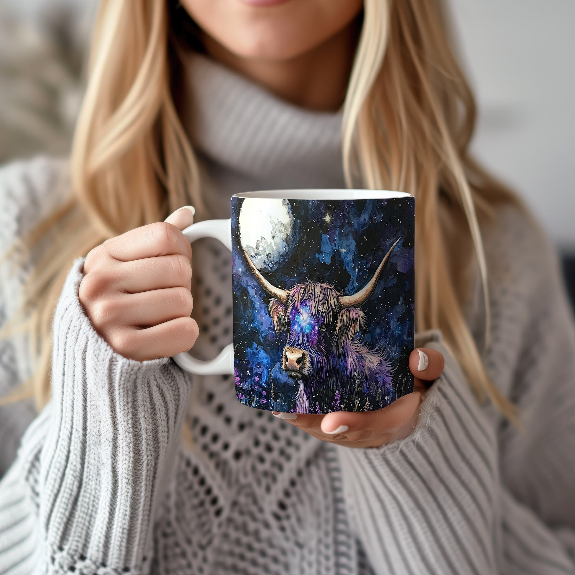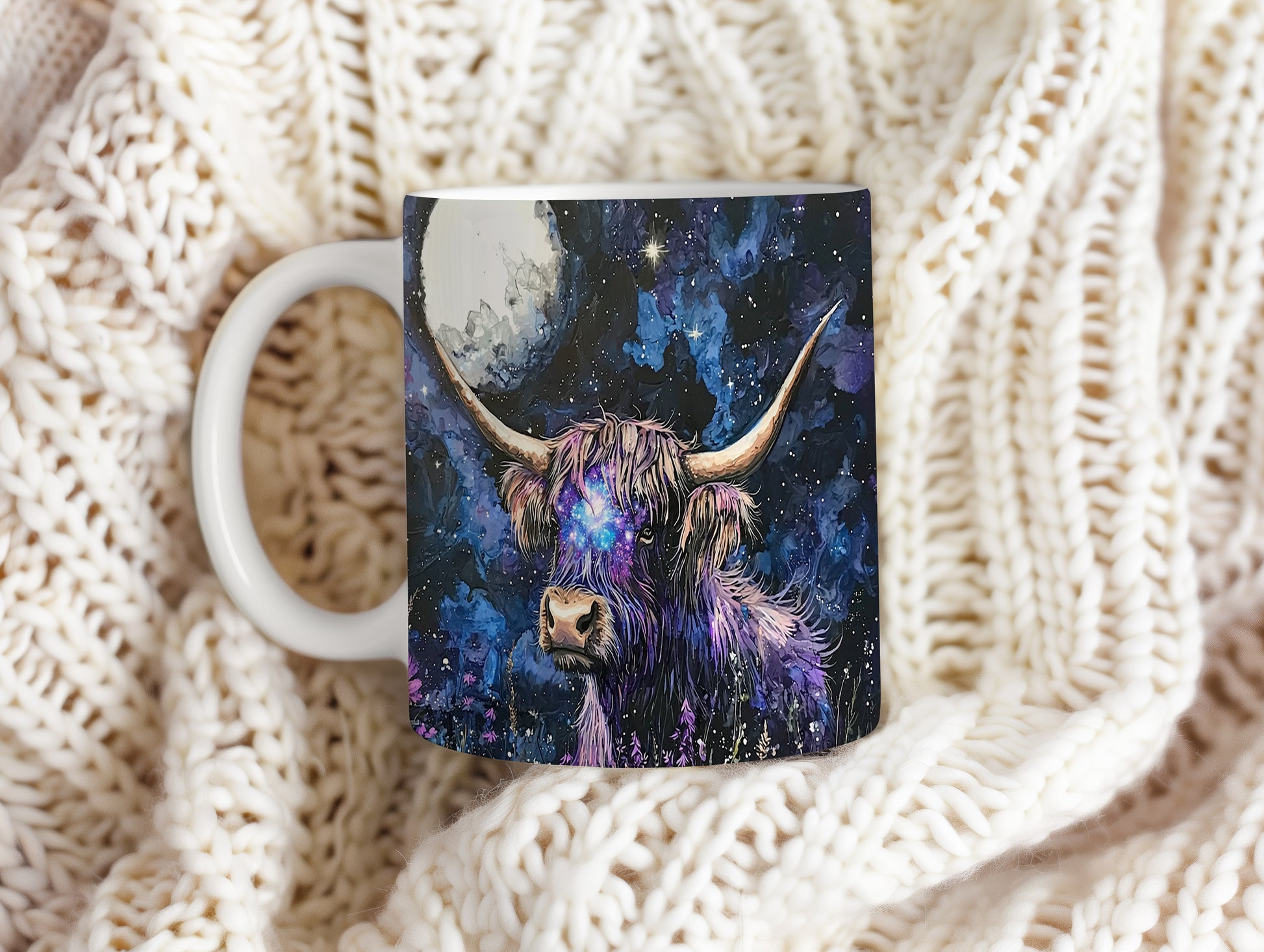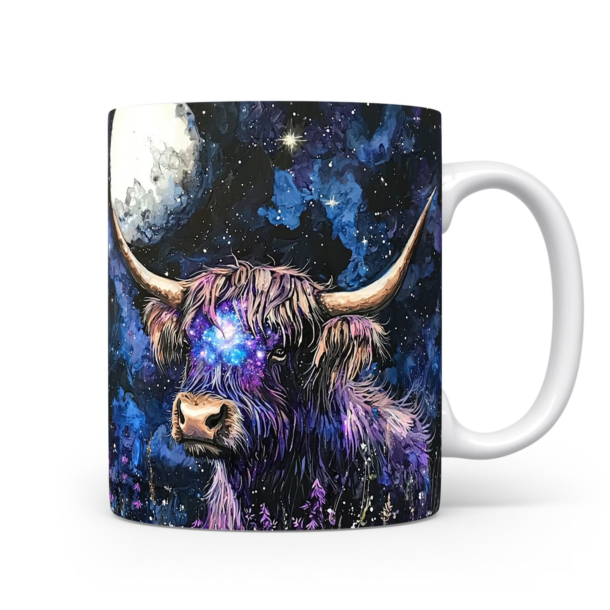 Hrnek s galaxií v modrých a fialových tónech