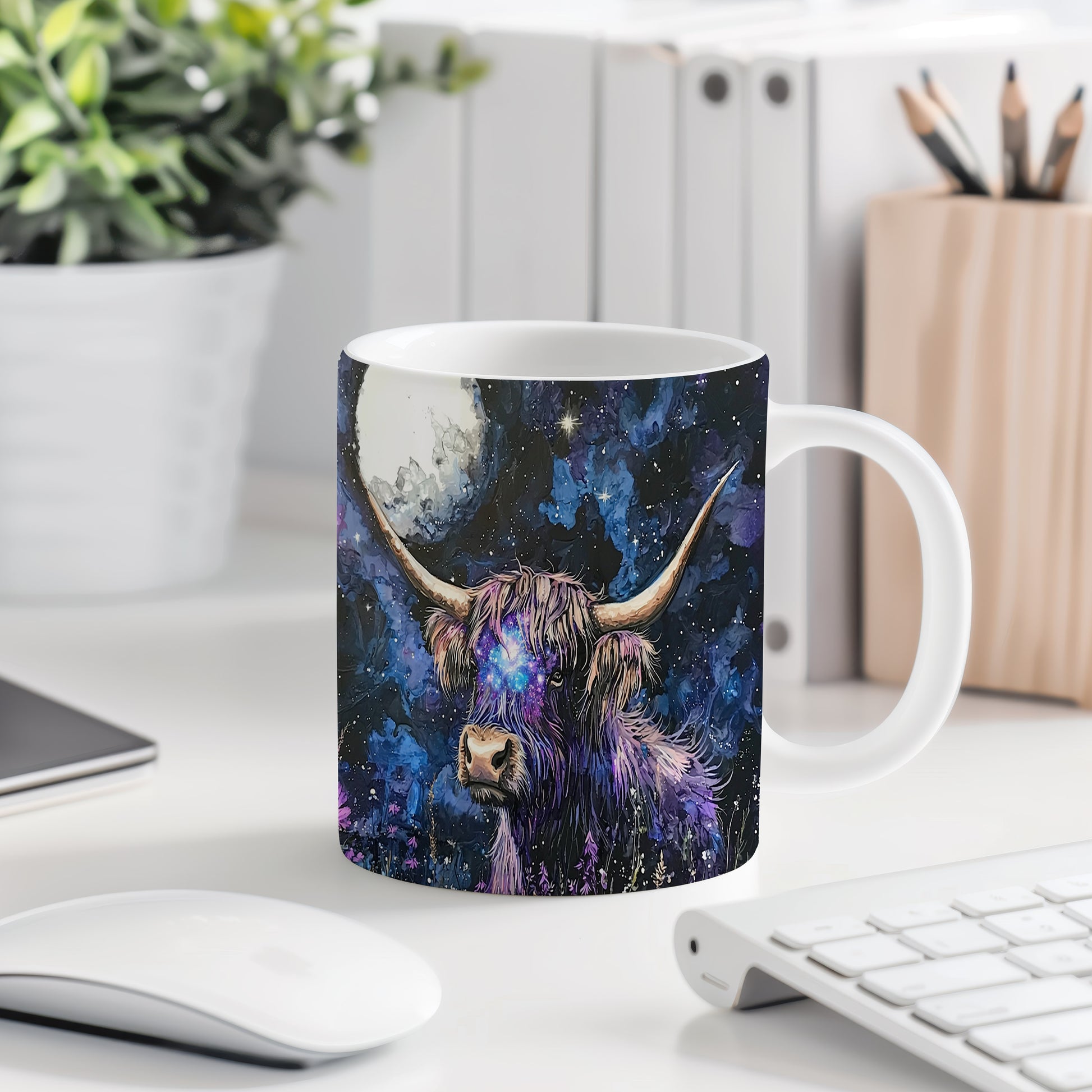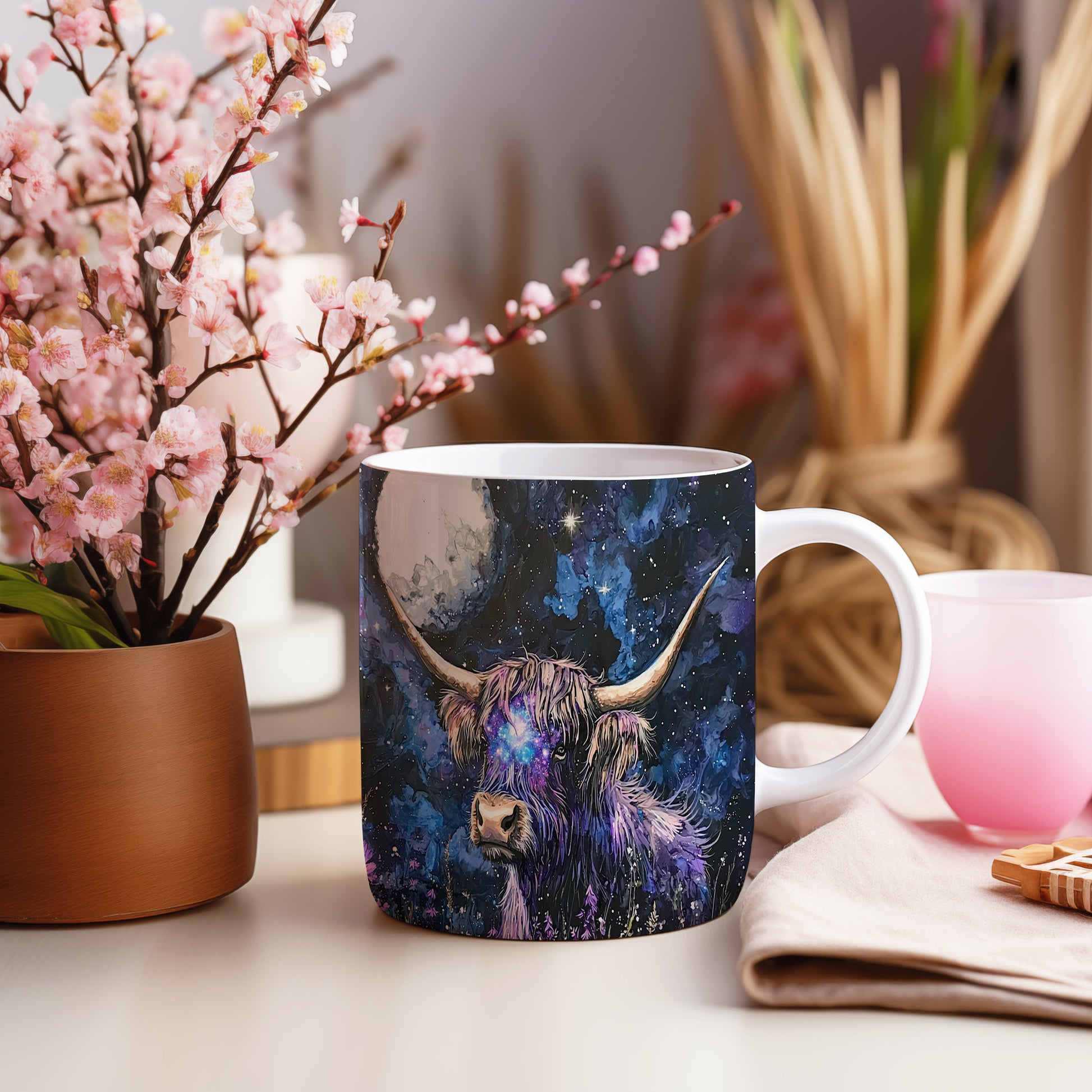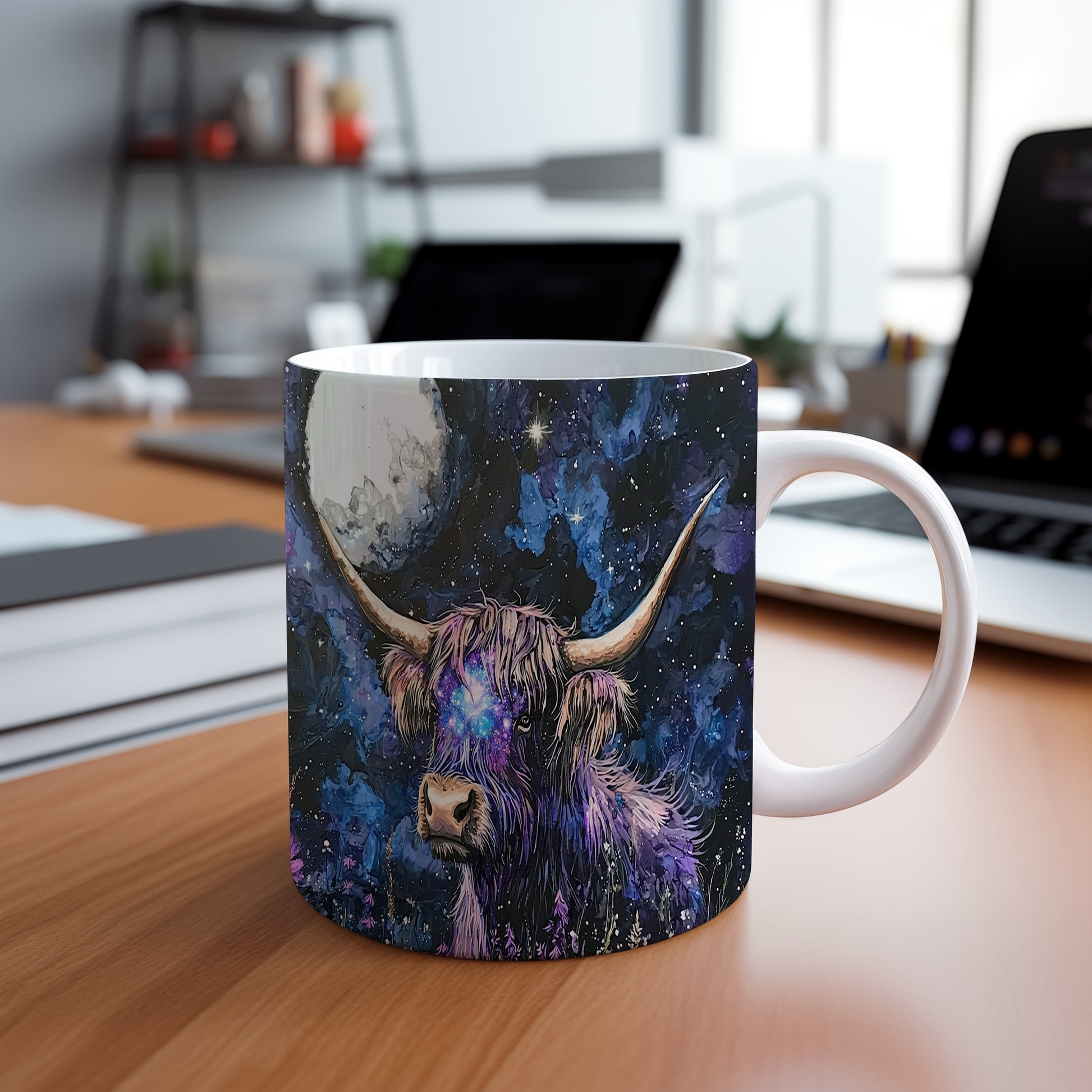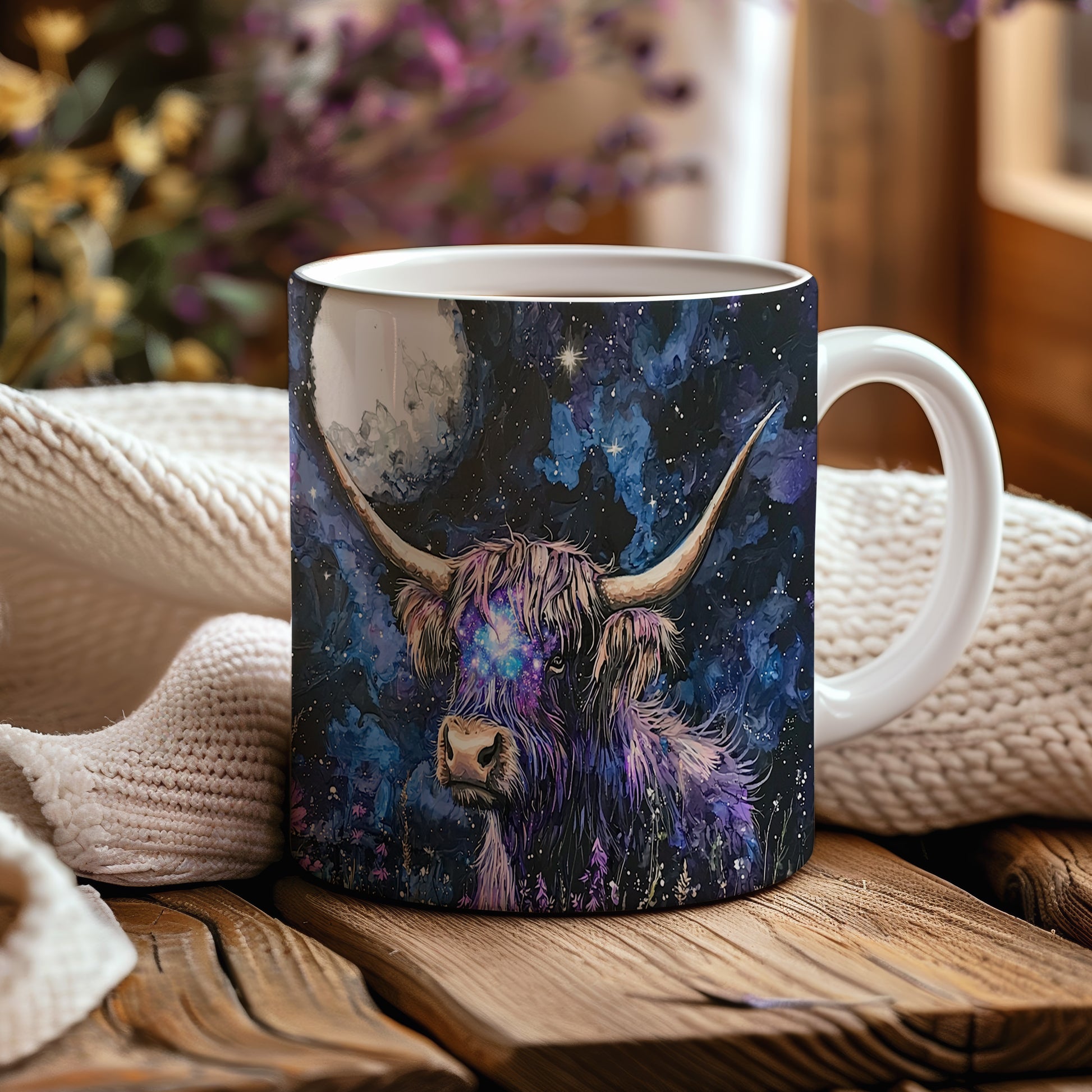 Hrnek s galaxií v modrých a fialových tónech