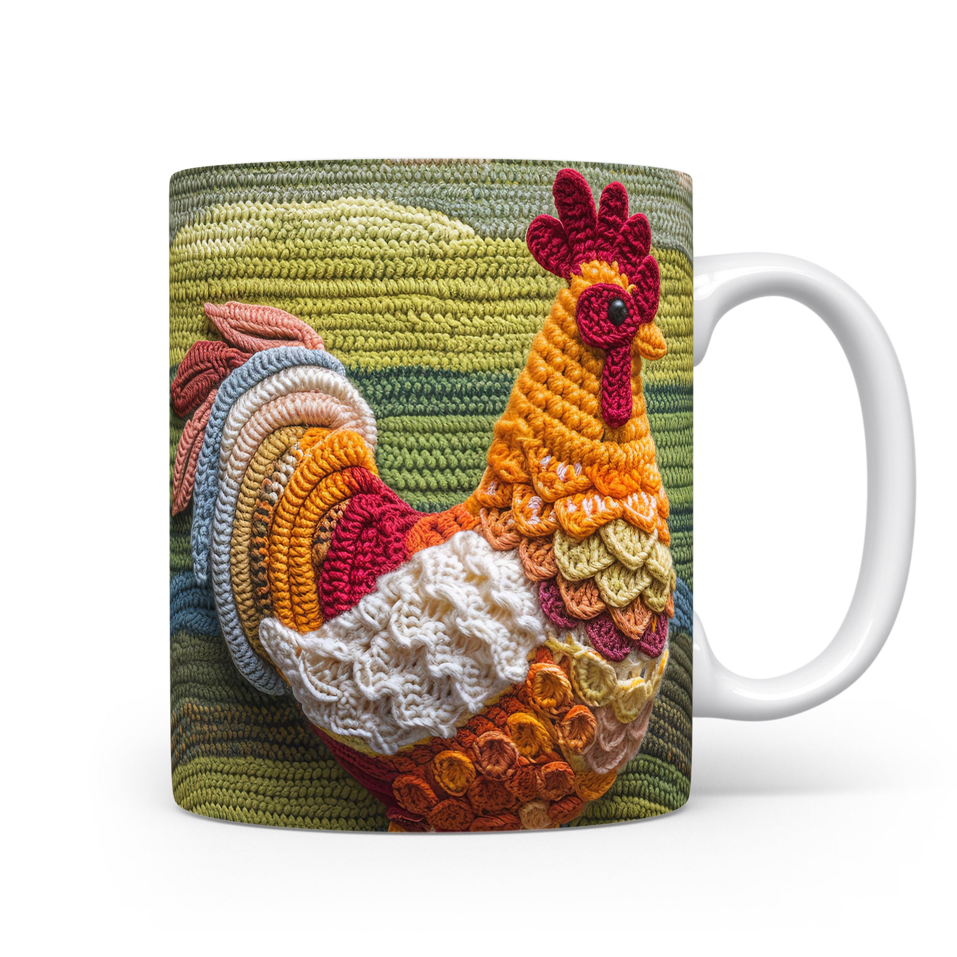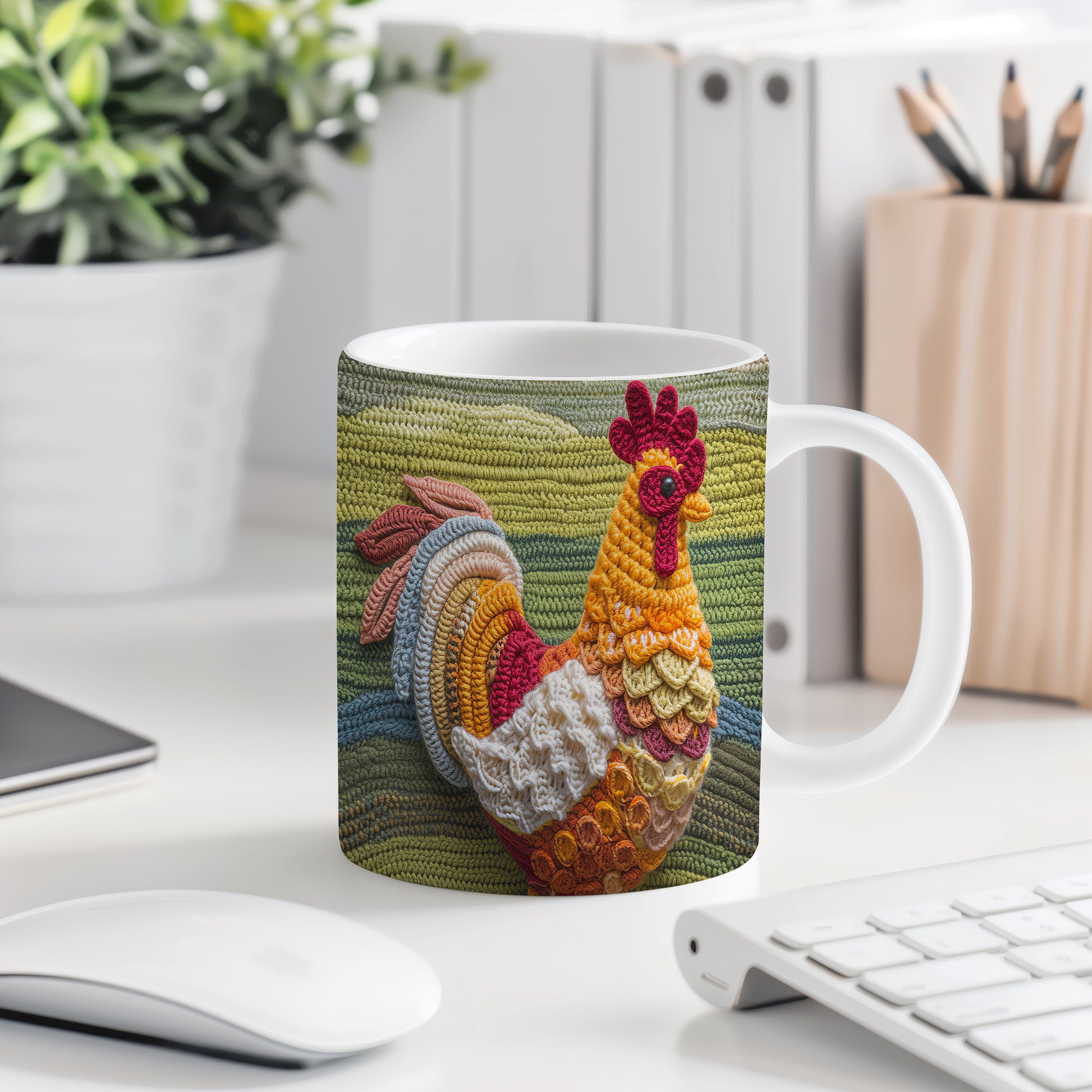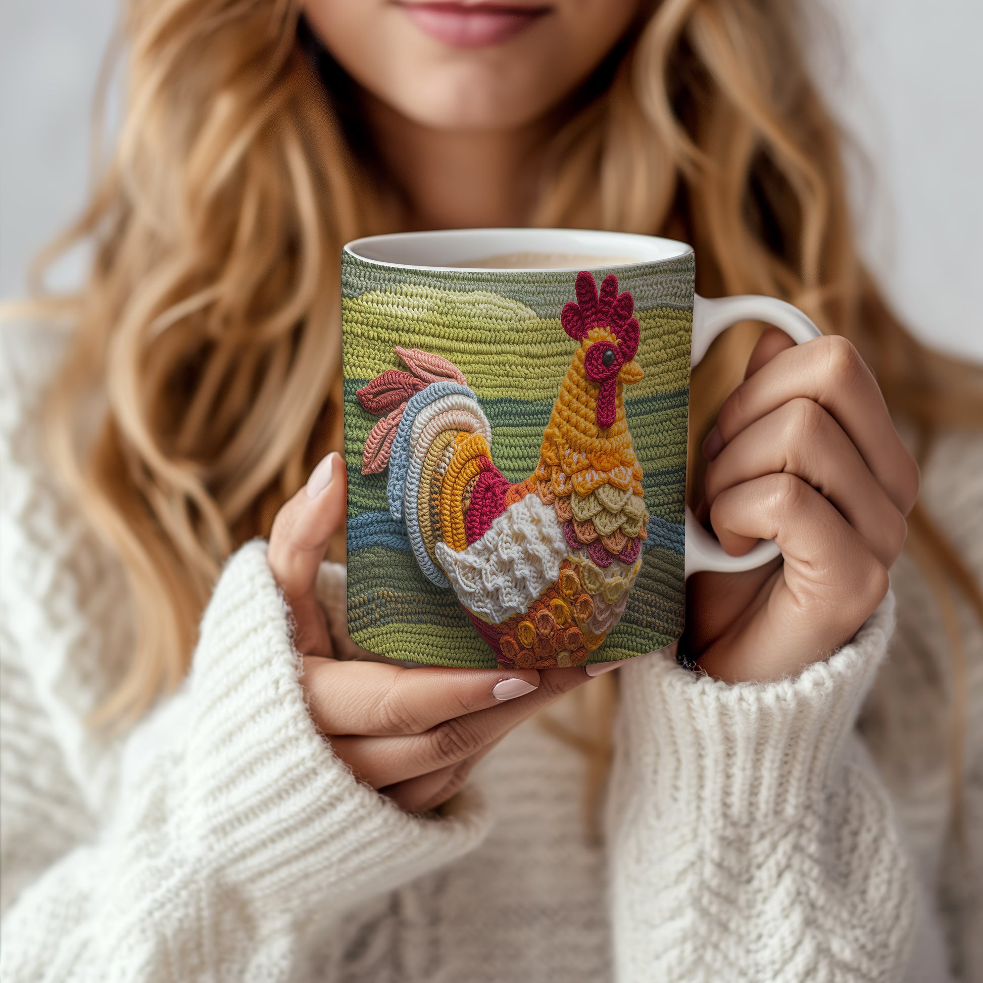 Keramický hrnek s motivem háčkované slepice v teplých barvách. Tento hrnek je ideální pro milovníky rukodělné práce a originálního designu, skvělý tip na dárek pro kreativní duše. Materiál: keramika. Objem: 330 ml. Vhodné do myčky i mikrovlnky. Používání tohoto hrnku přináší radost a útulnost do každého dne.