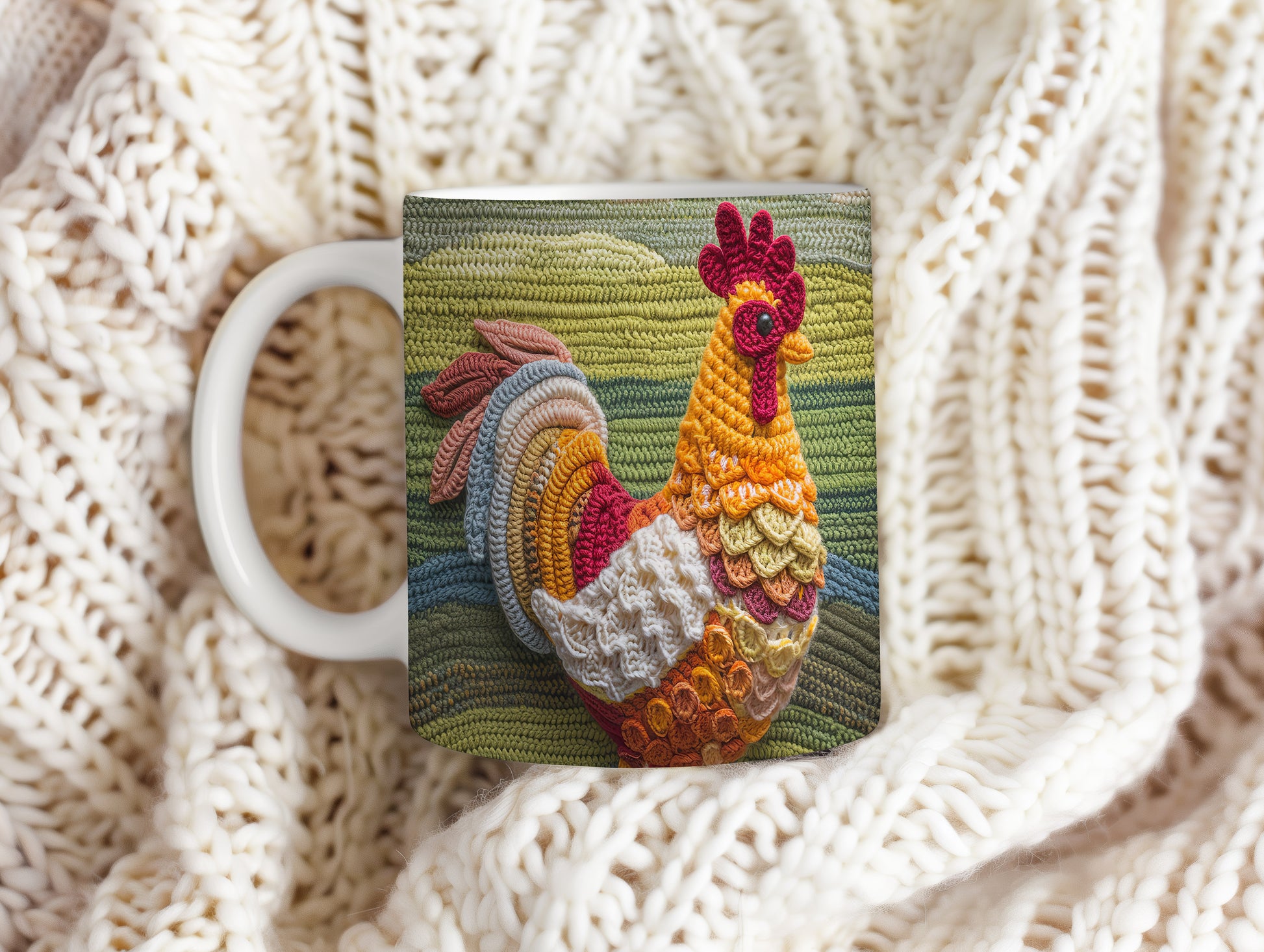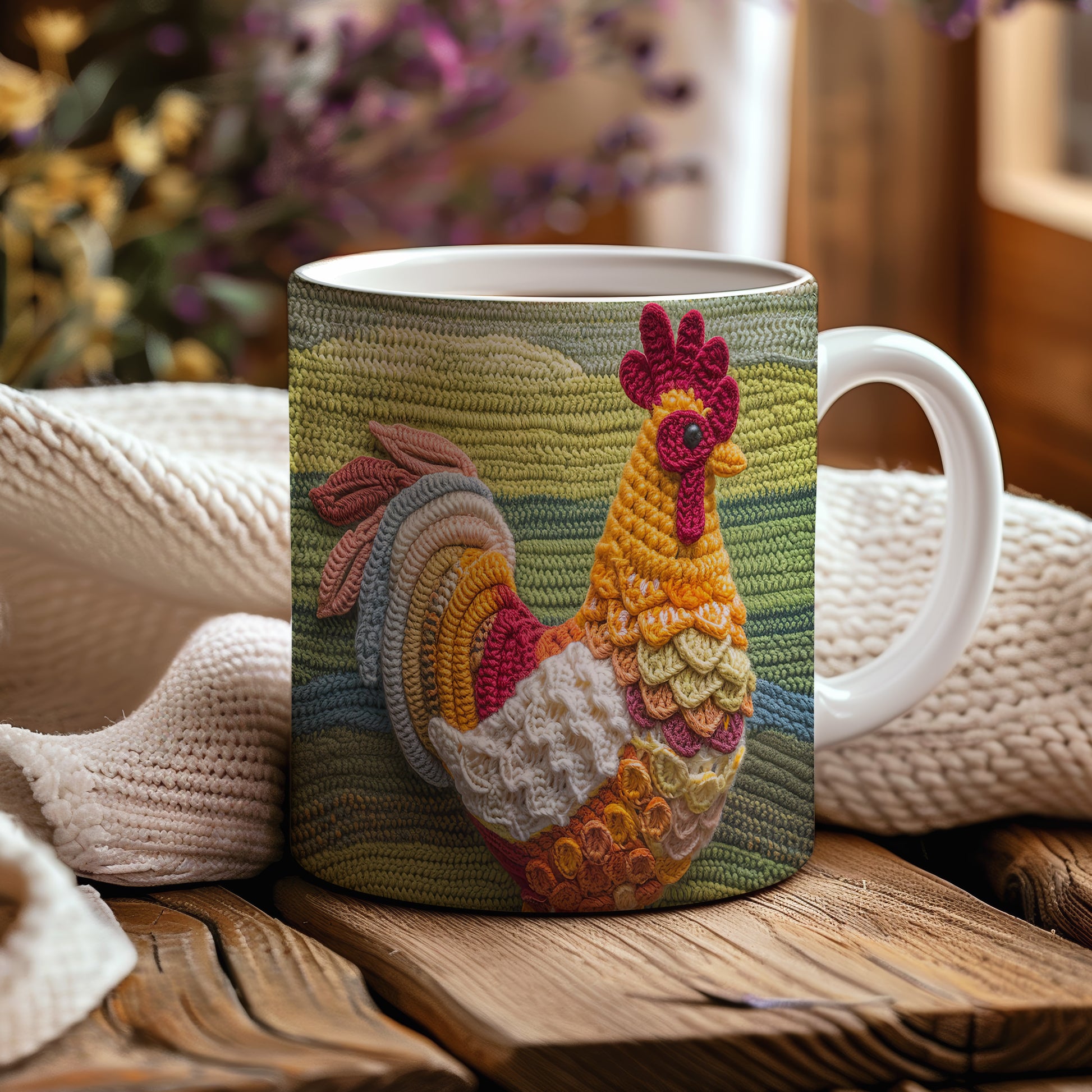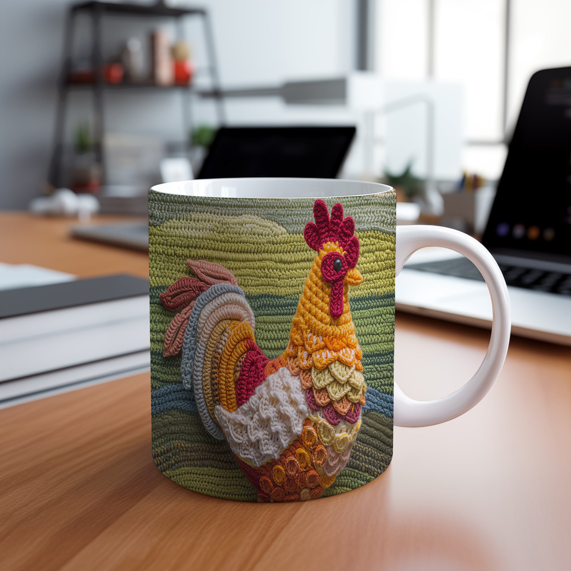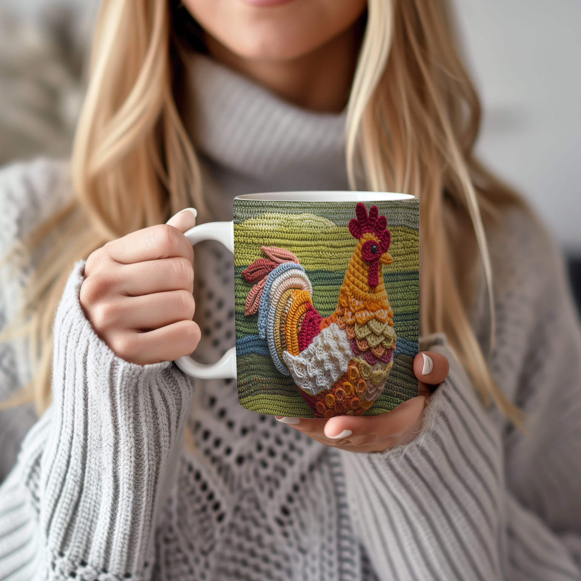 Keramický hrnek s motivem háčkované slepice v teplých barvách. Tento hrnek je ideální pro milovníky rukodělné práce a originálního designu, skvělý tip na dárek pro kreativní duše. Materiál: keramika. Objem: 330 ml. Vhodné do myčky i mikrovlnky. Používání tohoto hrnku přináší radost a útulnost do každého dne.