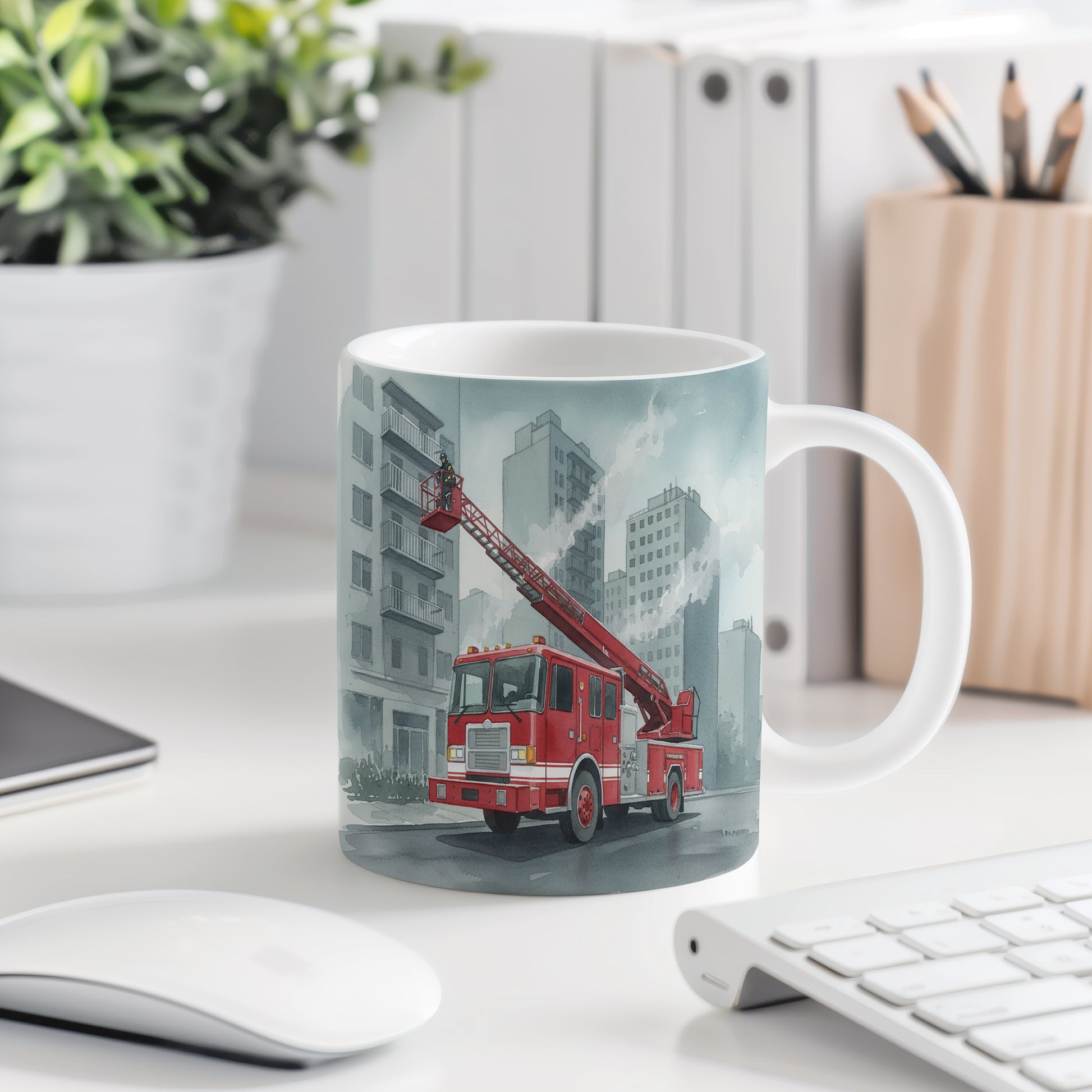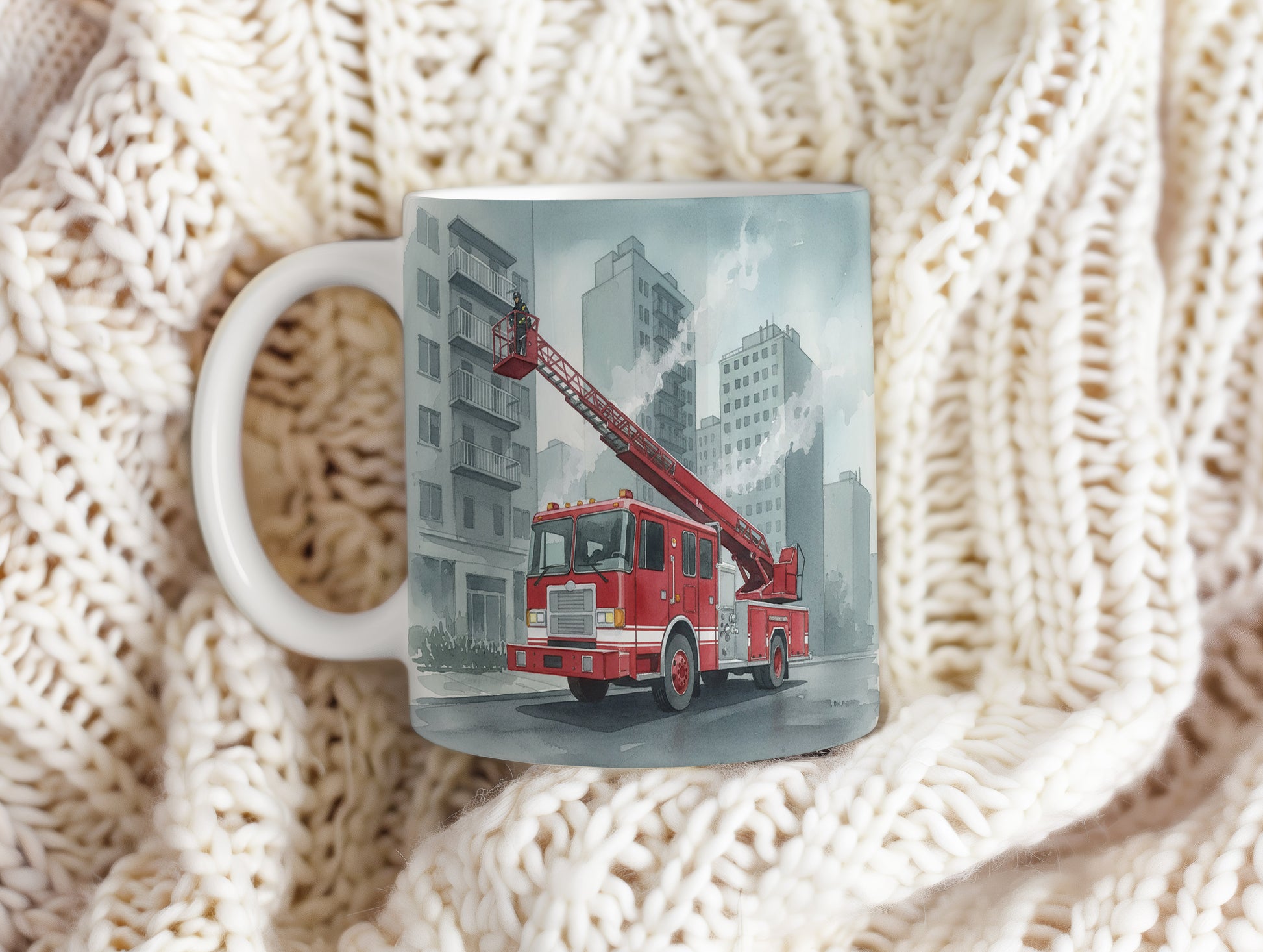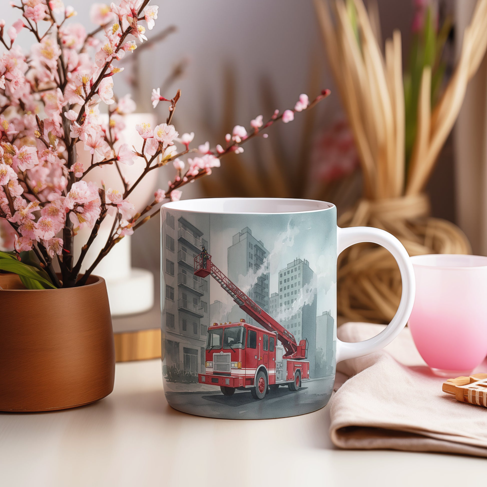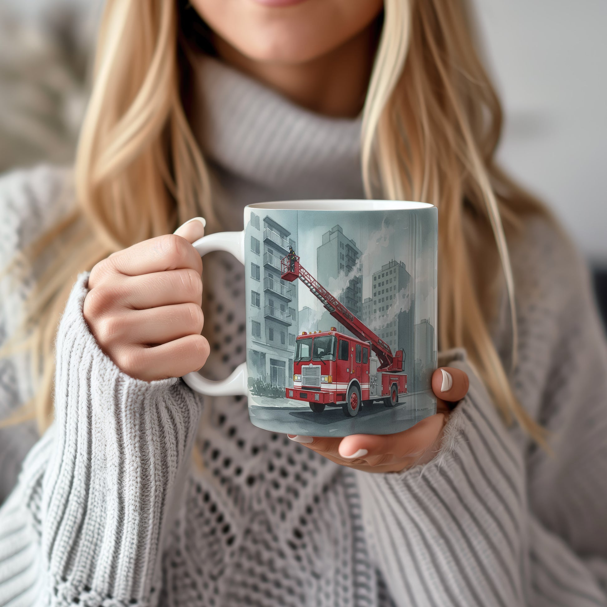 Prožijte dynamiku města s hrnkem, na kterém akvarelově vyniká červený hasičský vůz v akci mezi budovami. Hrnek 330 ml – vhodný do myčky i mikrovlnky.