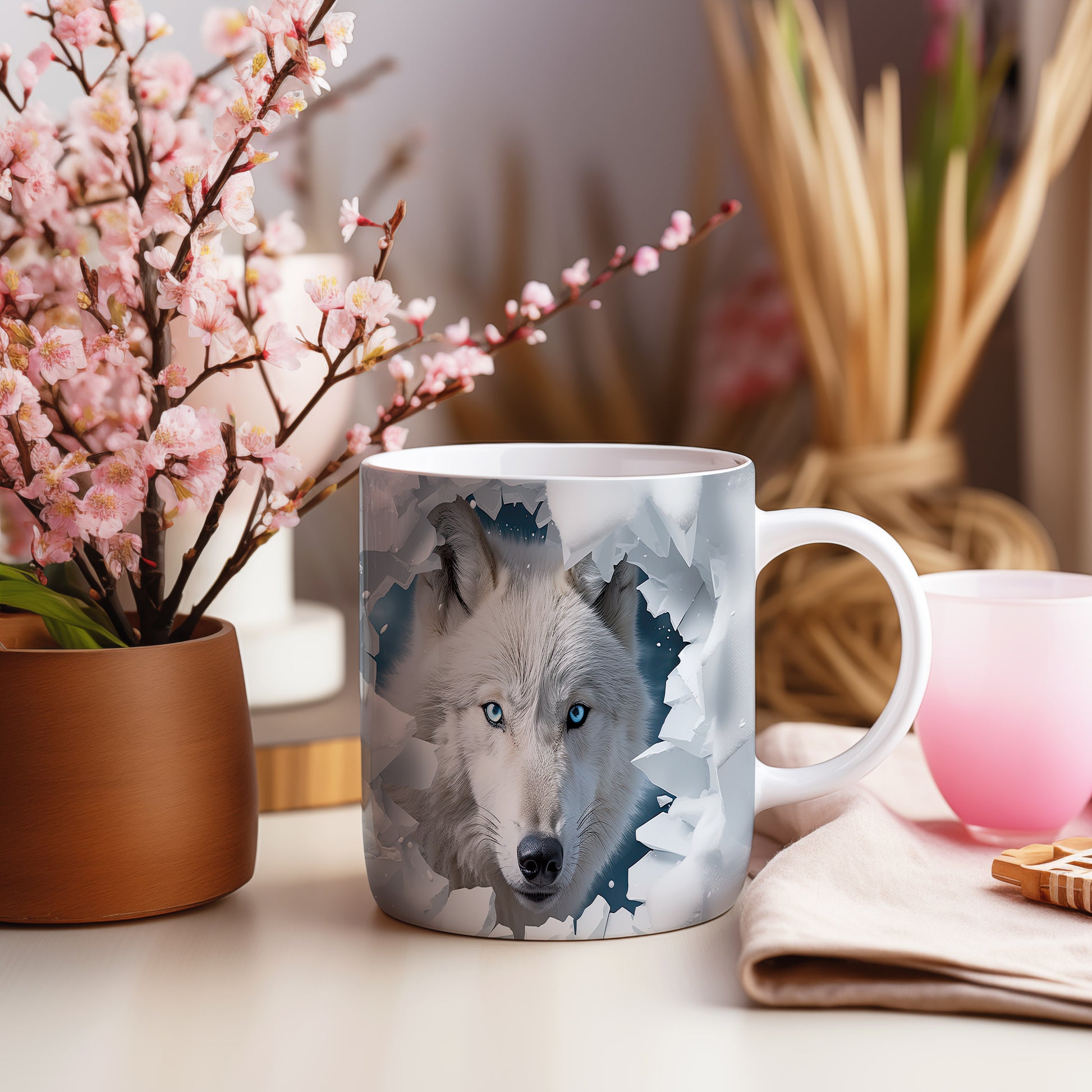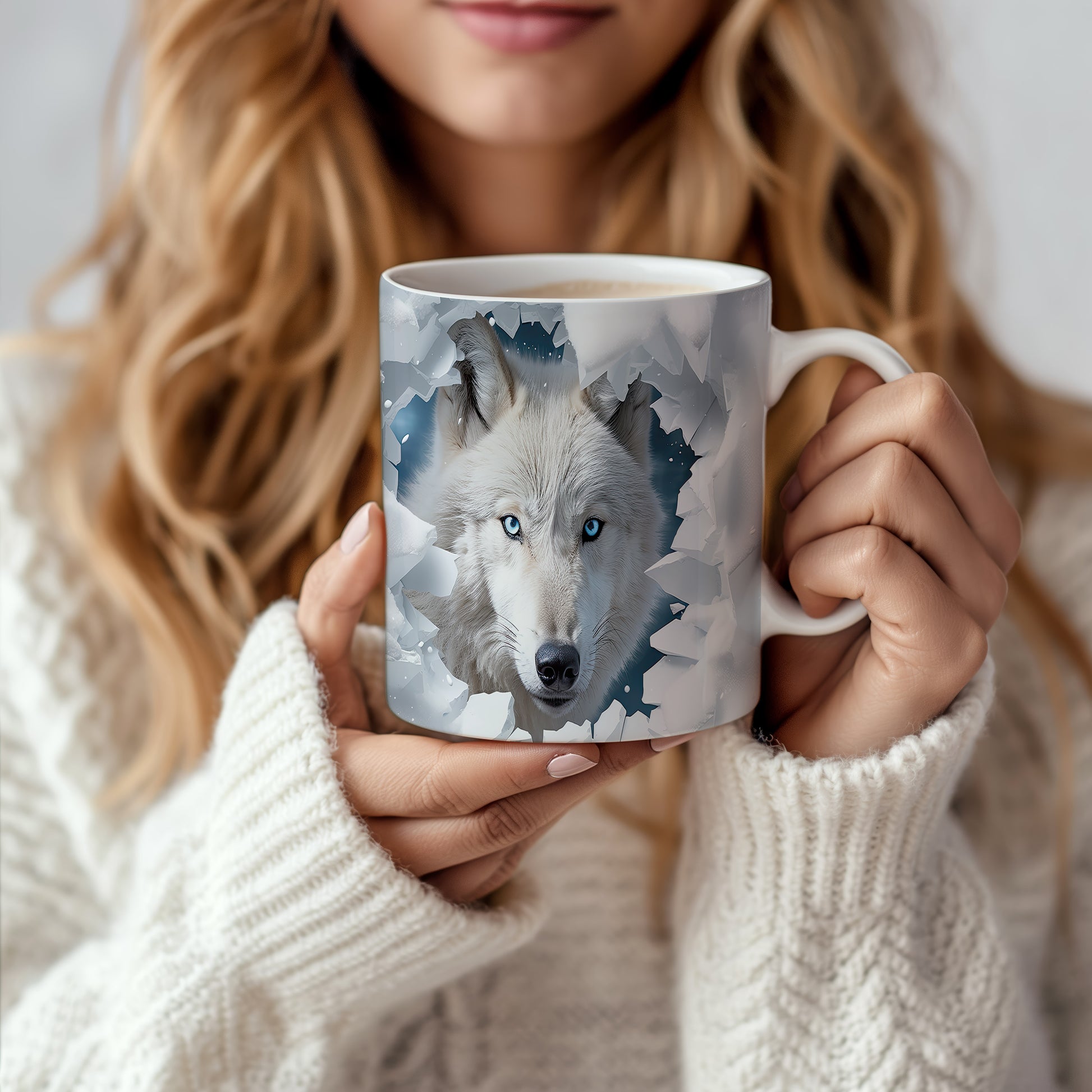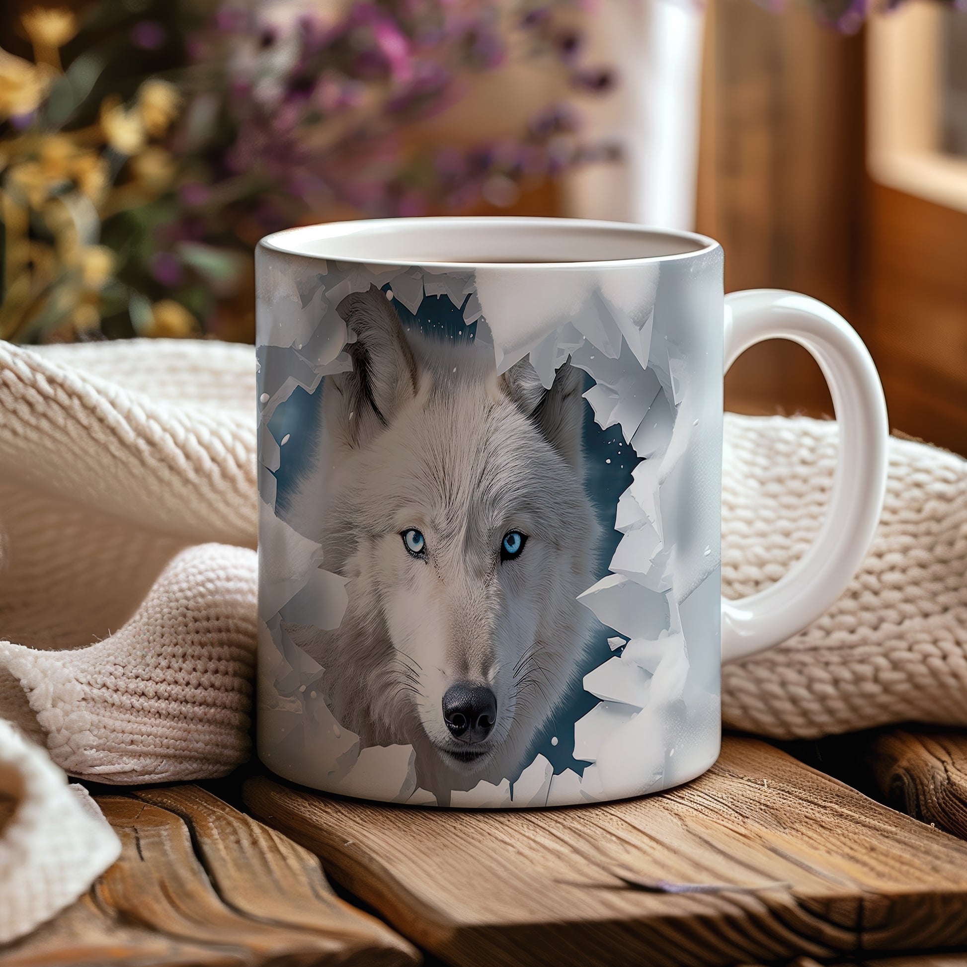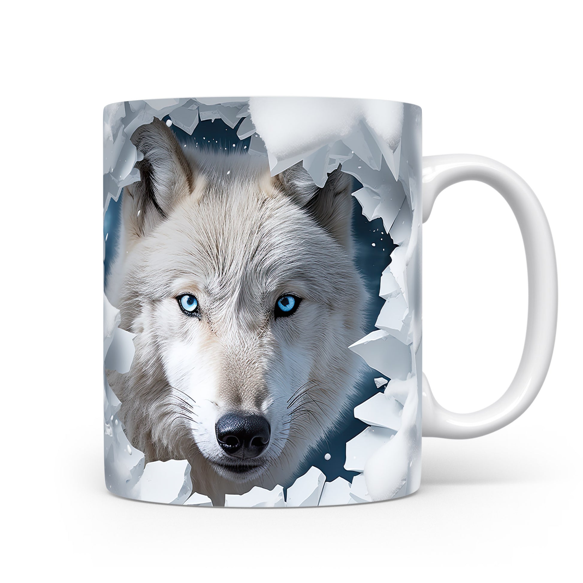 Tento keramický hrnek zobrazuje detailní motiv bílého vlka s modrýma očima. Je ideální pro milovníky přírody a zvířat, skvělý tip na dárek pro každého, kdo ocení jedinečný design. Materiál: keramika. Objem: 330 ml. Vhodné do myčky i mikrovlnky. Používání tohoto hrnku přináší radost z pití oblíbeného nápoje s nádechem divočiny.