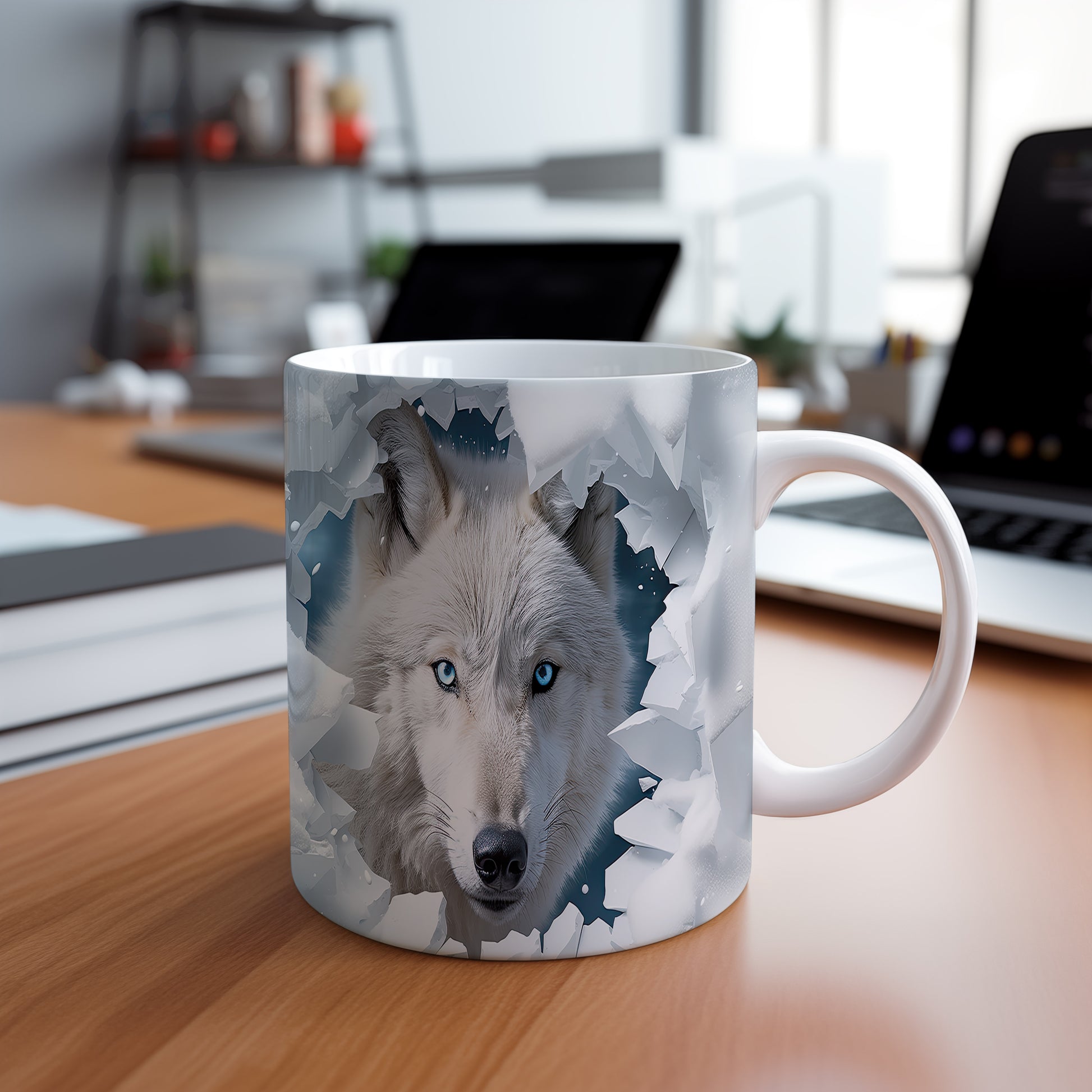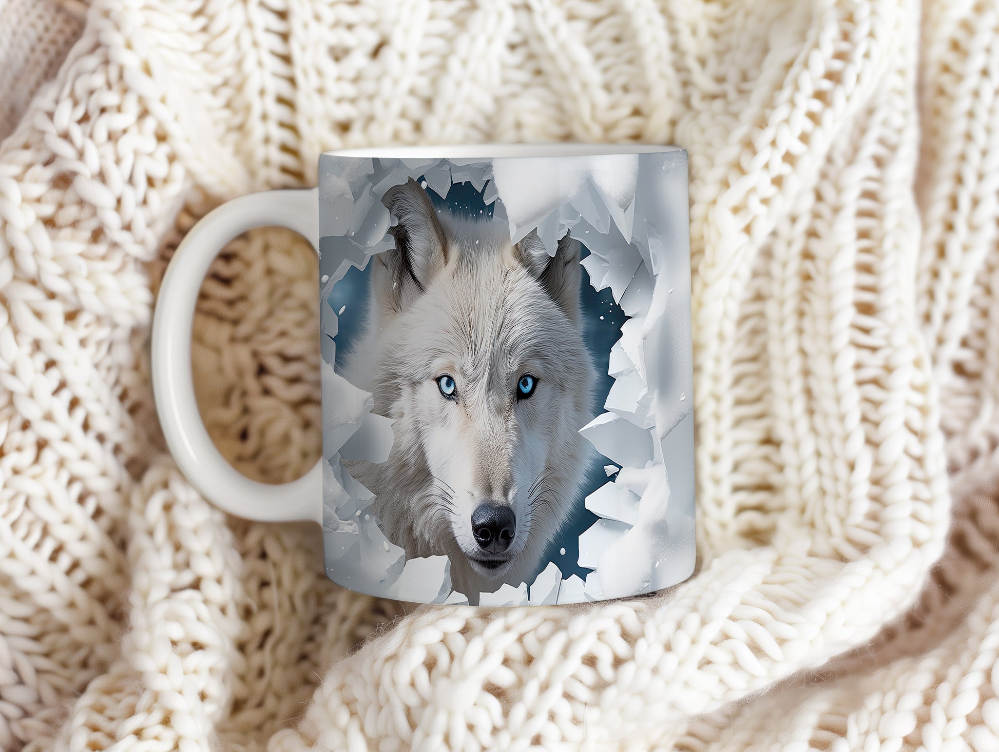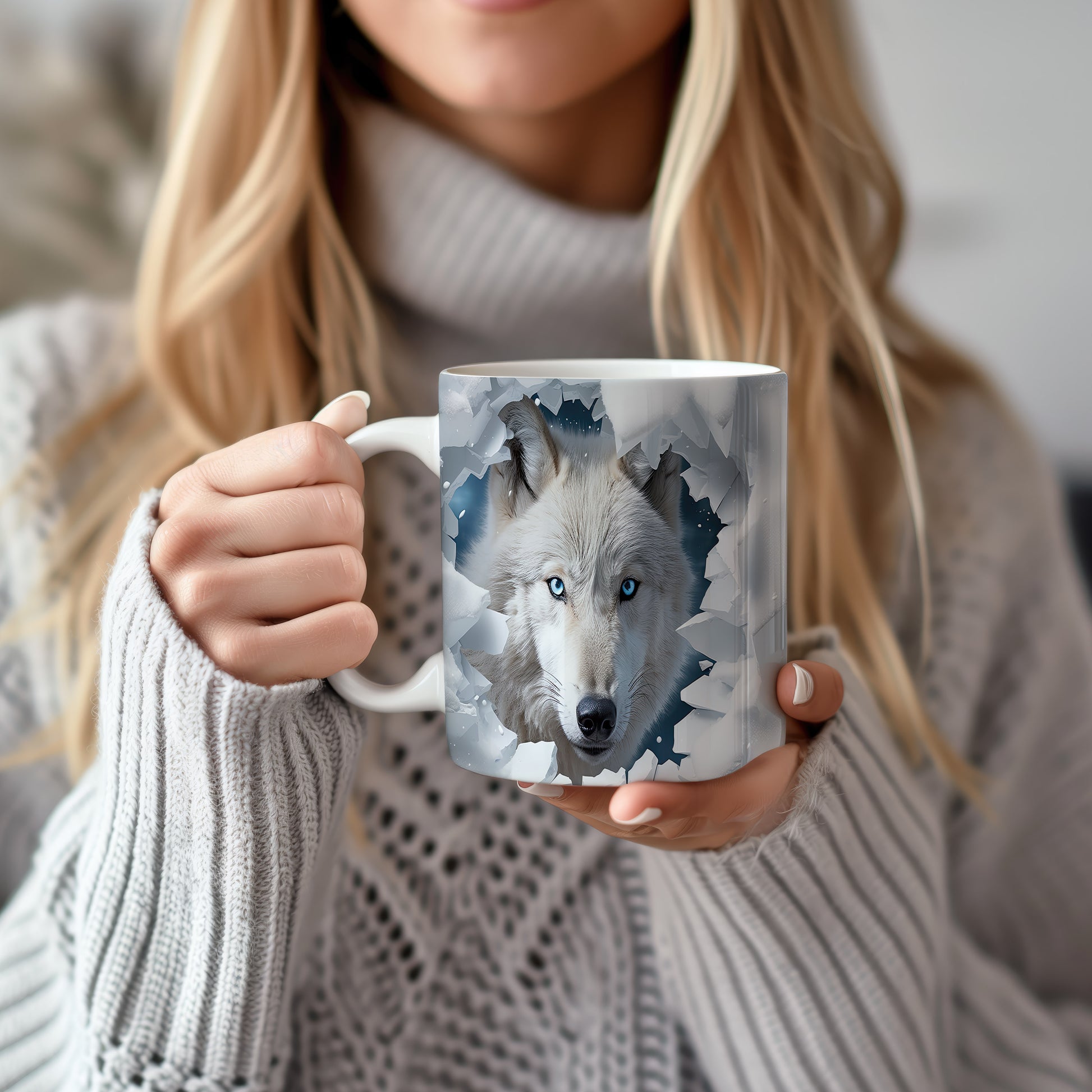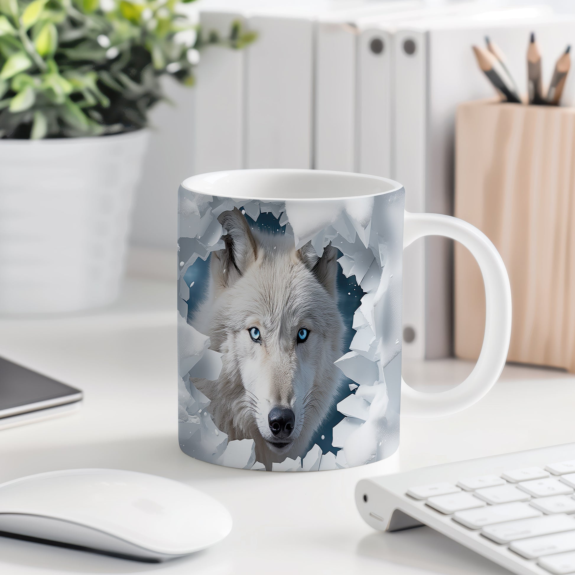 Tento keramický hrnek zobrazuje detailní motiv bílého vlka s modrýma očima. Je ideální pro milovníky přírody a zvířat, skvělý tip na dárek pro každého, kdo ocení jedinečný design. Materiál: keramika. Objem: 330 ml. Vhodné do myčky i mikrovlnky. Používání tohoto hrnku přináší radost z pití oblíbeného nápoje s nádechem divočiny.