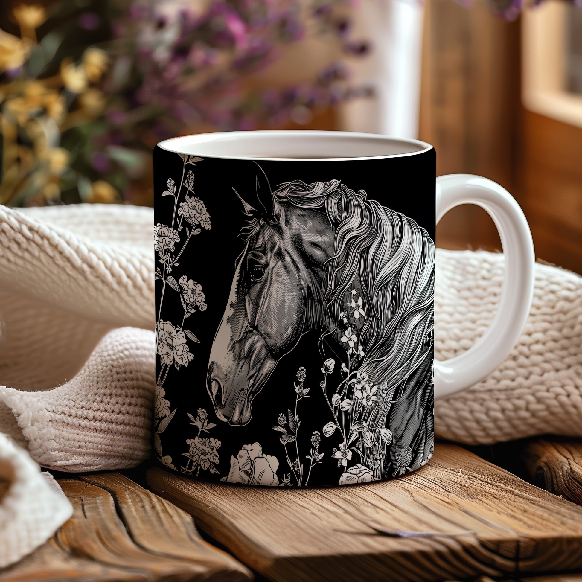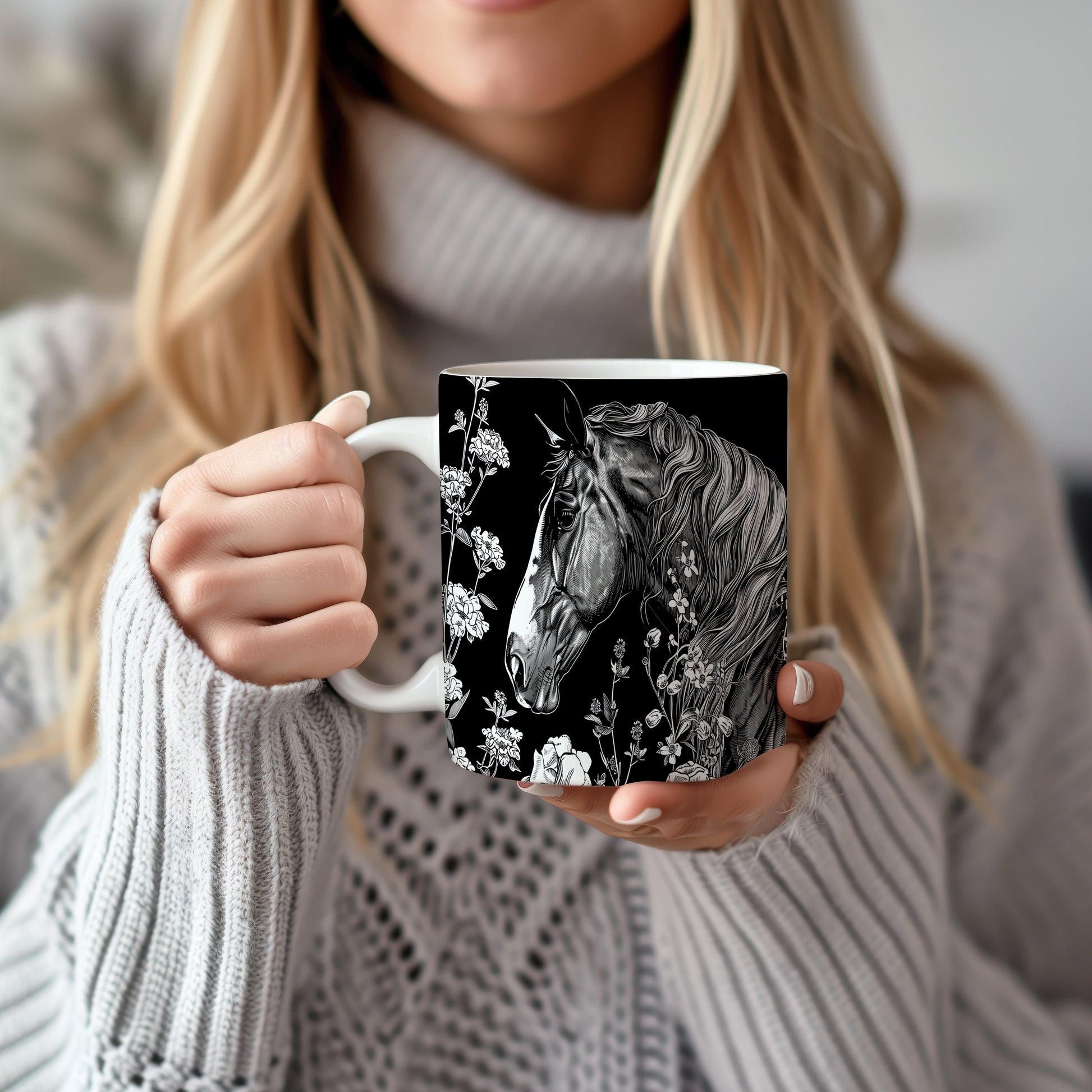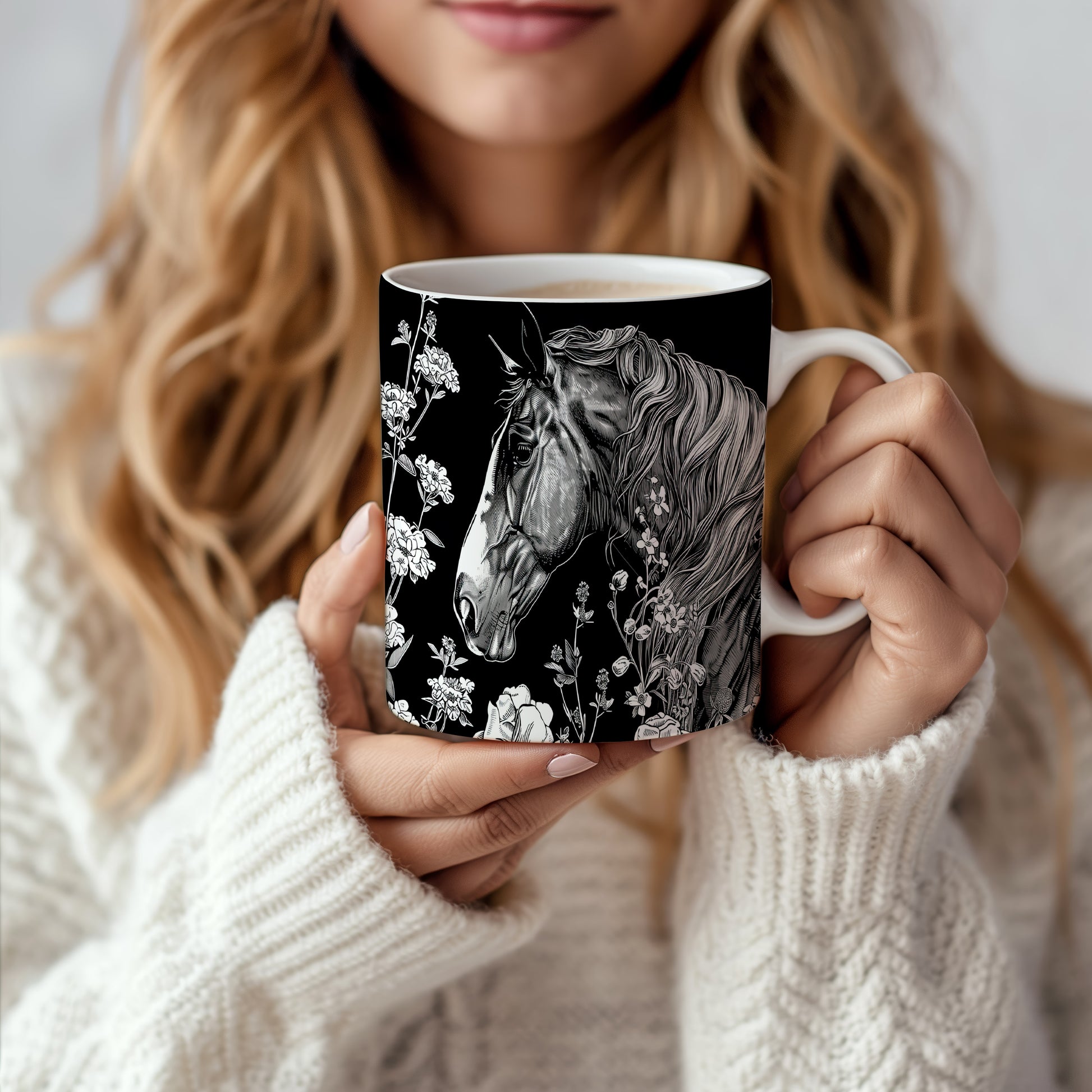 Elegantní hrnek s motivem hlavy koně obklopené květinami. Tento stylový kousek je ideální pro milovníky koní a přírody, skvěle se hodí jako dárek pro vaše blízké. Materiál: keramika. Objem: 330 ml. Vhodné do myčky i mikrovlnky. Užijte si každodenní kávu nebo čaj s tímto jedinečným hrnkem.