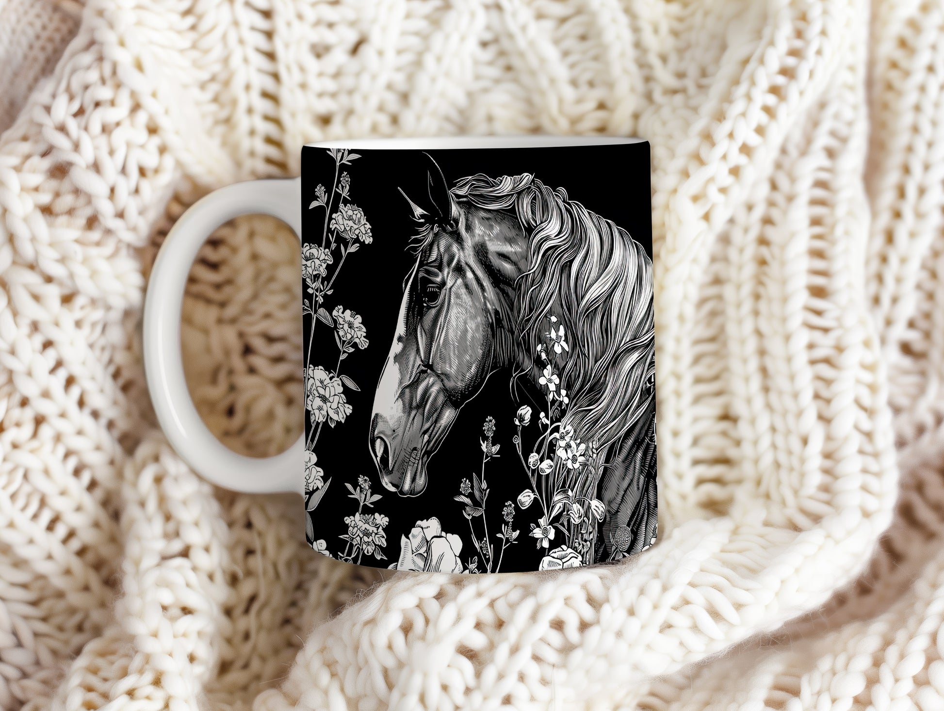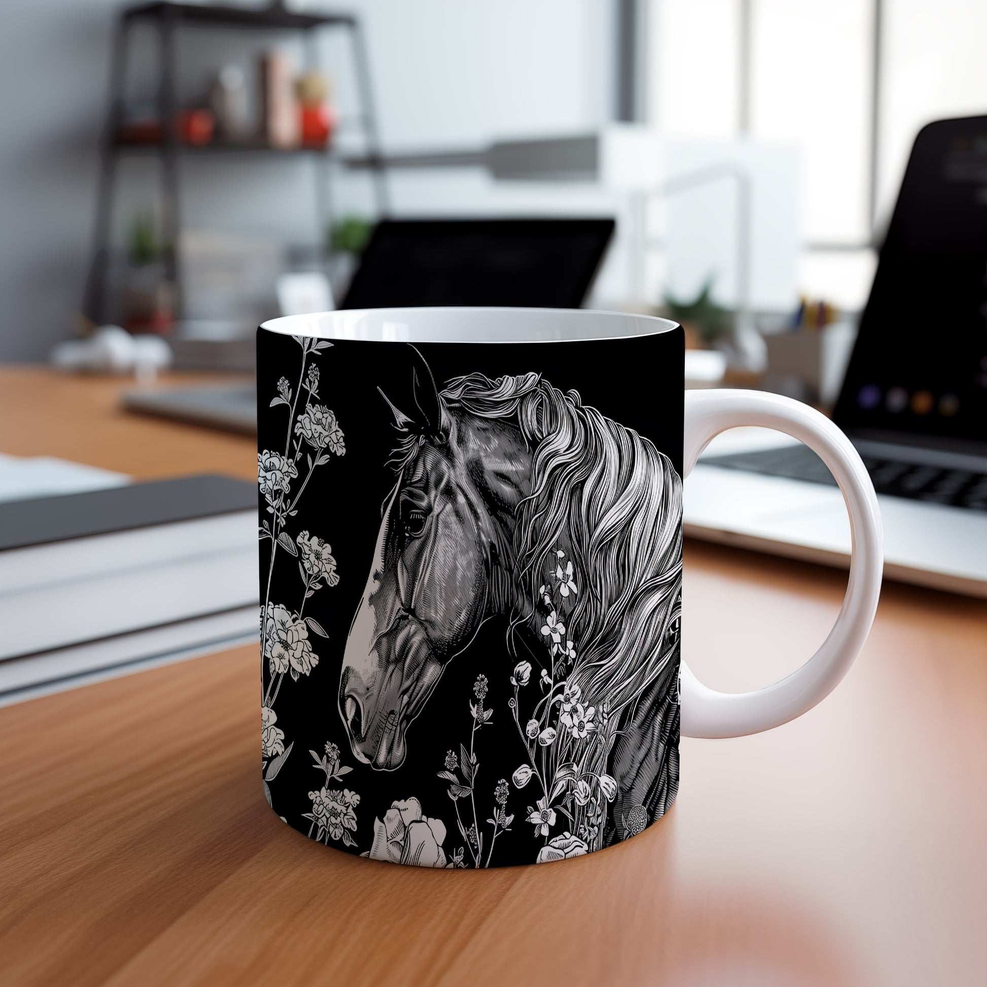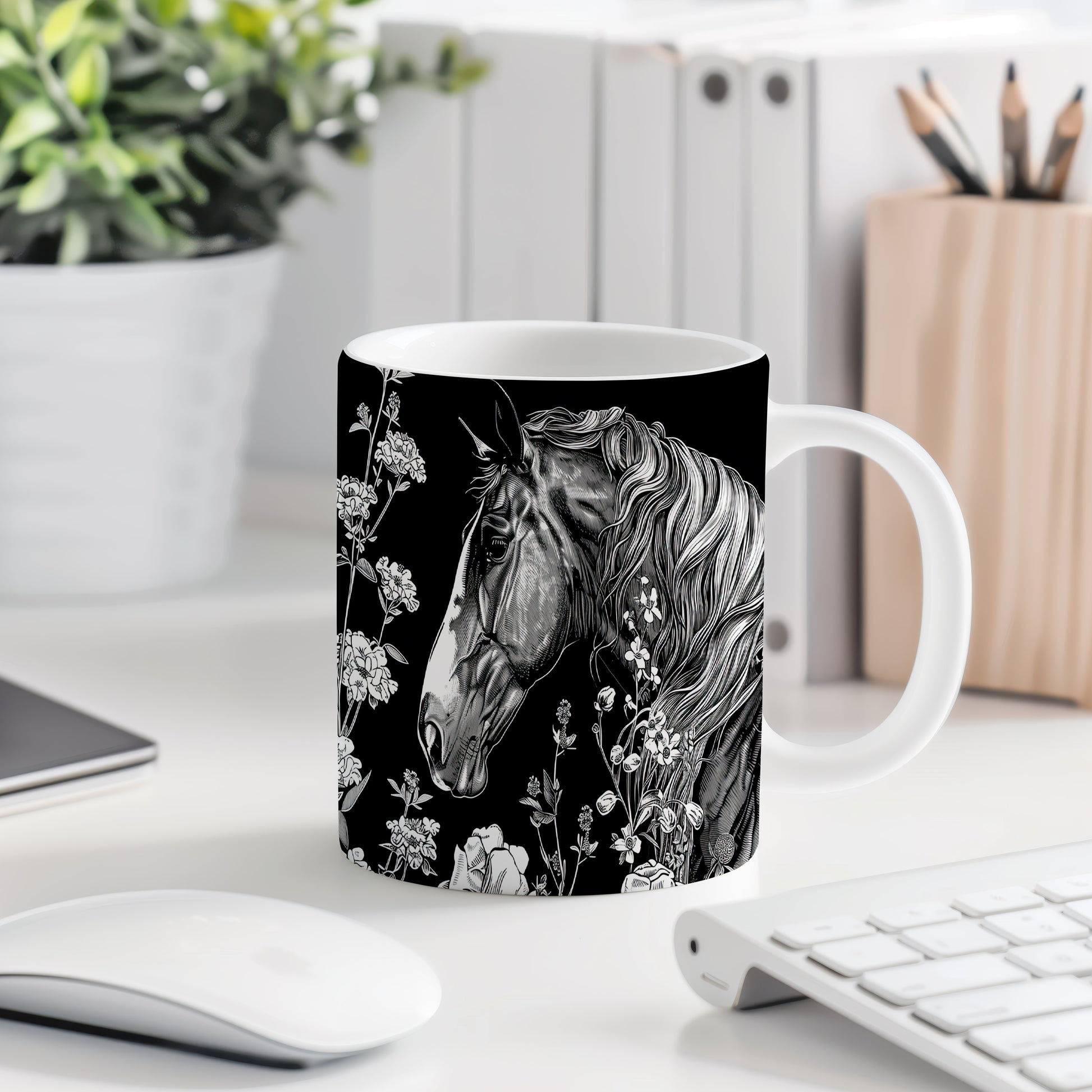 Elegantní hrnek s motivem hlavy koně obklopené květinami. Tento stylový kousek je ideální pro milovníky koní a přírody, skvěle se hodí jako dárek pro vaše blízké. Materiál: keramika. Objem: 330 ml. Vhodné do myčky i mikrovlnky. Užijte si každodenní kávu nebo čaj s tímto jedinečným hrnkem.