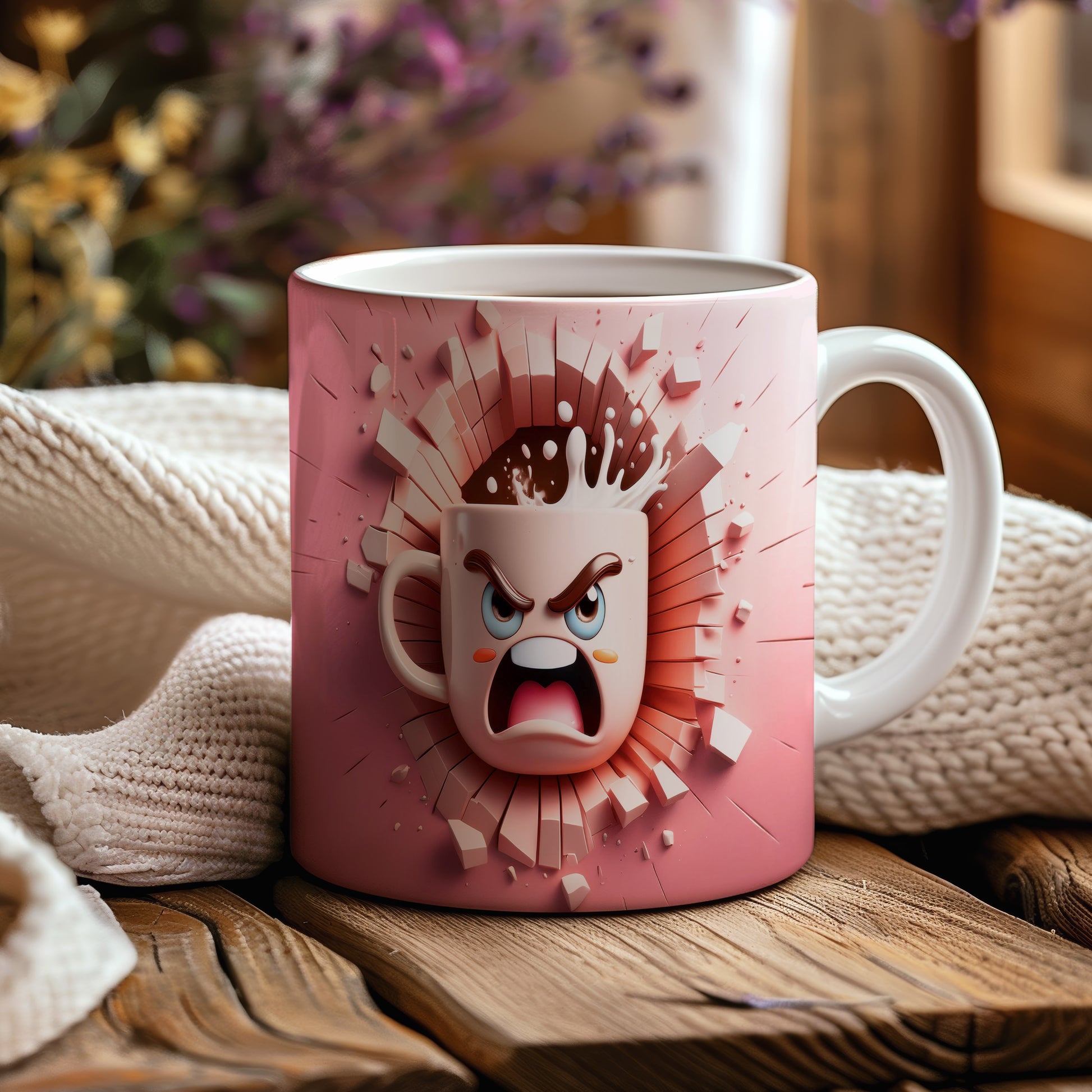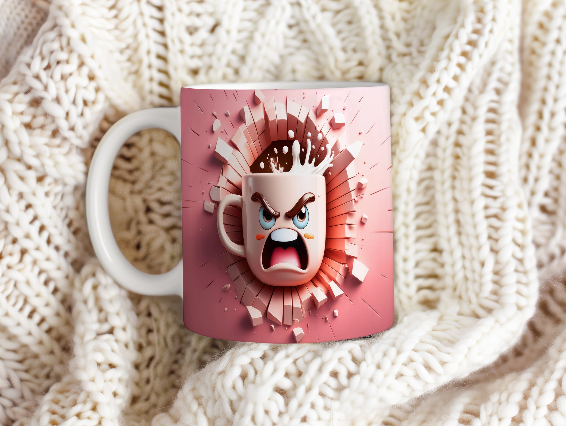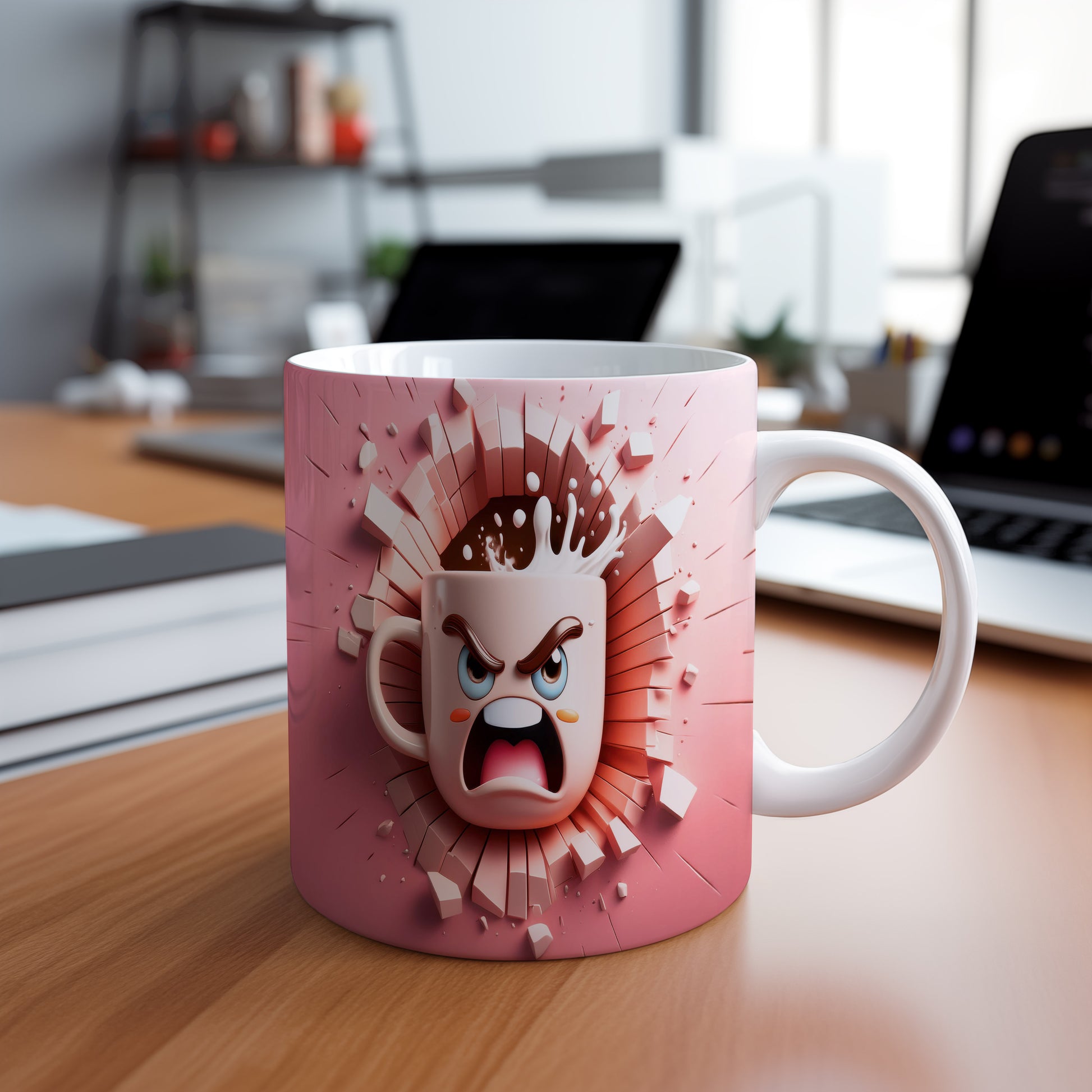 Hrnek s hněvivým obličejem a 3D efektem