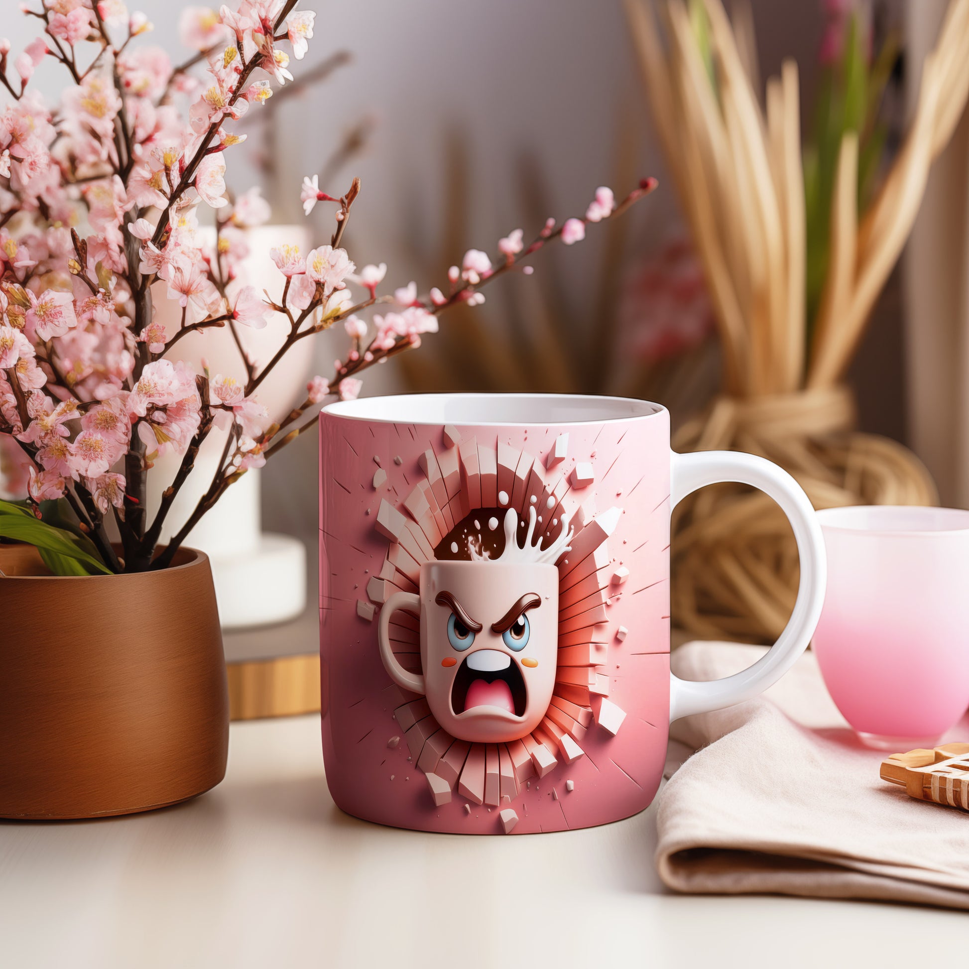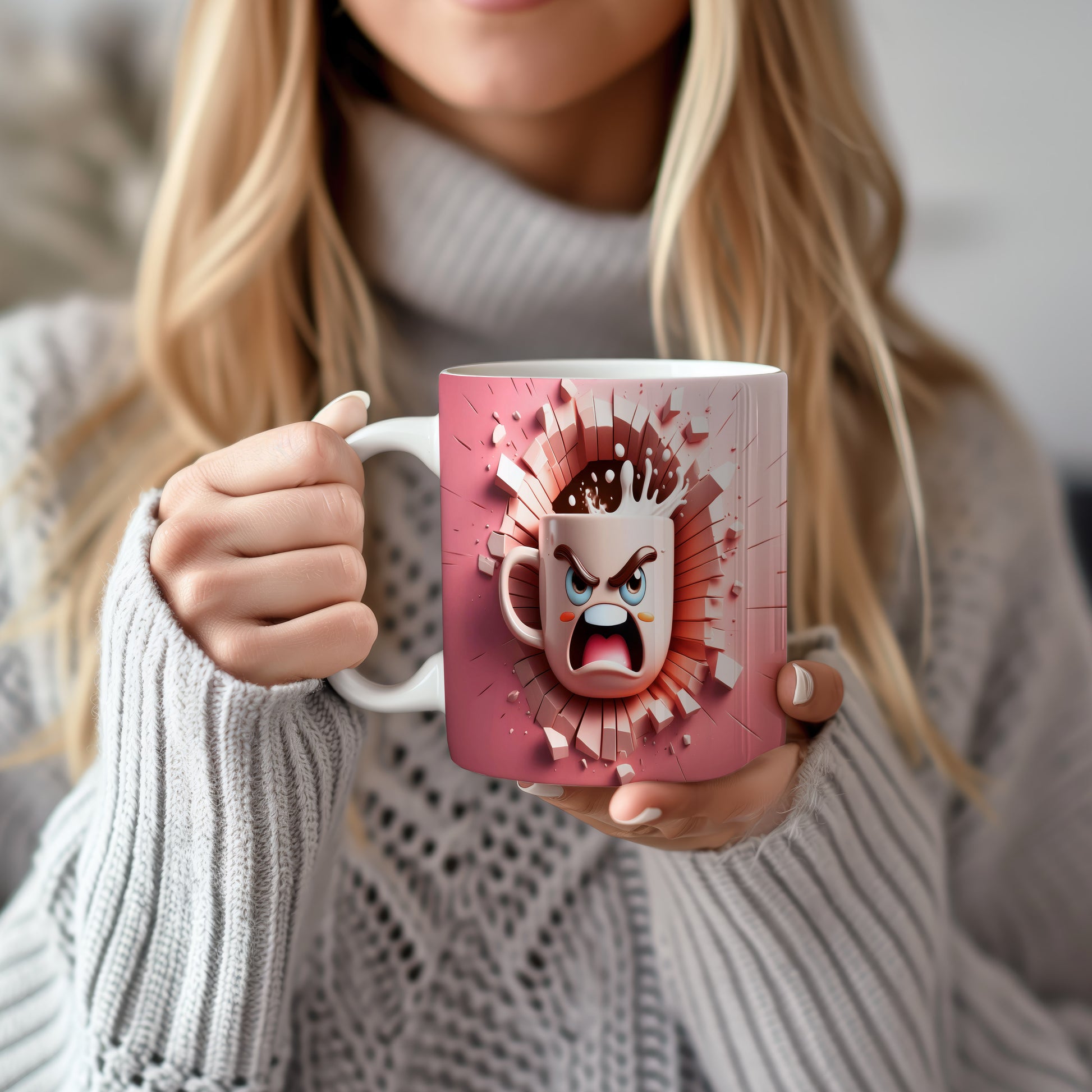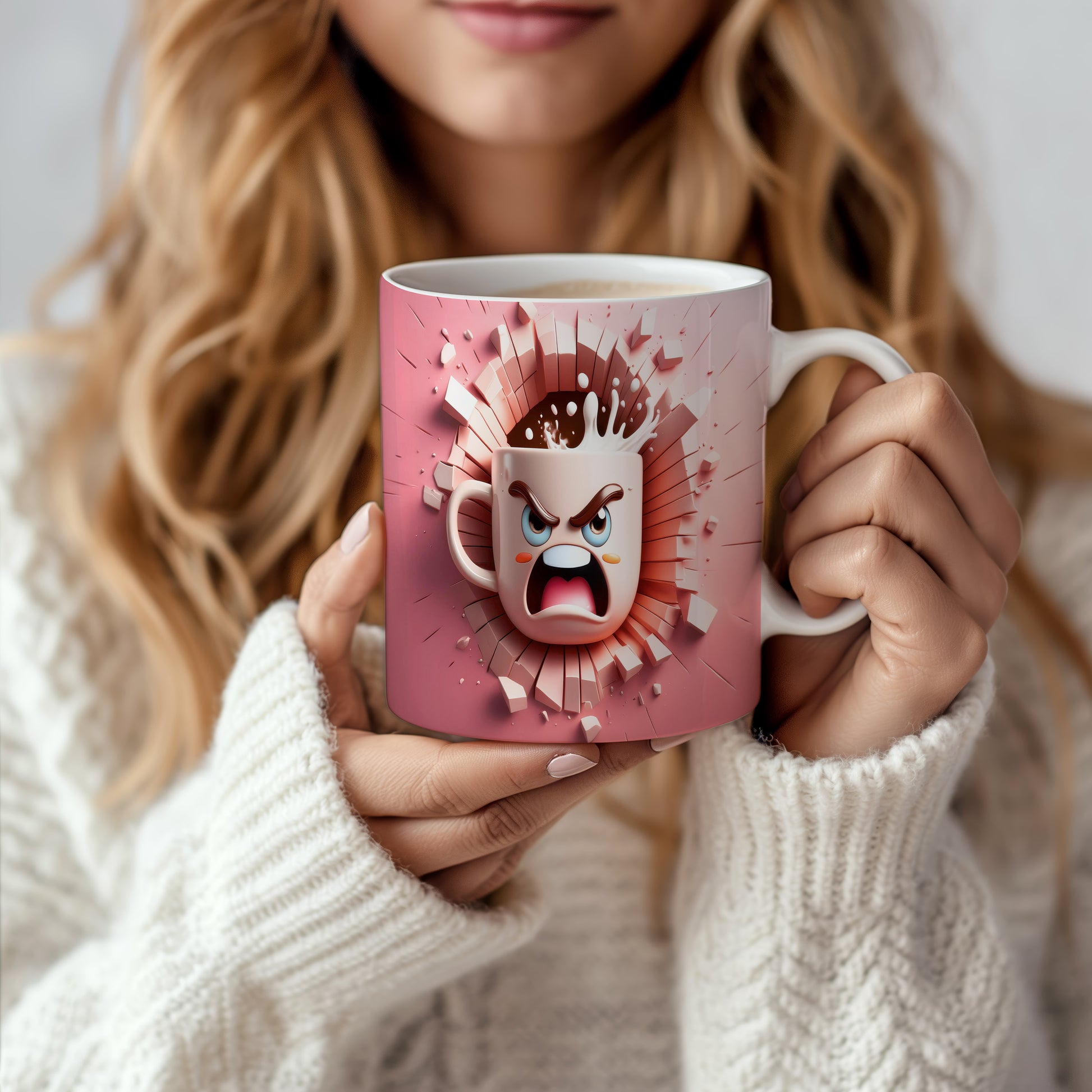 Hrnek s hněvivým obličejem a 3D efektem