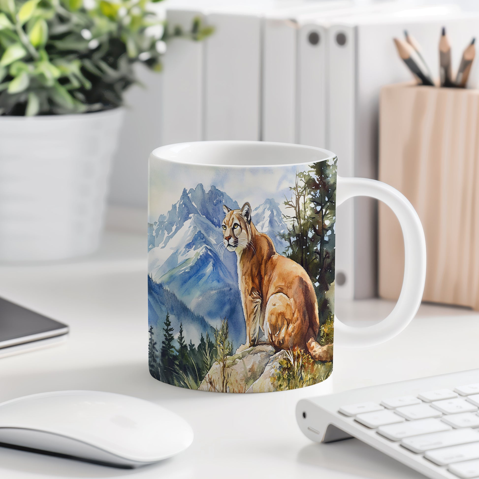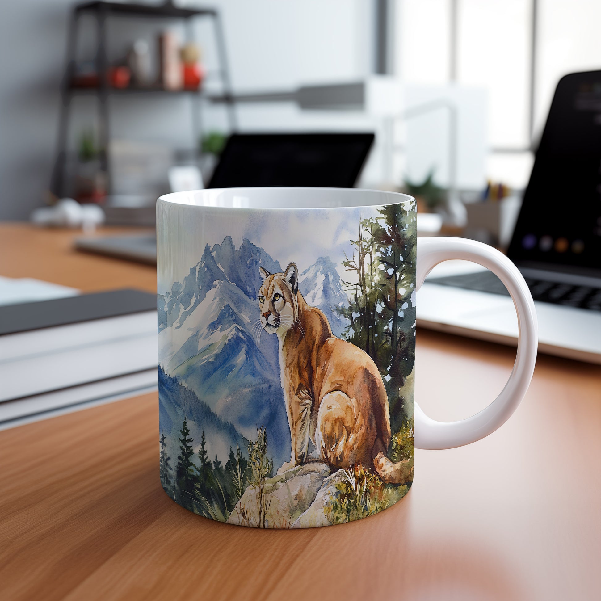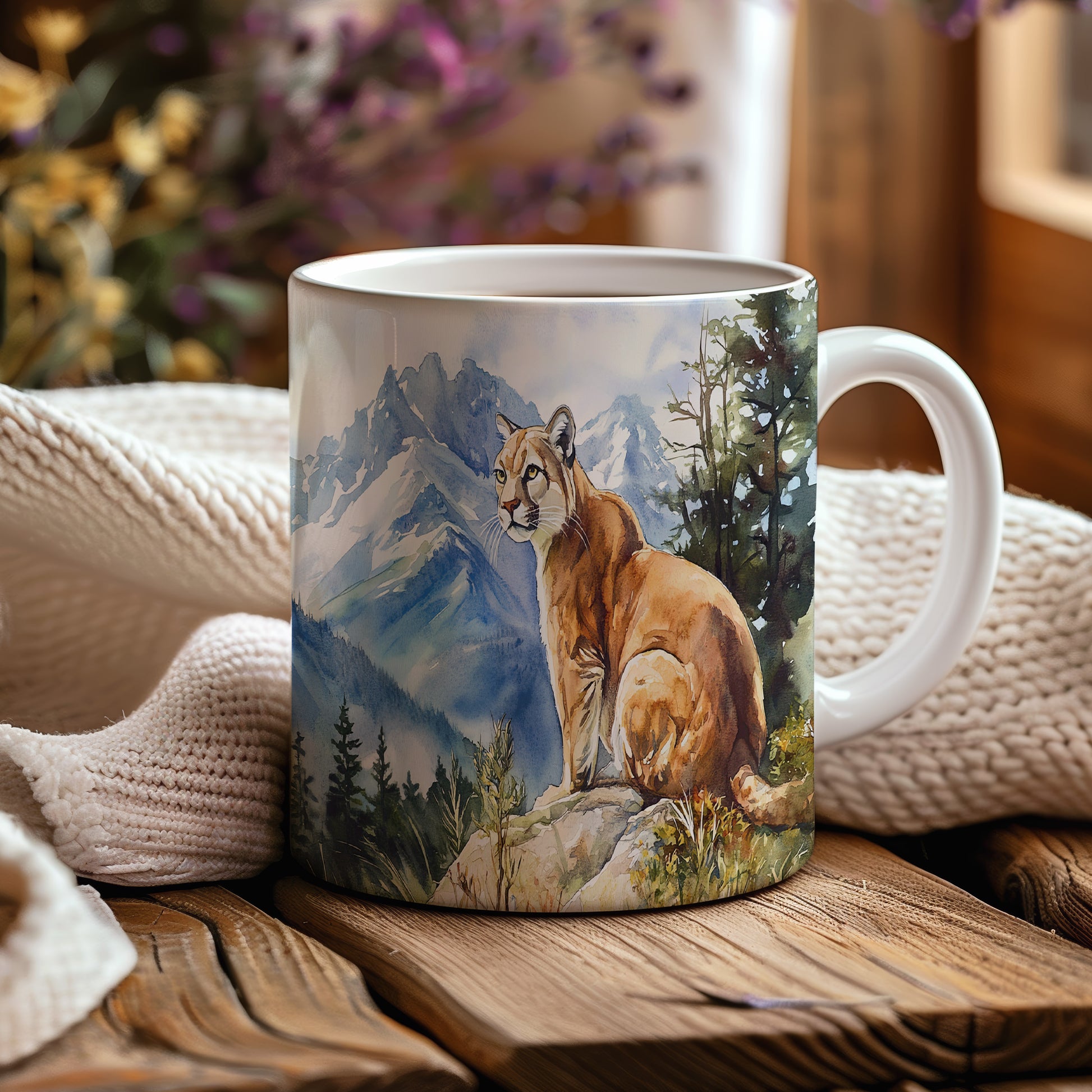 Na hrnku je zobrazená horská kočka v krásné přírodě s horami v pozadí. Tento hrnek je ideální pro milovníky přírody a zvířat, skvělý tip na dárek pro přátele nebo rodinu. Materiál: keramika. Objem: 330 ml. Vhodné do myčky i mikrovlnky. Používání tohoto hrnku přináší radost z každého doušku.