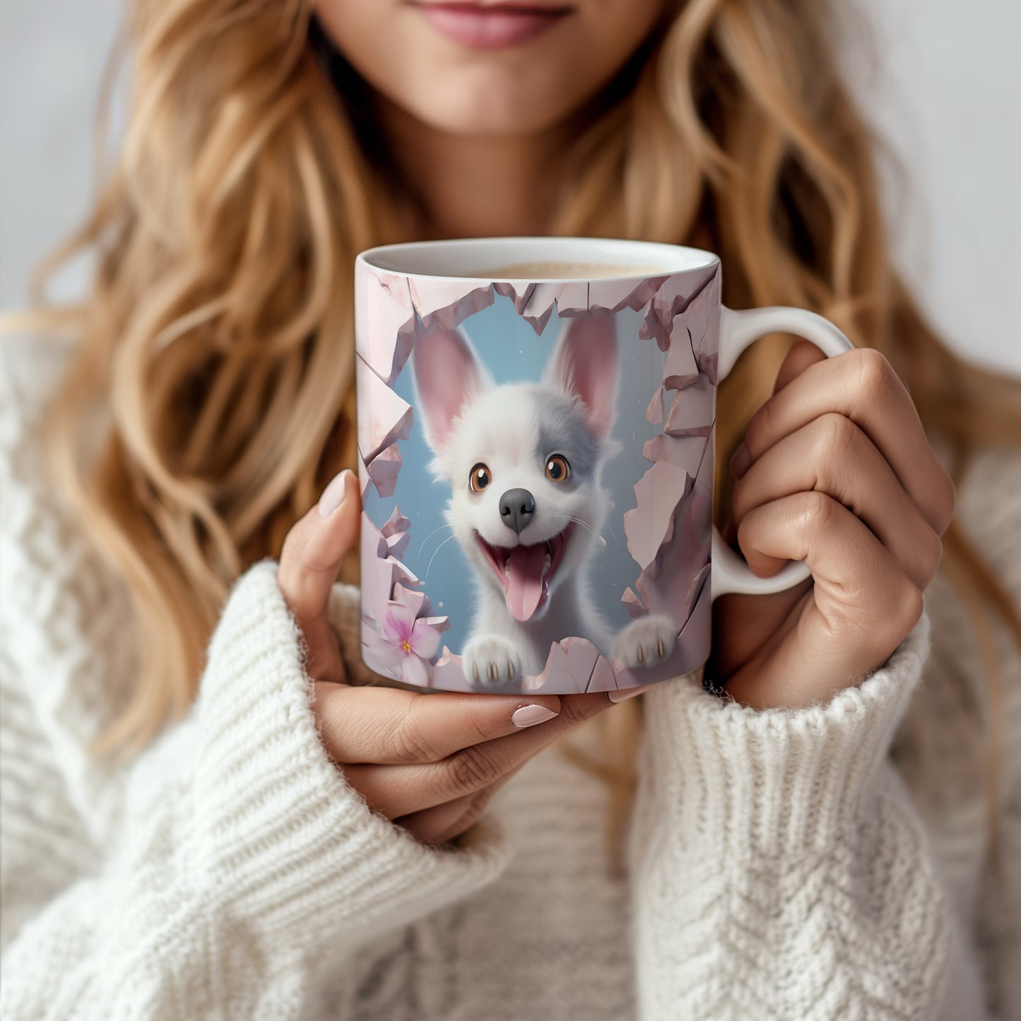 Tento hrnek zobrazuje roztomilého psa s úsměvem, který vykukuje z pozadí. Je ideální pro milovníky zvířat a skvěle se hodí jako dárek pro přátele či rodinu. Materiál: keramika. Objem: 330 ml. Vhodné do myčky i mikrovlnky. Používání tohoto hrnku vám přinese radost a útulnou atmosféru při každém doušku.