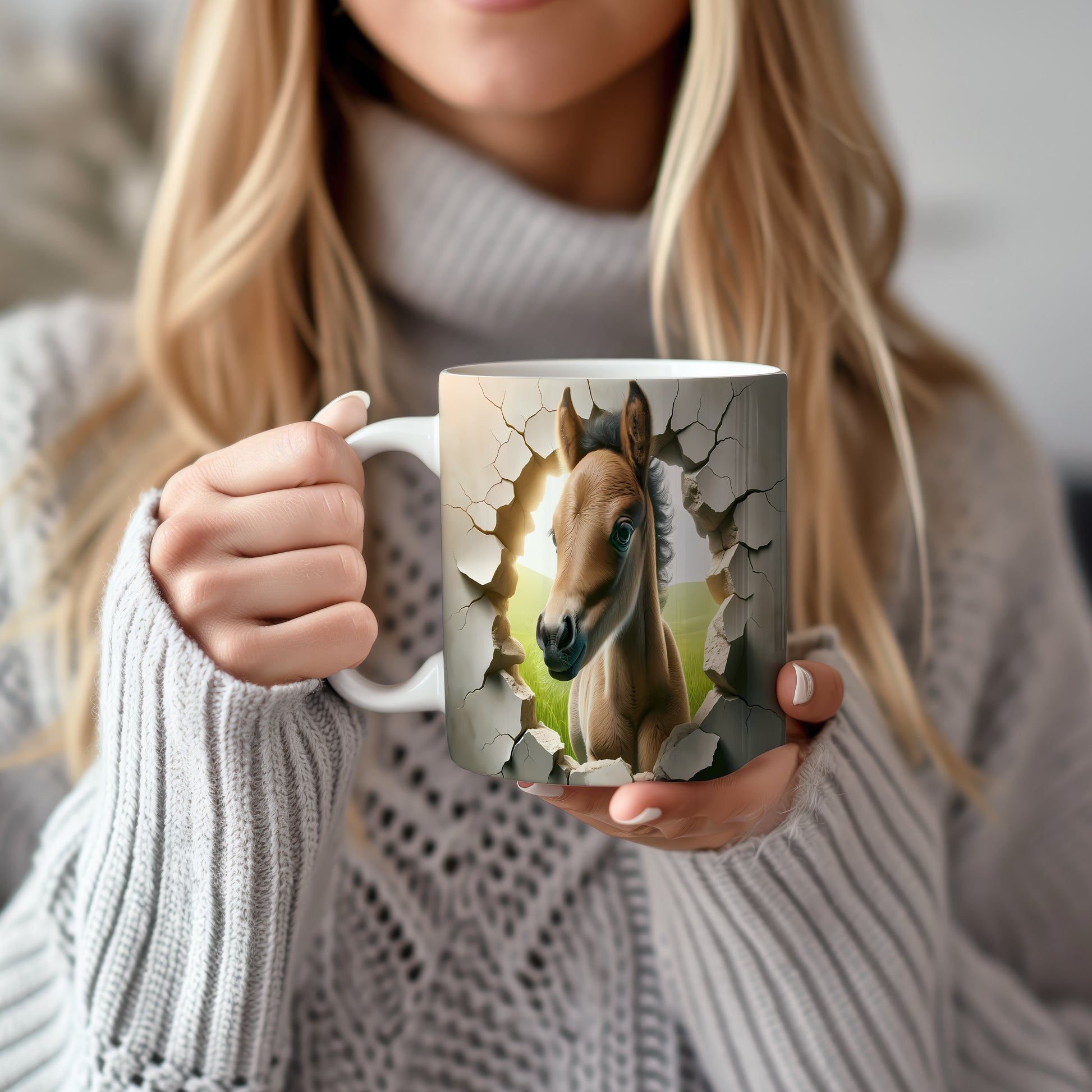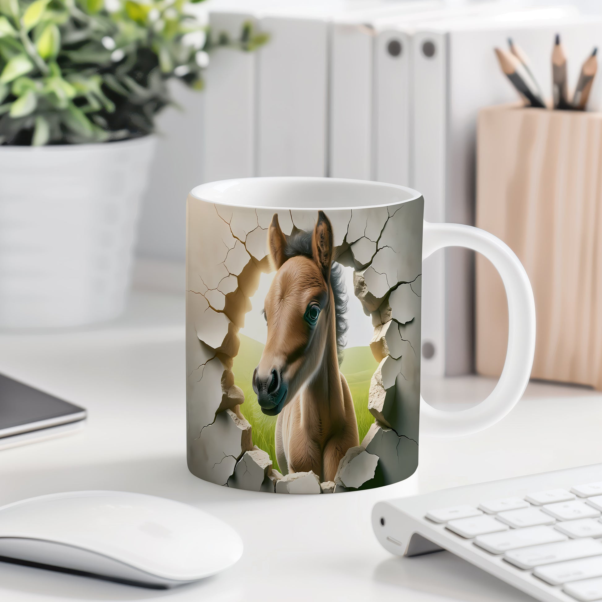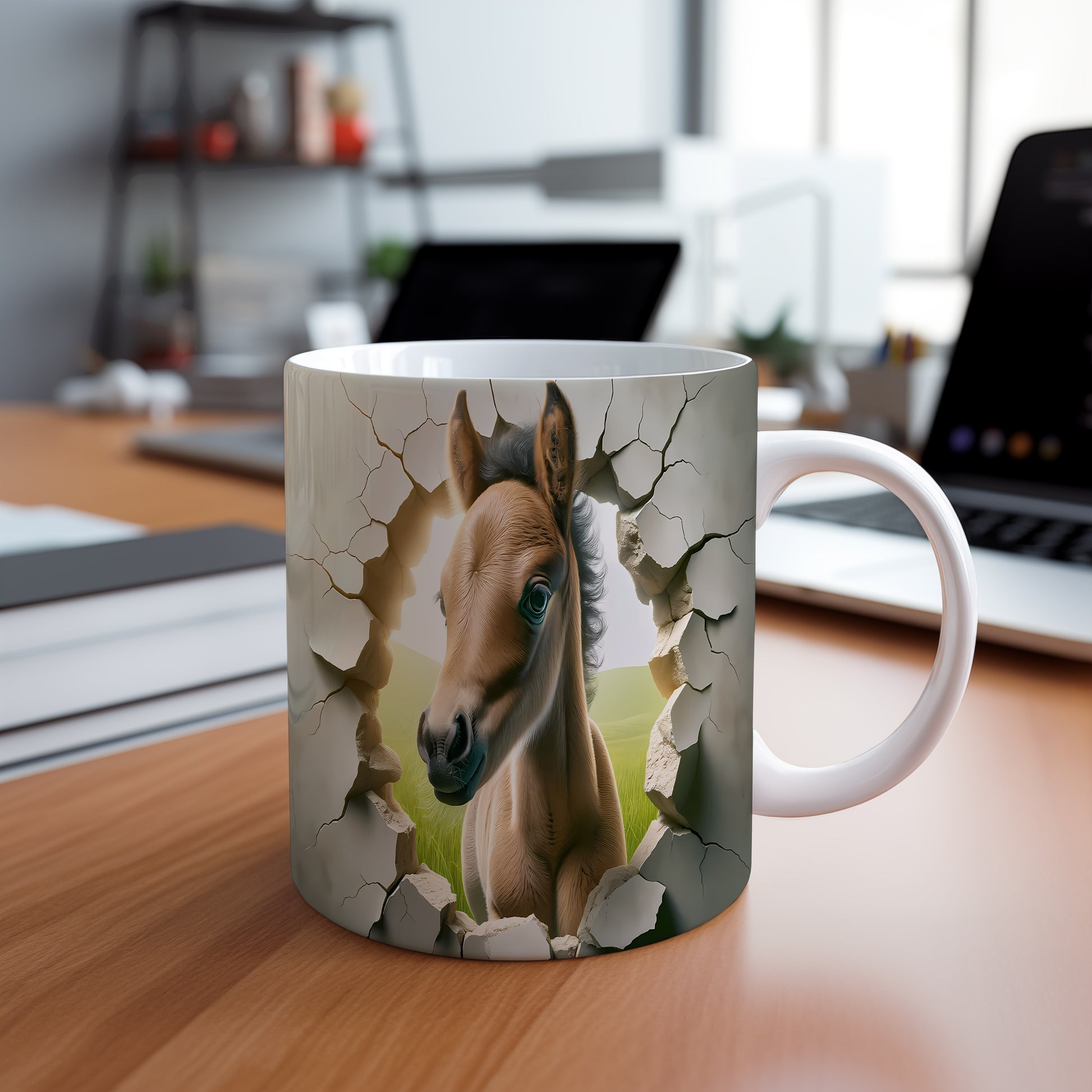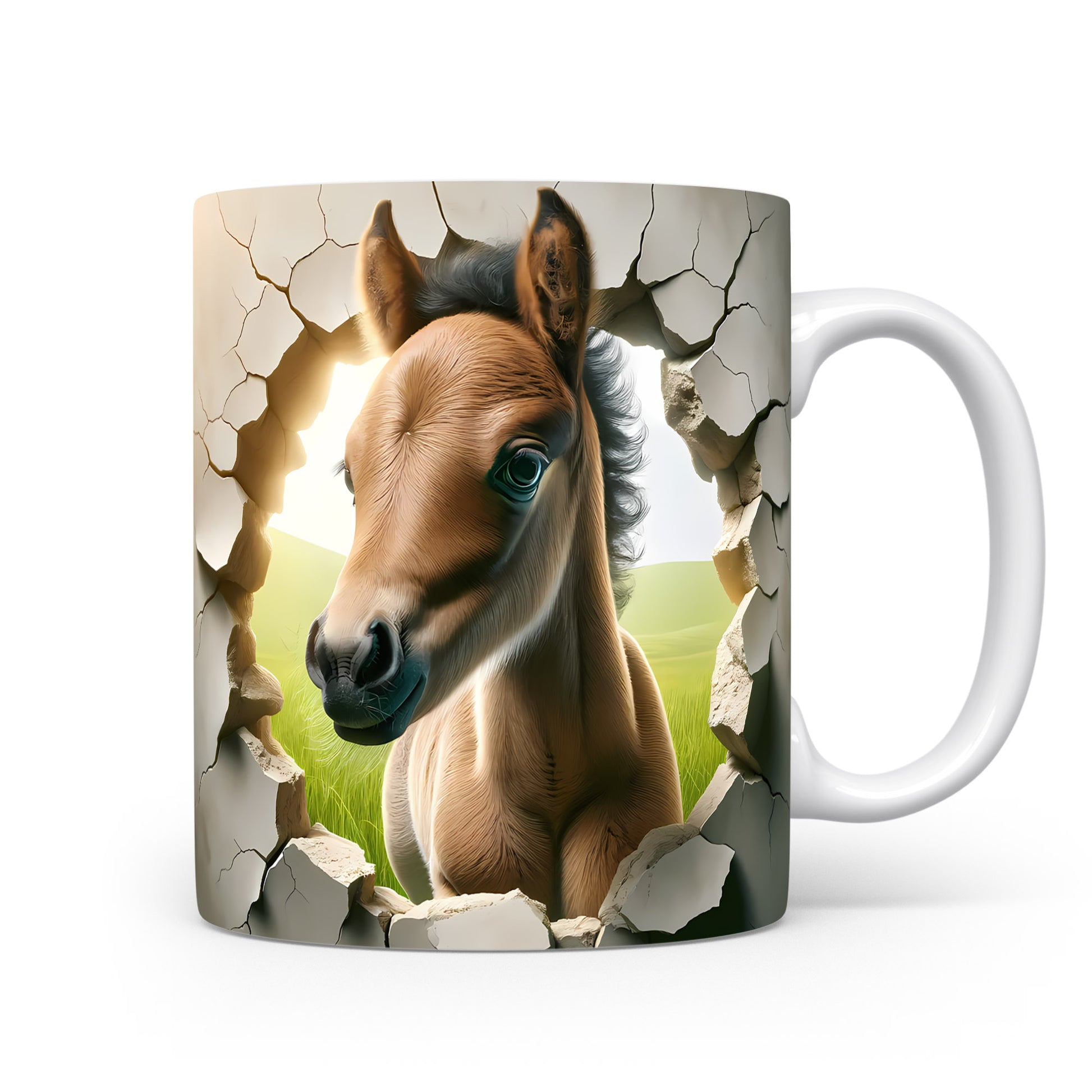 Tento hrnek zobrazuje nádherné hříbě s 3D efektem, které přitahuje pozornost. Je ideální pro milovníky koní a skvělým dárkem pro každého, kdo má rád zvířata. Materiál: keramika. Objem: 330 ml. Vhodné do myčky i mikrovlnky. Používáním tohoto hrnku si užijete nejen kávu nebo čaj, ale i jedinečný design, který oživí váš den.