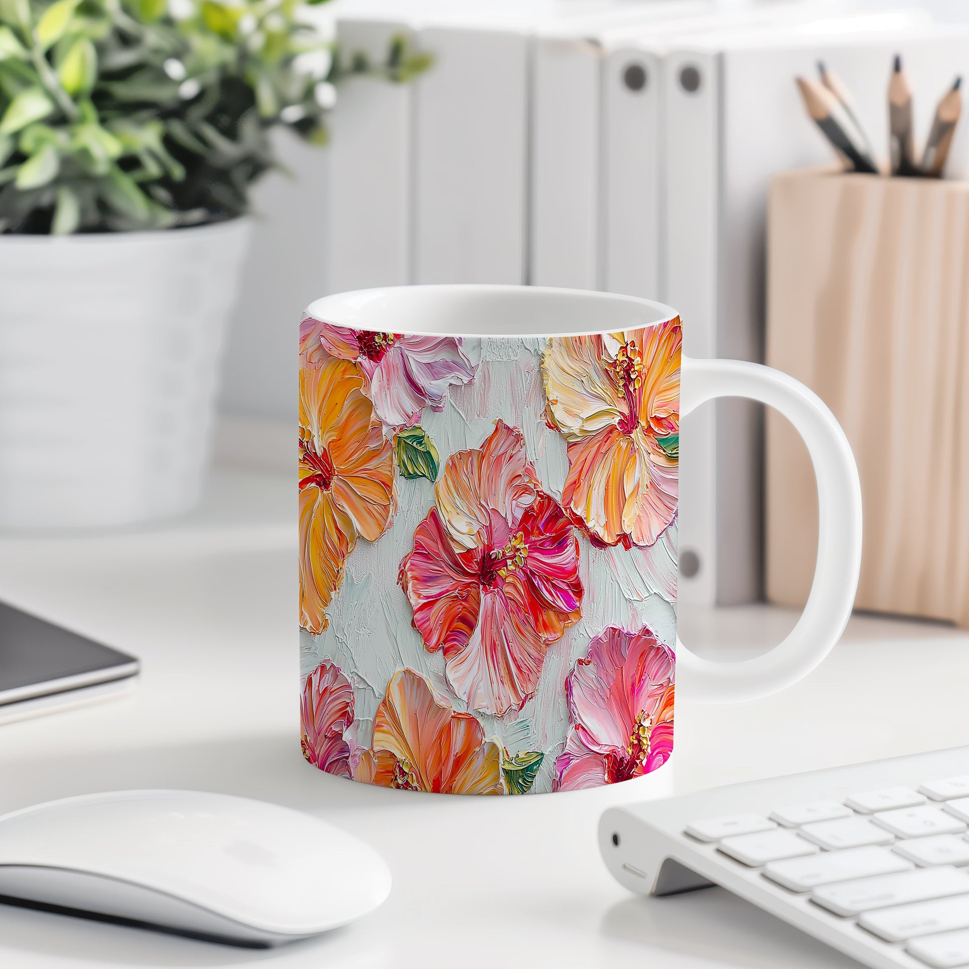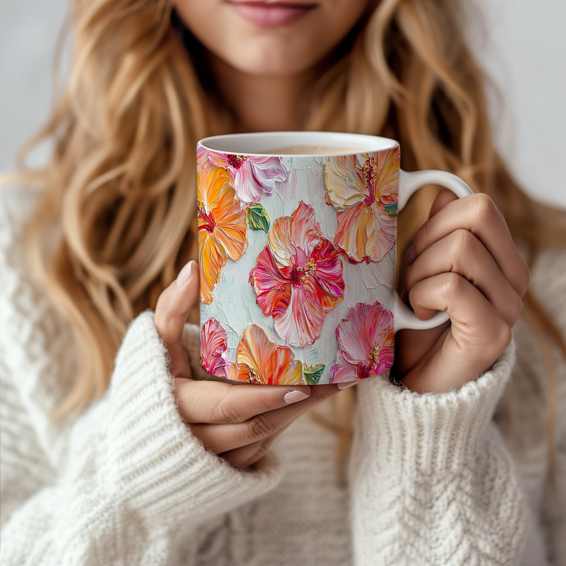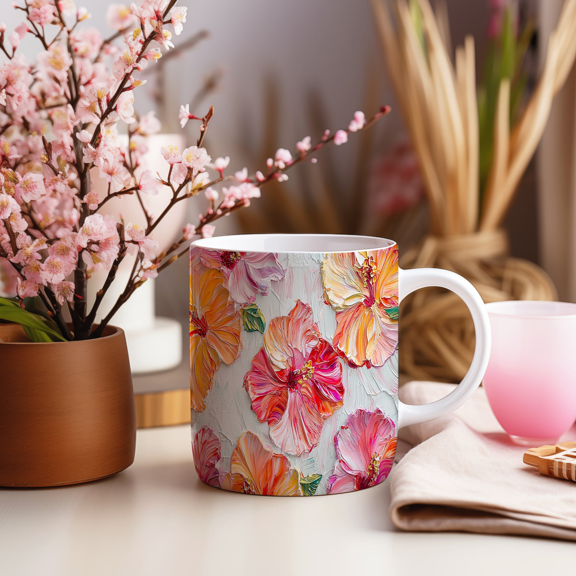 Tento hrnek s živými květinami, zejména ibišky v růžových, oranžových a bílých odstínech, přináší do vašeho dne svěží atmosféru. Je ideální pro milovníky přírody a květin, skvělý tip na dárek pro blízké. Materiál: keramika. Objem: 330 ml. Vhodné do myčky i mikrovlnky. Používání tohoto hrnku vám zpříjemní každé ráno s šálkem oblíbeného nápoje.