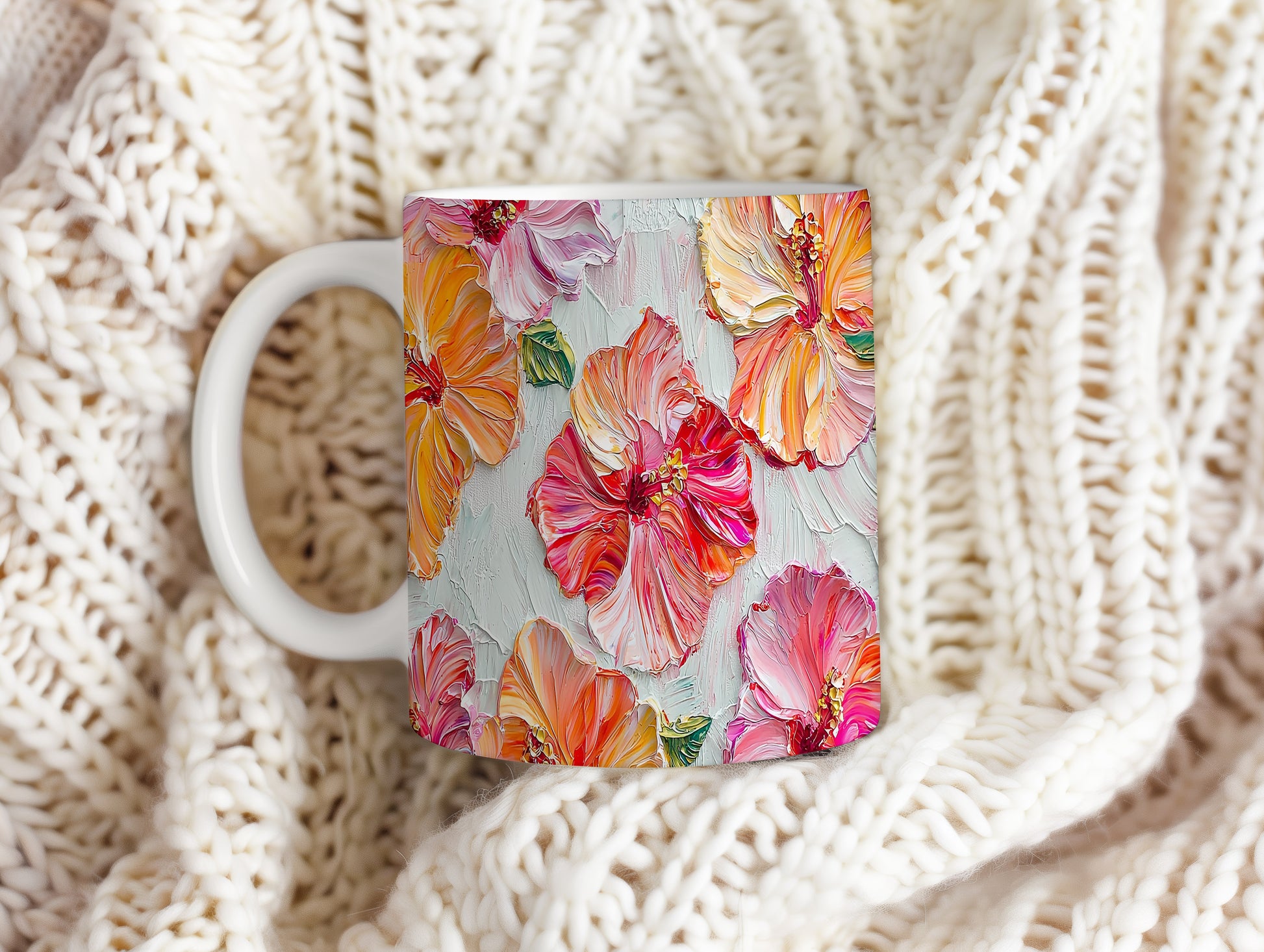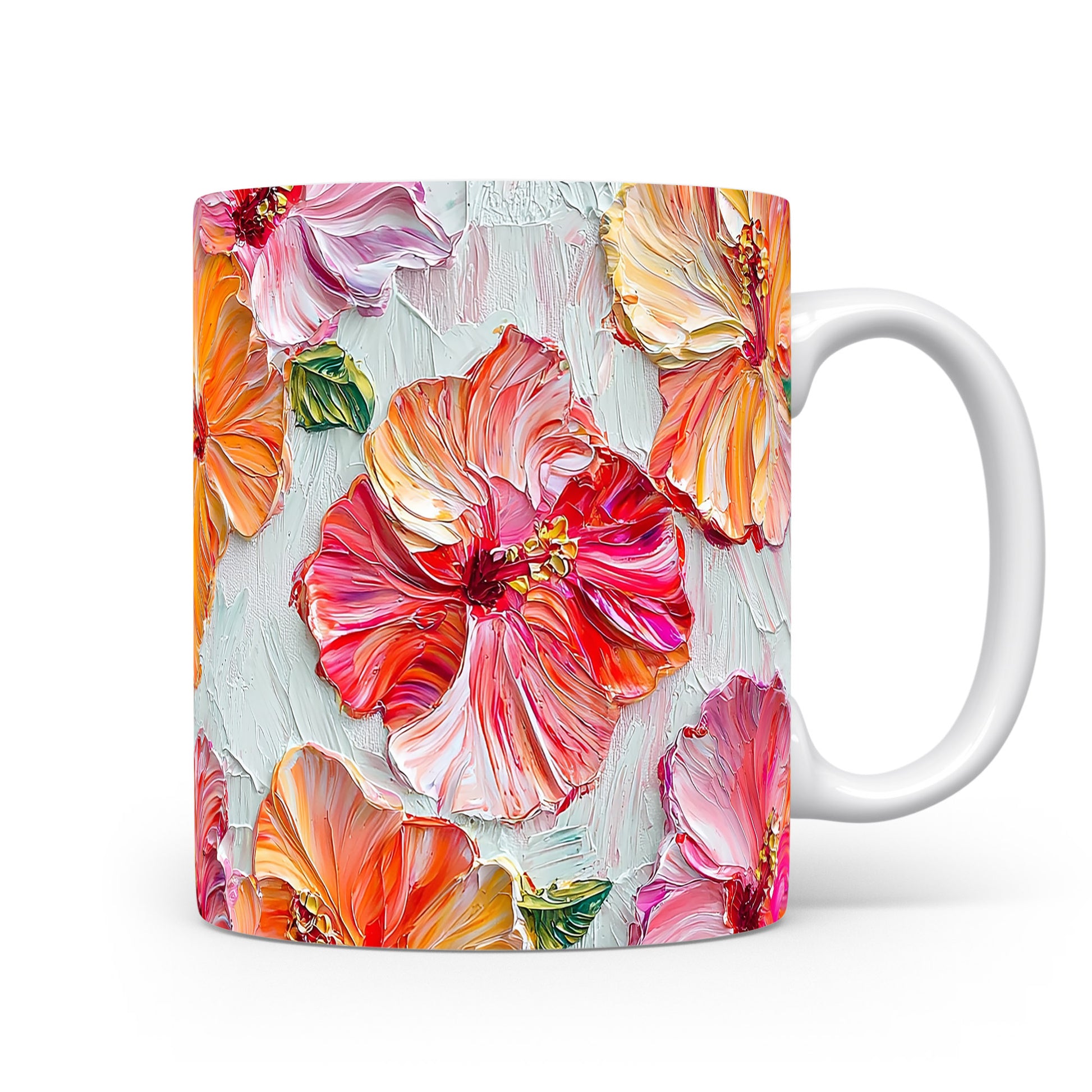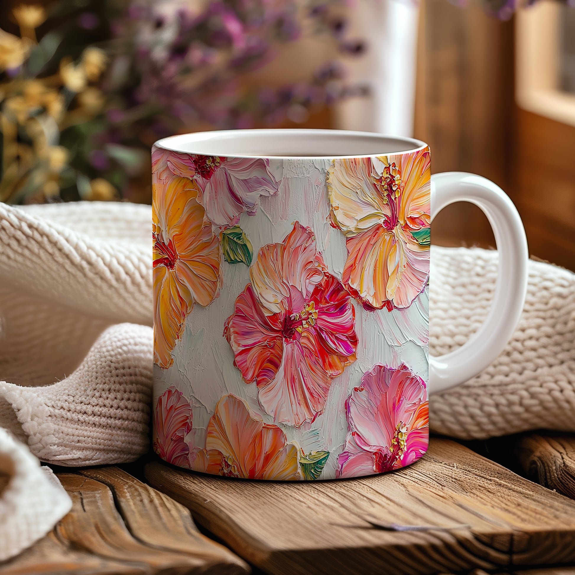 Tento hrnek s živými květinami, zejména ibišky v růžových, oranžových a bílých odstínech, přináší do vašeho dne svěží atmosféru. Je ideální pro milovníky přírody a květin, skvělý tip na dárek pro blízké. Materiál: keramika. Objem: 330 ml. Vhodné do myčky i mikrovlnky. Používání tohoto hrnku vám zpříjemní každé ráno s šálkem oblíbeného nápoje.
