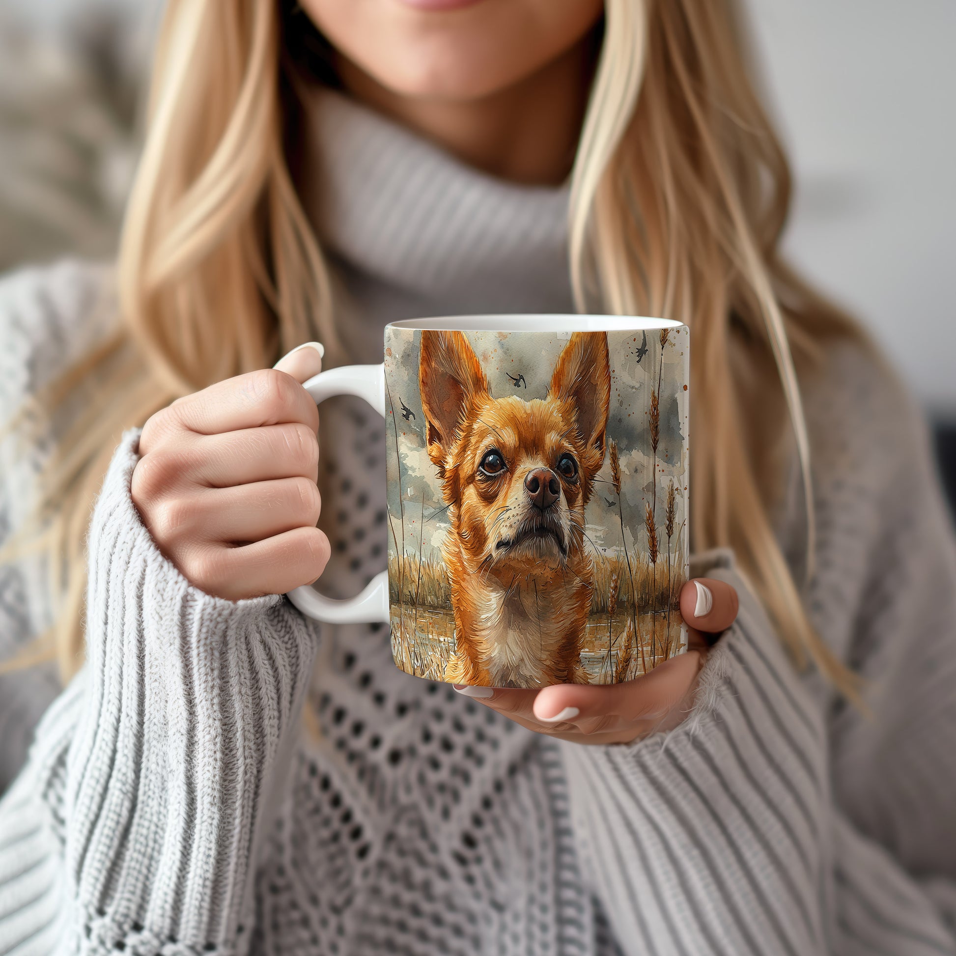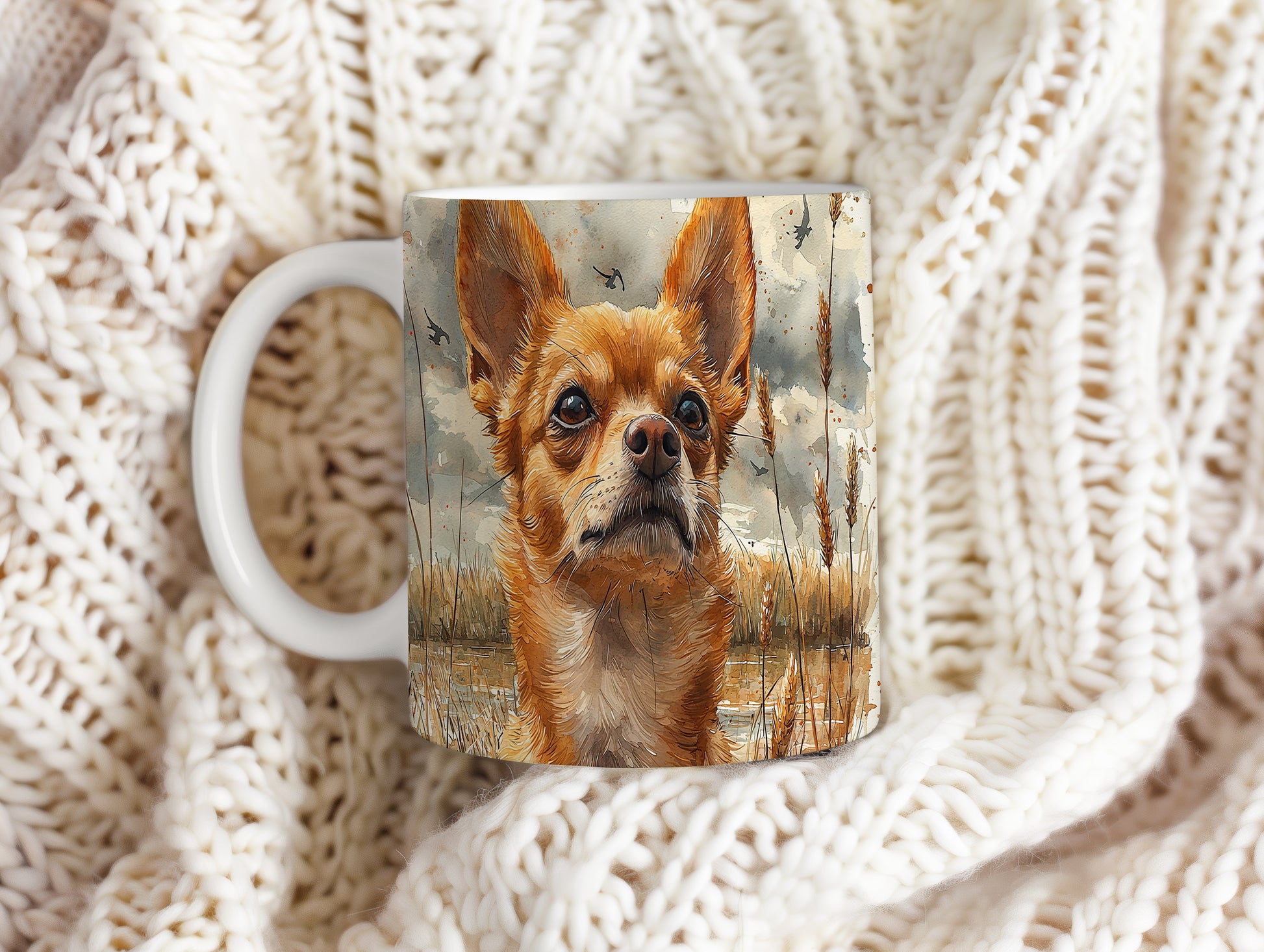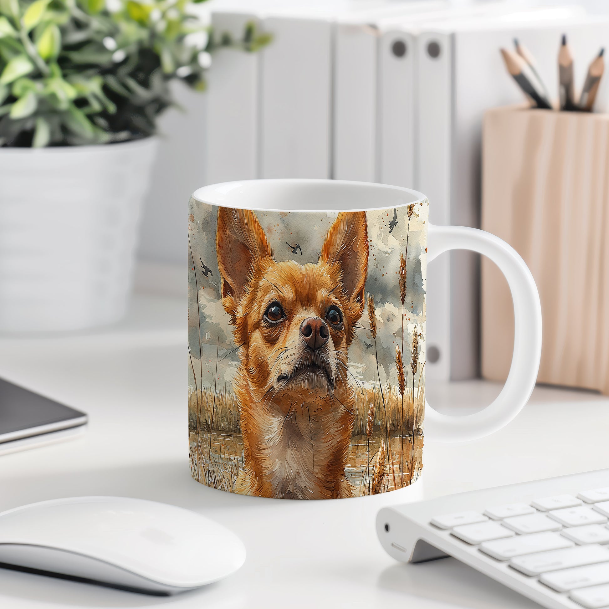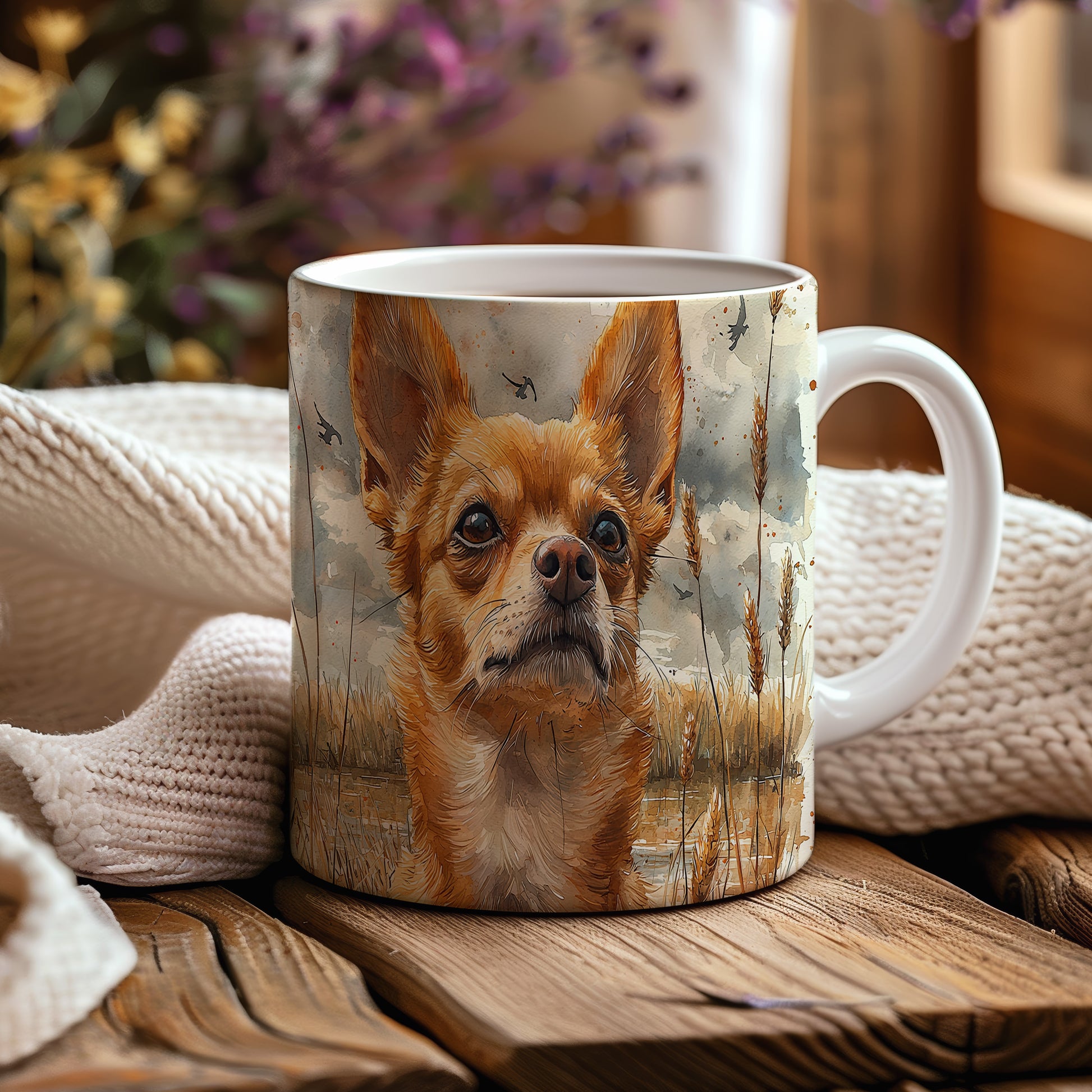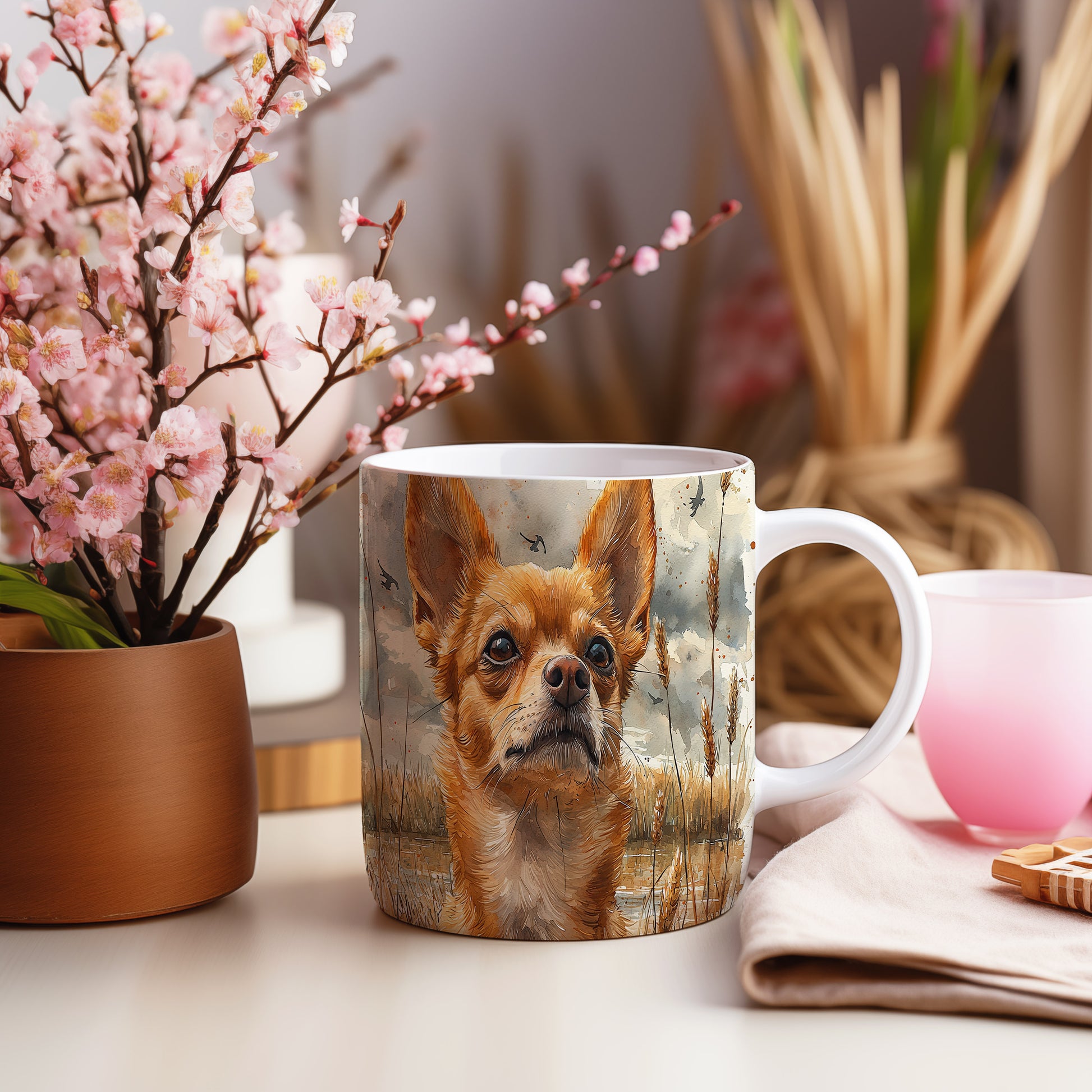 Tento keramický hrnek s motivem čivavy v přírodě potěší všechny milovníky psů a domácích mazlíčků. Skvělý tip na dárek pro přátele nebo rodinu, kteří mají rádi zvířata. Materiál: keramika. Objem: 330 ml. Vhodné do myčky i mikrovlnky. Užívejte si kávu nebo čaj s tímto originálním hrnkem, který dodá každému okamžiku osobitý šarm.
