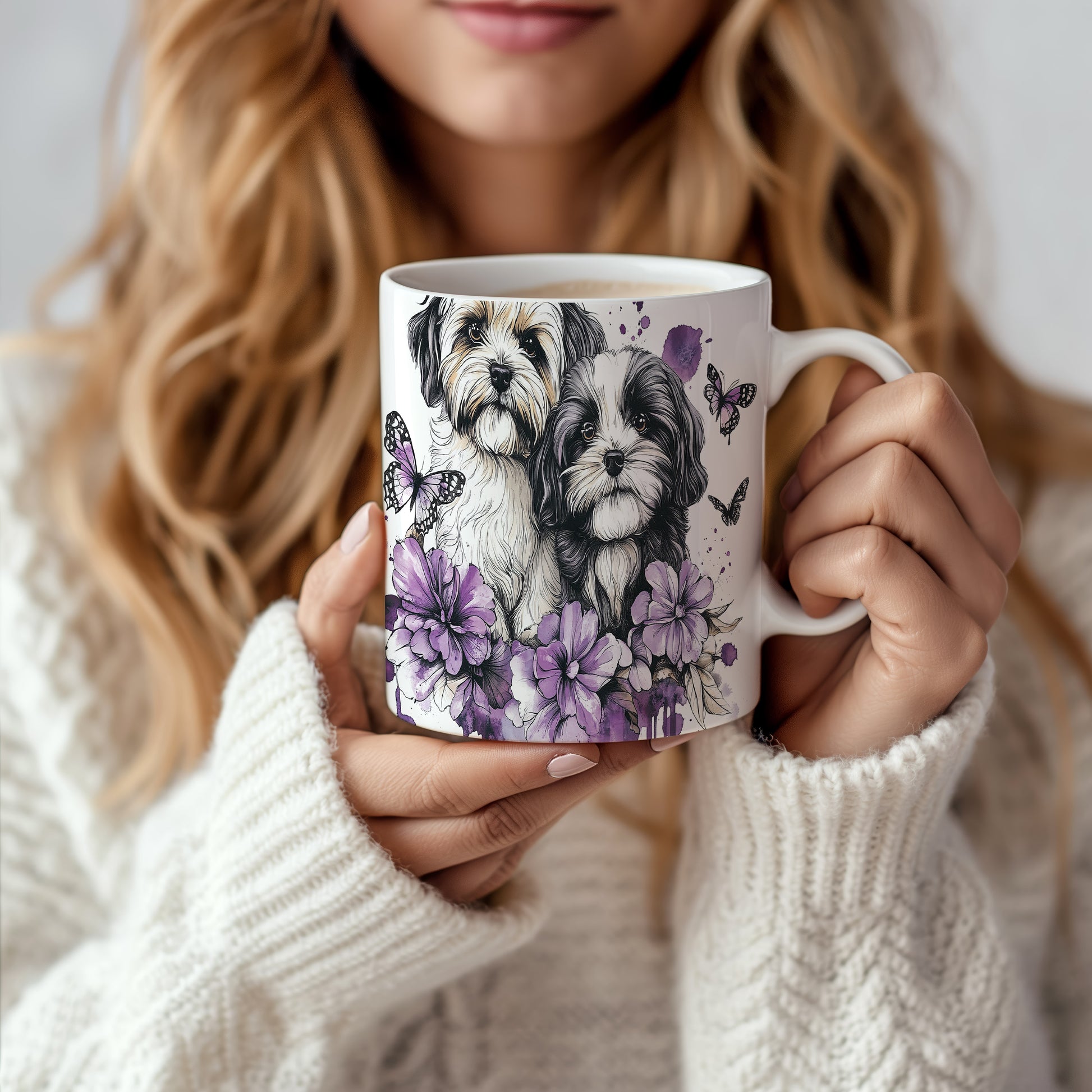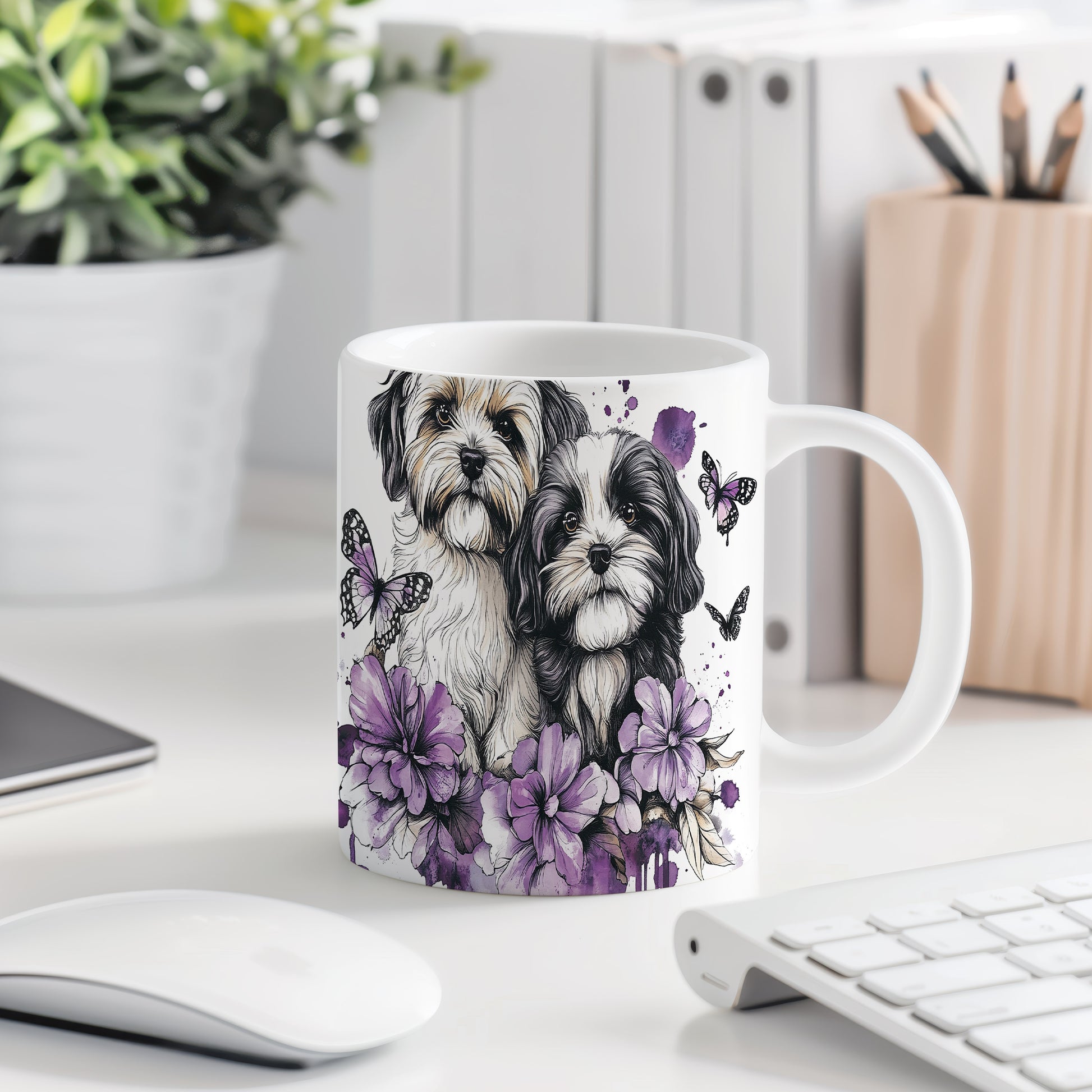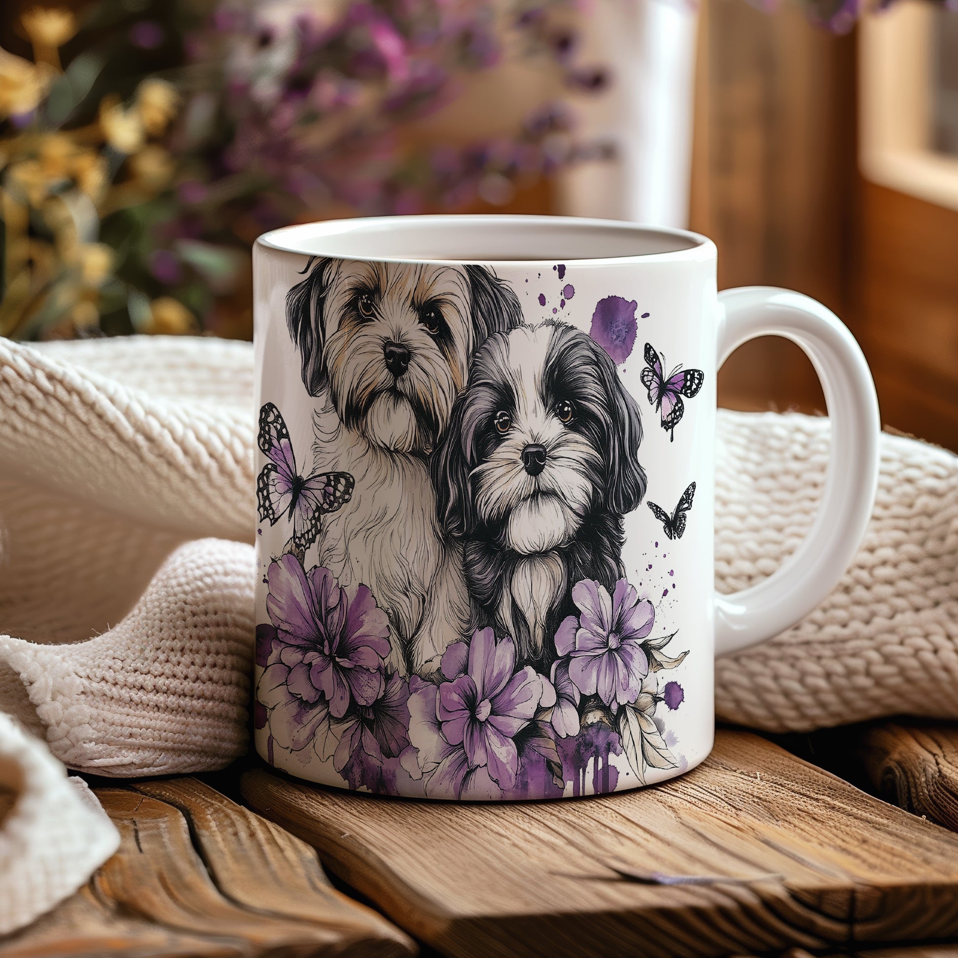 Hrnek s motivem dvou roztomilých psů a barevnými květinami je skvělou volbou pro milovníky zvířat. Tento hrnek potěší každého, kdo hledá originální dárek pro přátele nebo rodinu. Materiál: keramika. Objem: 330 ml. Vhodné do myčky i mikrovlnky. Díky svému designu a kvalitnímu zpracování si užijete každý doušek vašeho oblíbeného nápoje.