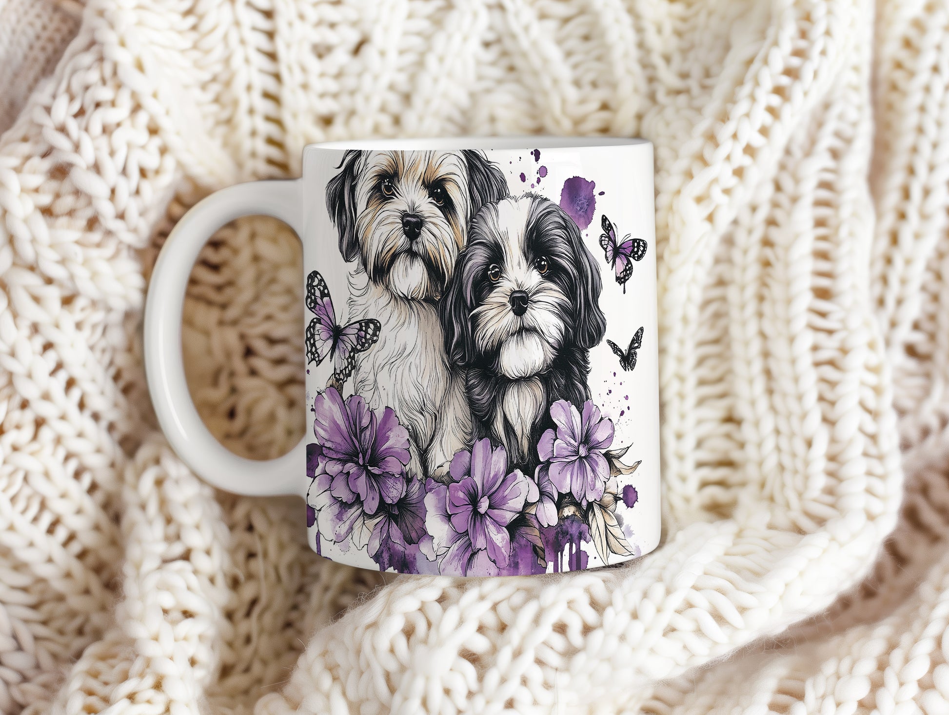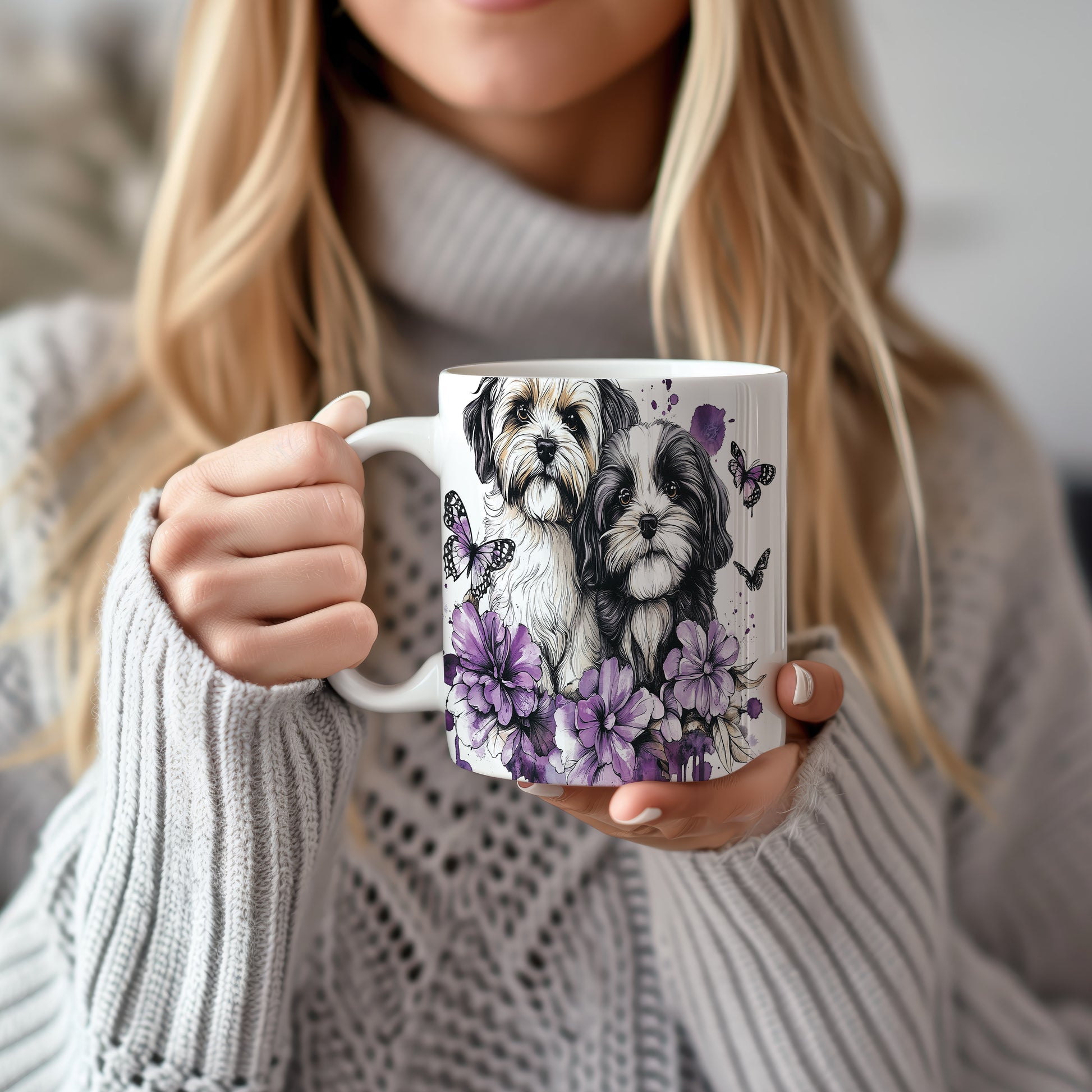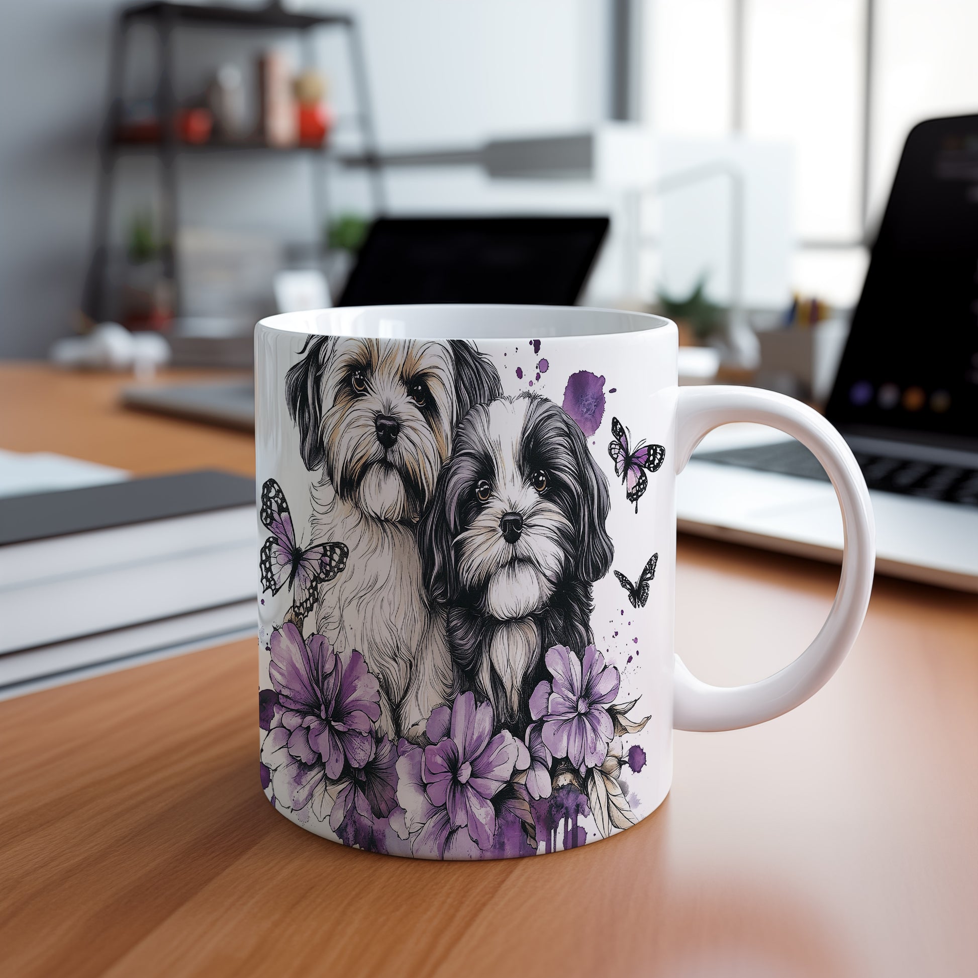 Hrnek s motivem dvou roztomilých psů a barevnými květinami je skvělou volbou pro milovníky zvířat. Tento hrnek potěší každého, kdo hledá originální dárek pro přátele nebo rodinu. Materiál: keramika. Objem: 330 ml. Vhodné do myčky i mikrovlnky. Díky svému designu a kvalitnímu zpracování si užijete každý doušek vašeho oblíbeného nápoje.