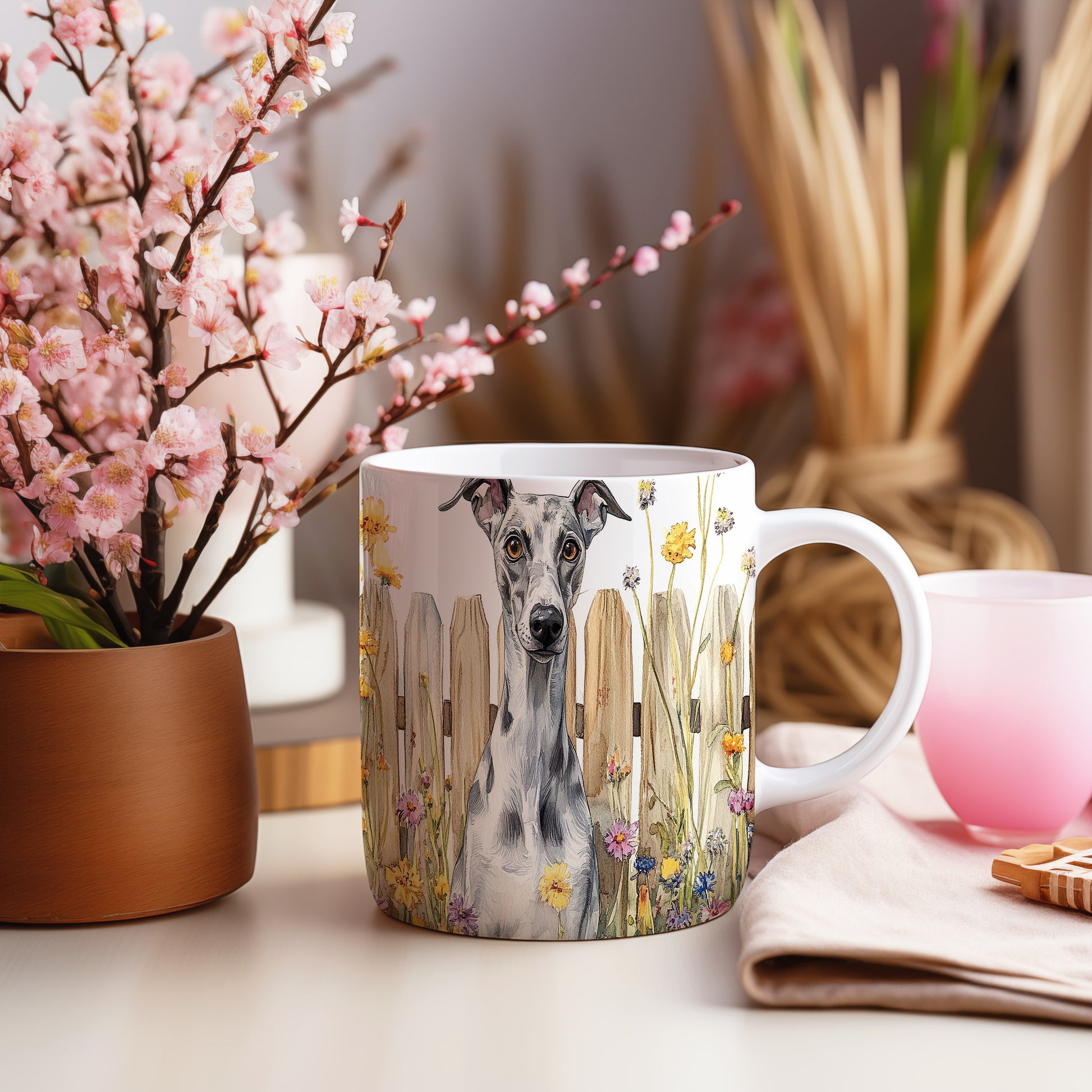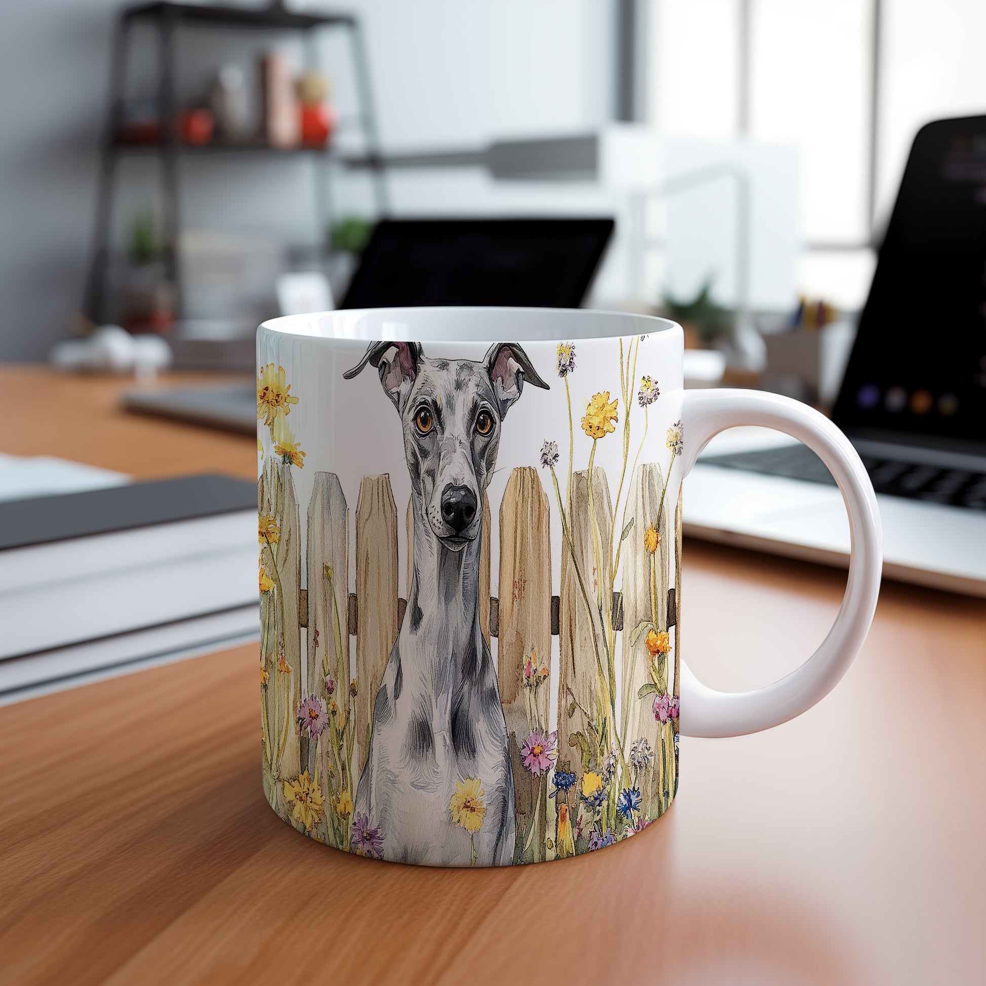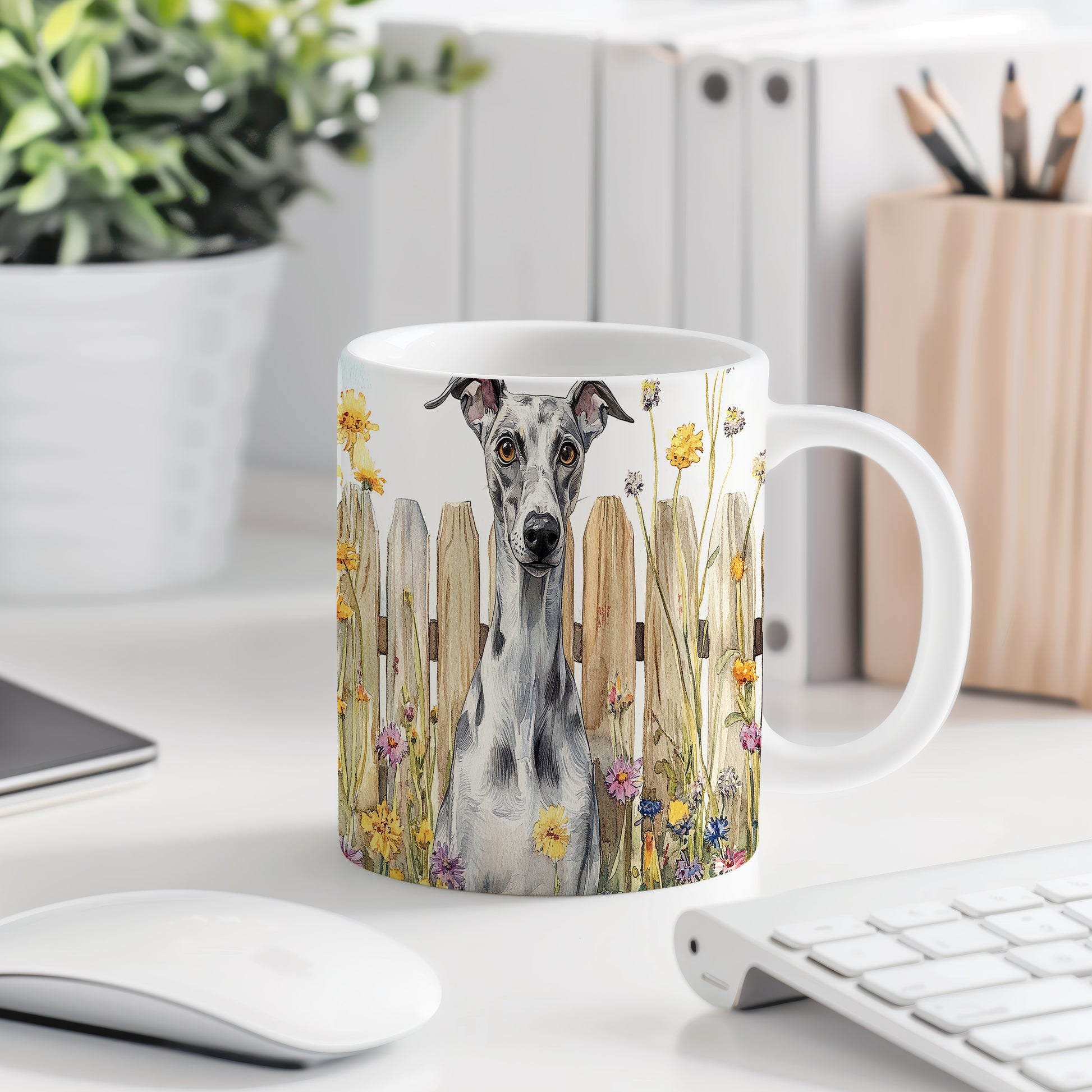 Tento stylový hrnek zdobí realistická ilustrace whippeta, což je ideální motiv pro milovníky psů. Skvělý tip na dárek pro každého, kdo má rád elegantní design a zvířata. Materiál: keramika. Objem: 330 ml. Vhodné do myčky i mikrovlnky. Používání tohoto hrnku přináší radost z pití oblíbeného nápoje.