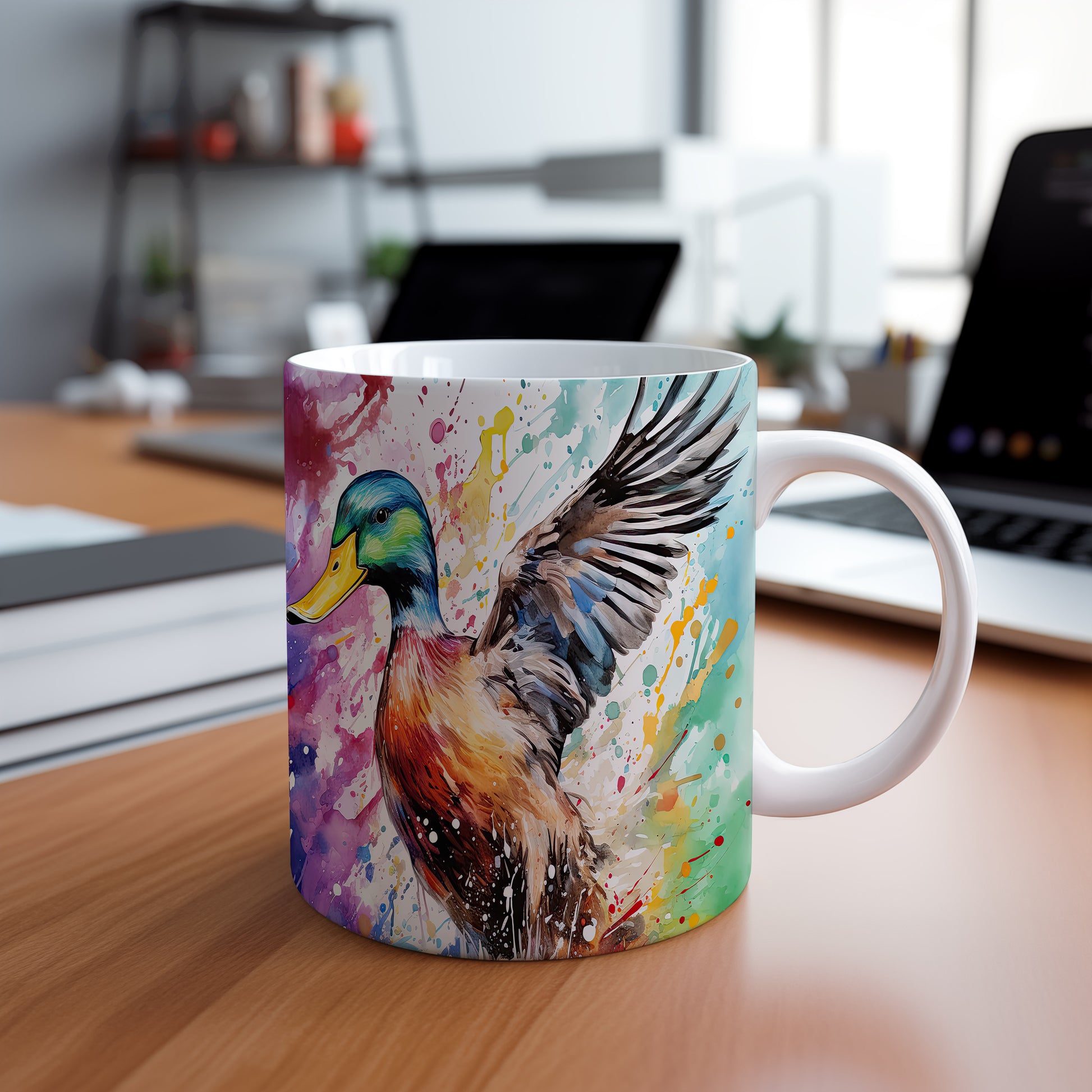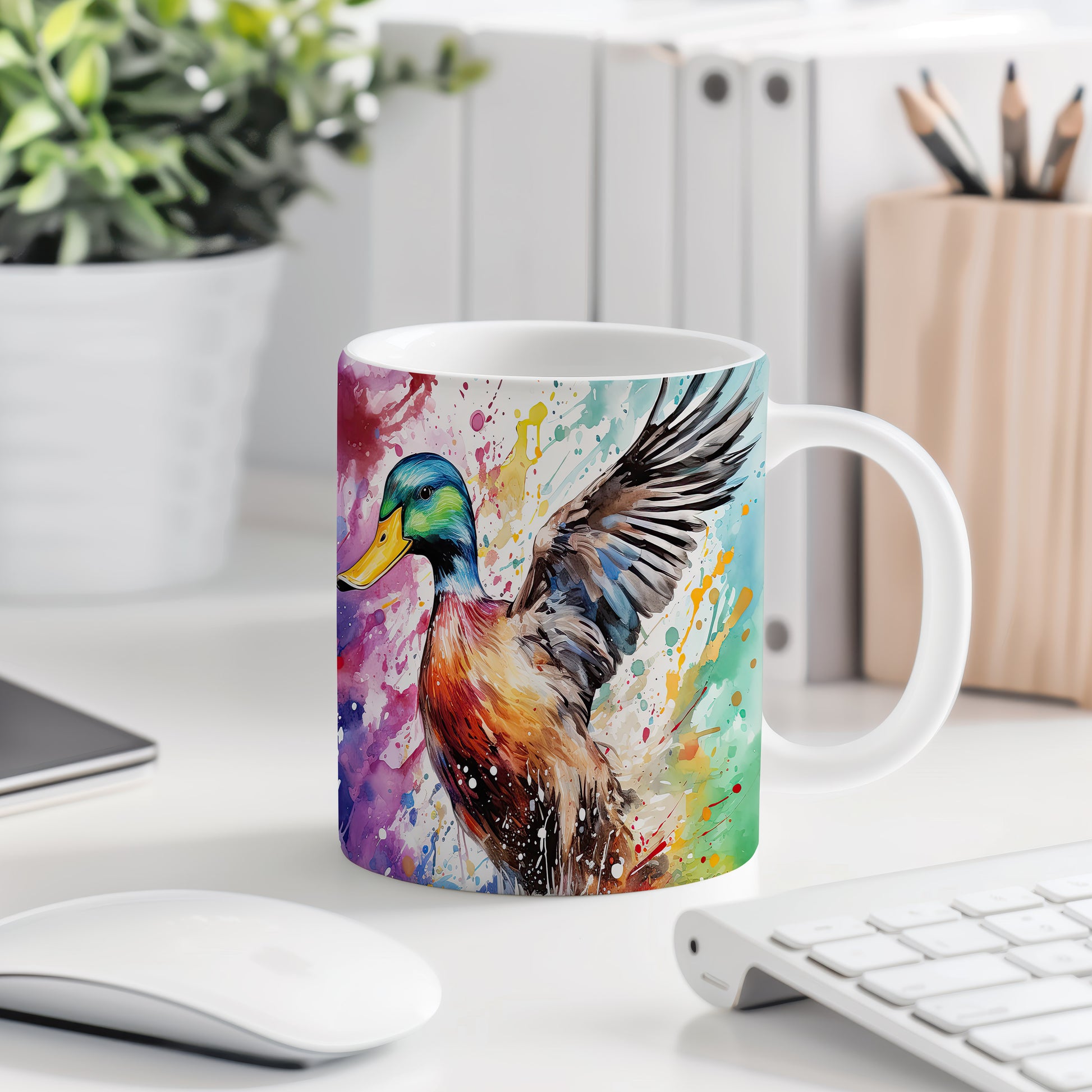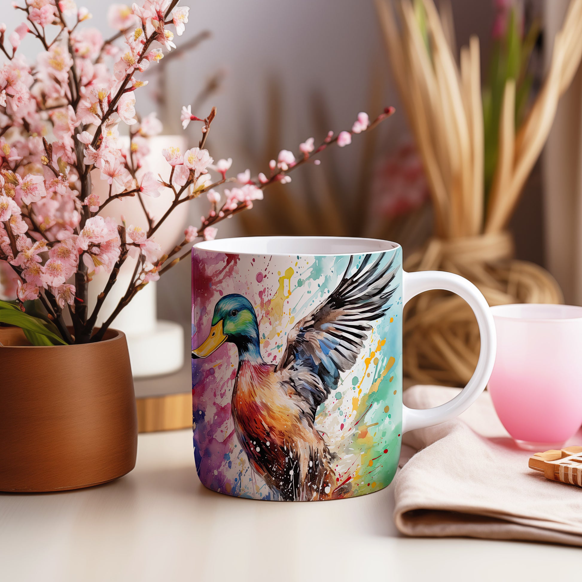 Tento keramický hrnek s ilustrací kachny v letu a barevným pozadím potěší milovníky přírody a originálního designu. Je skvělým dárkem pro přátele nebo rodinu, kteří ocení jedinečné kousky. Materiál: keramika. Objem: 330 ml. Vhodné do myčky i mikrovlnky. Používání tohoto hrnku přináší radost z každého doušku.