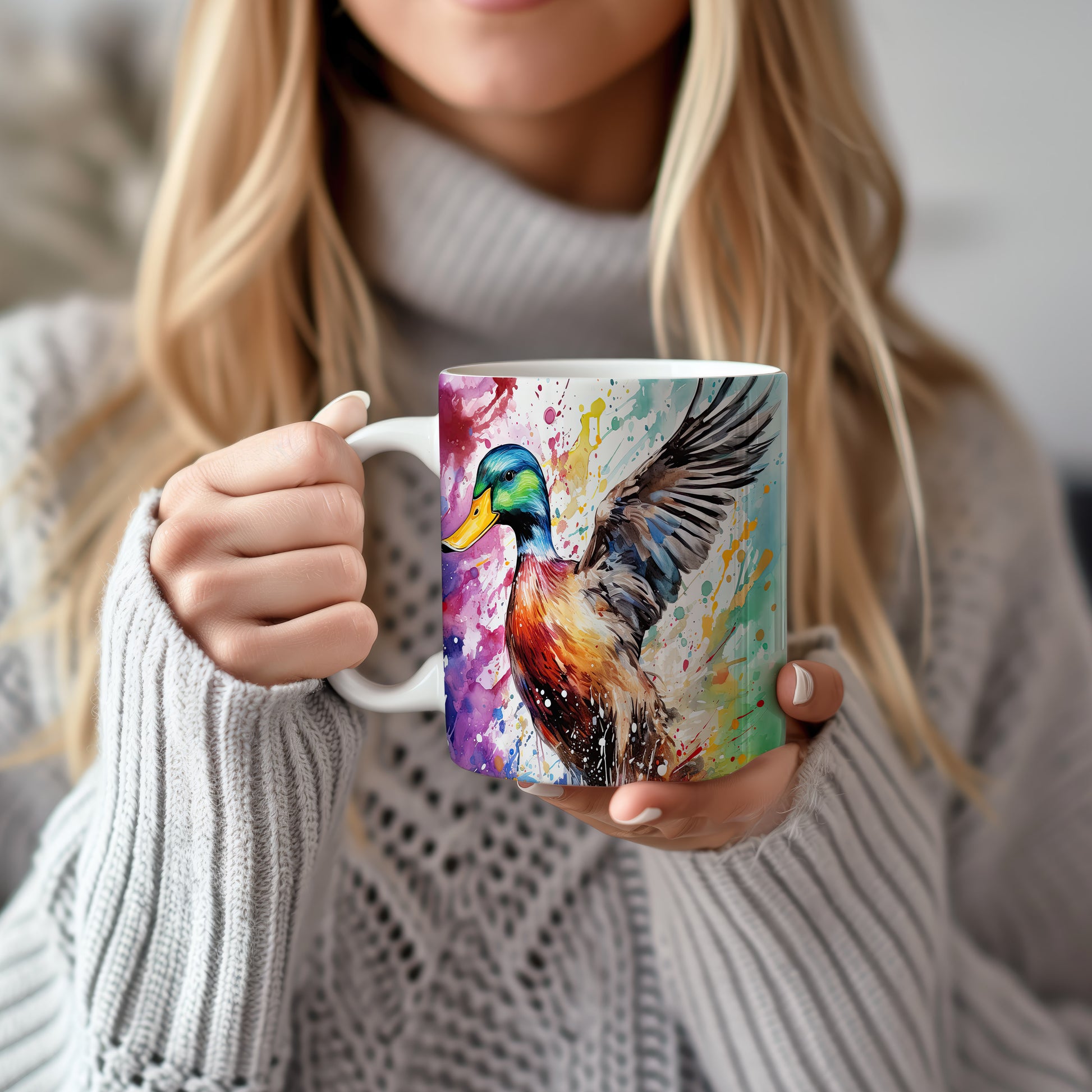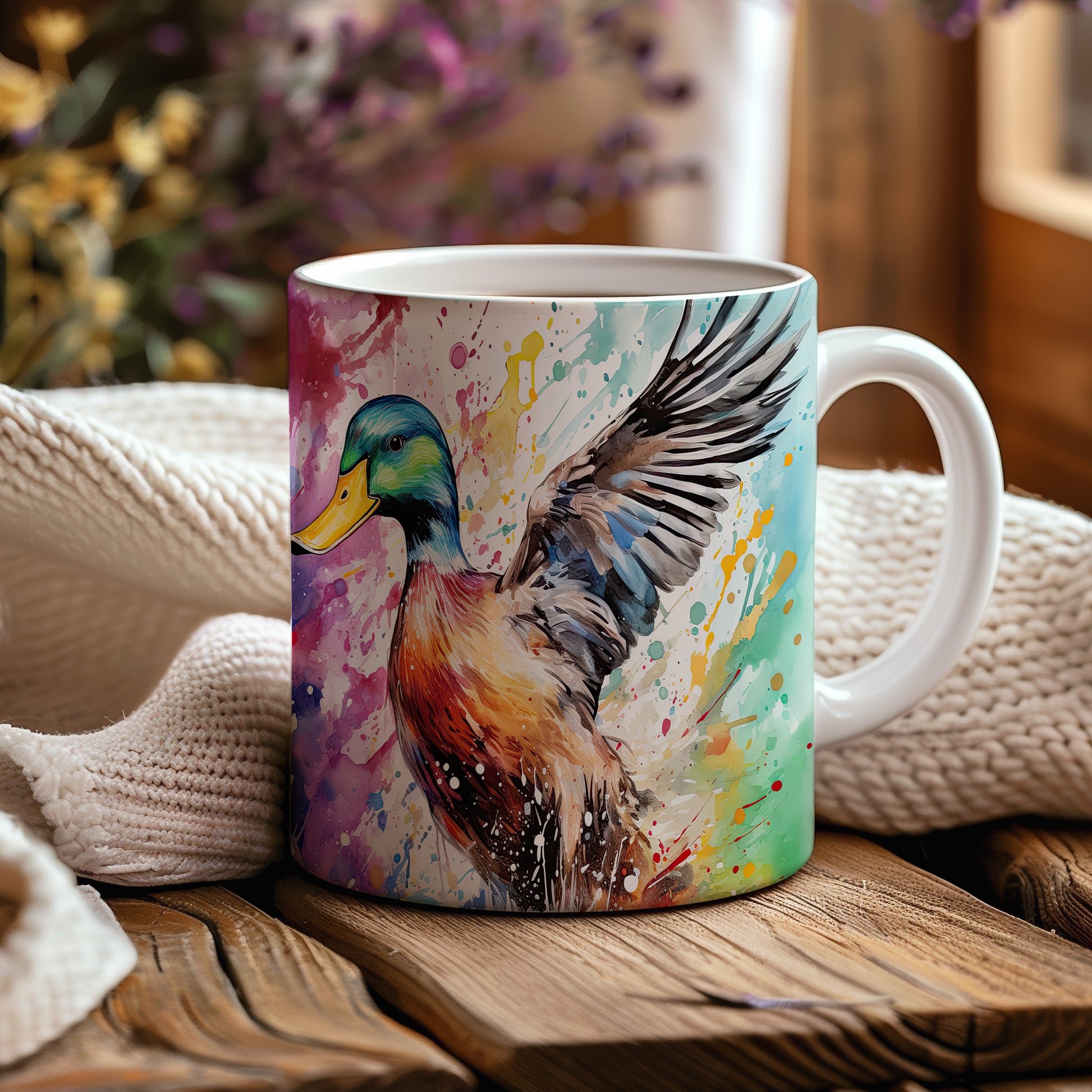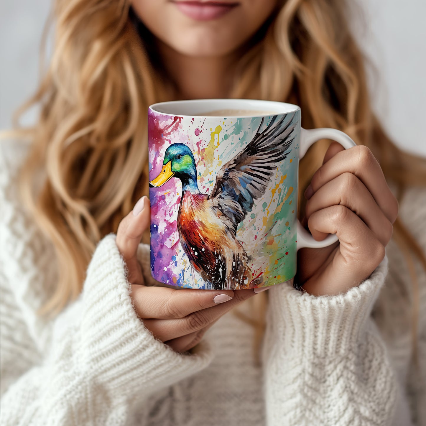 Tento keramický hrnek s ilustrací kachny v letu a barevným pozadím potěší milovníky přírody a originálního designu. Je skvělým dárkem pro přátele nebo rodinu, kteří ocení jedinečné kousky. Materiál: keramika. Objem: 330 ml. Vhodné do myčky i mikrovlnky. Používání tohoto hrnku přináší radost z každého doušku.