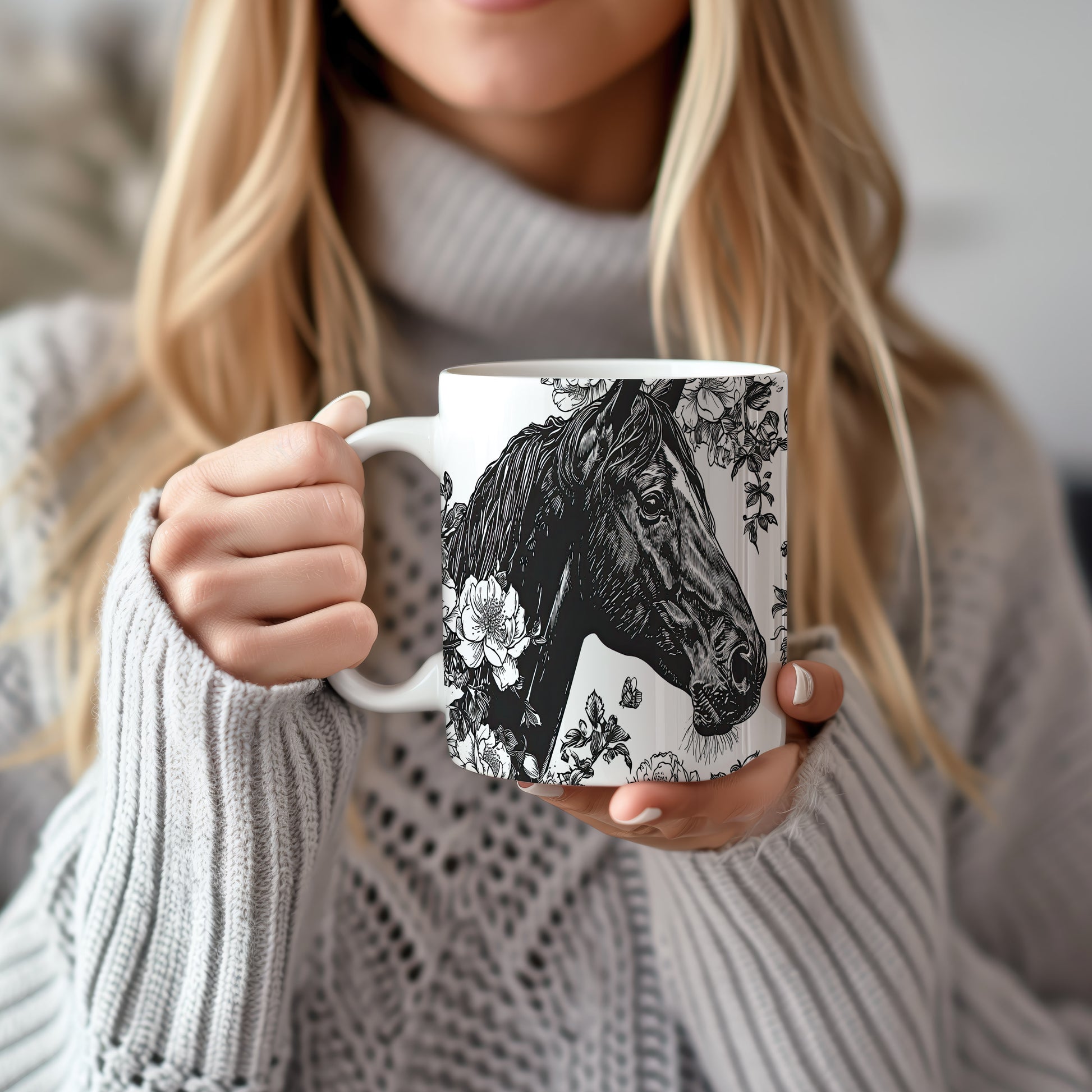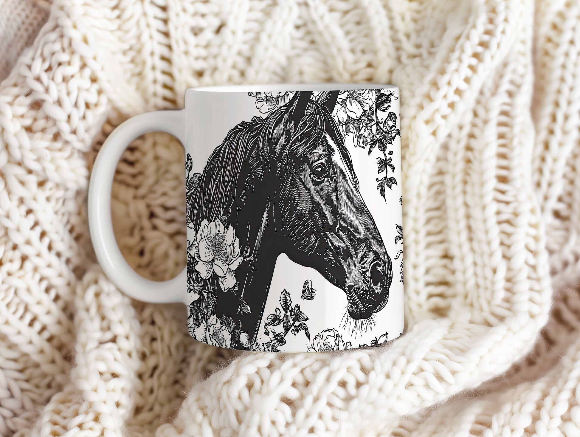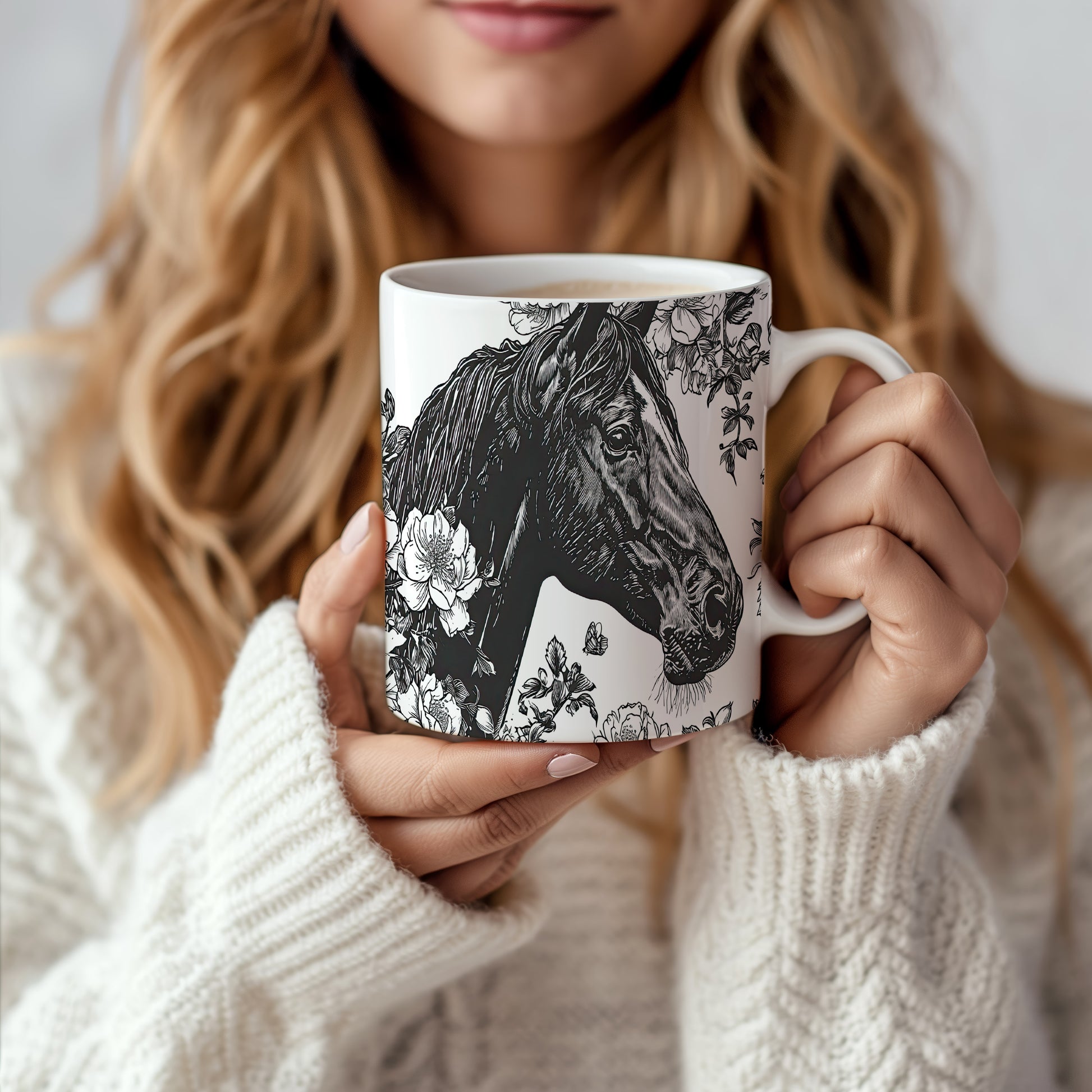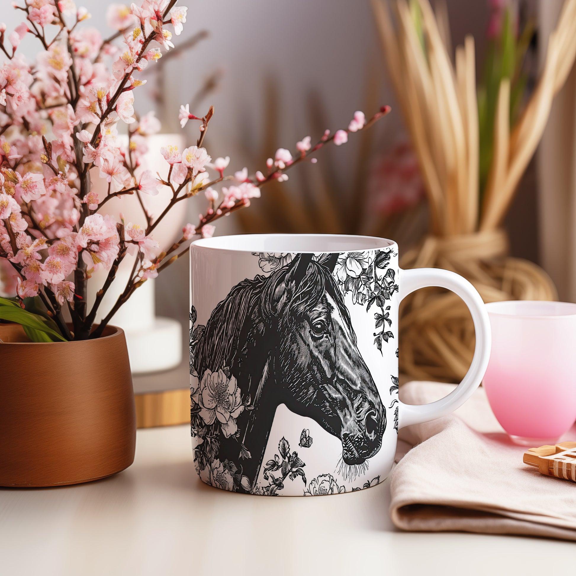 Hrnek s motivem koně a květin je elegantním kouskem pro všechny milovníky přírody. Skvělý tip na dárek pro přátele nebo rodinu, kteří ocení krásu přírody. Materiál: keramika. Objem: 330 ml. Vhodné do myčky i mikrovlnky. Tento hrnek přináší radost z každého doušku a dodává osobitý styl vaší kávě nebo čaji.