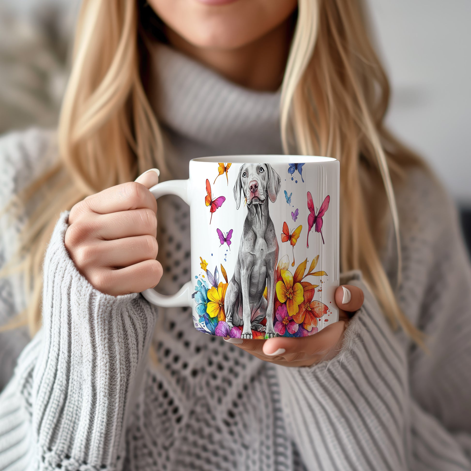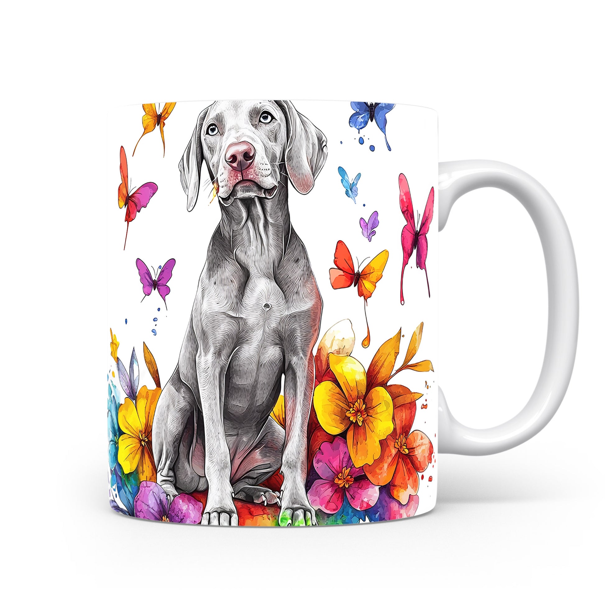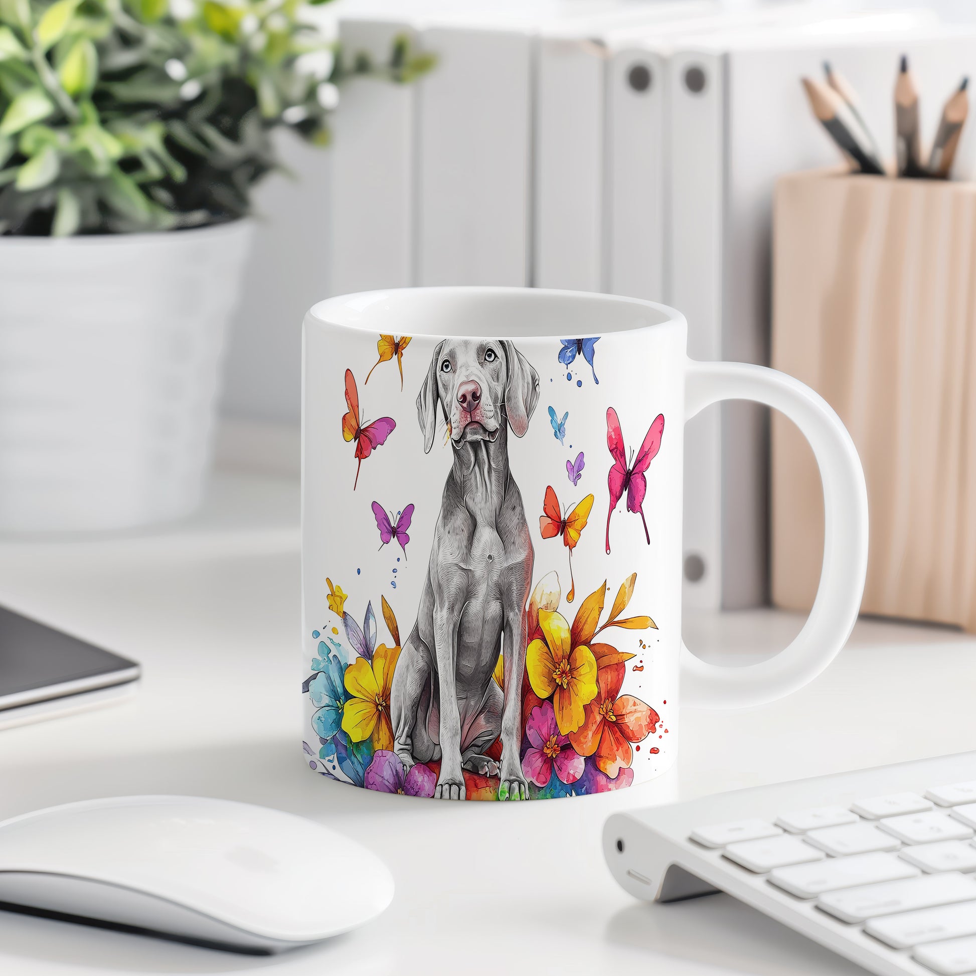 Hrnek s ilustrací Vymarského ohaře a květinami