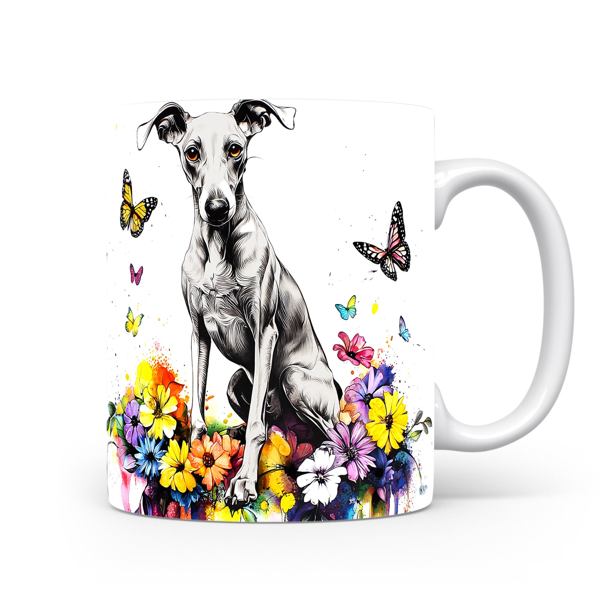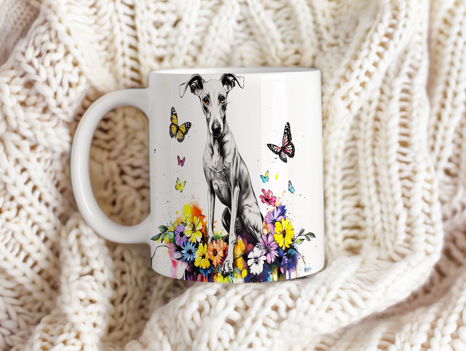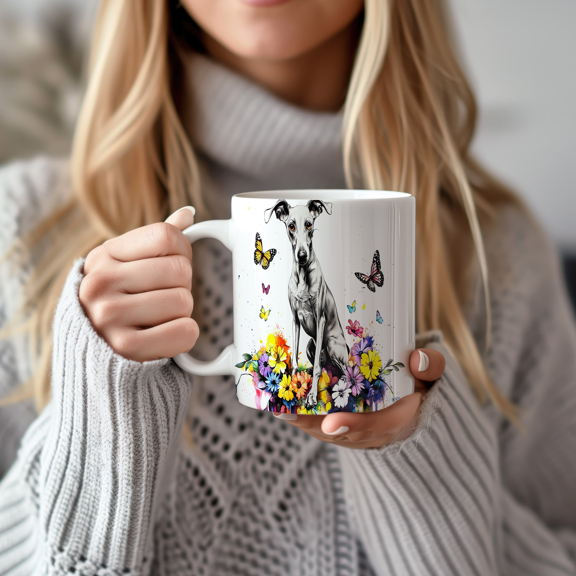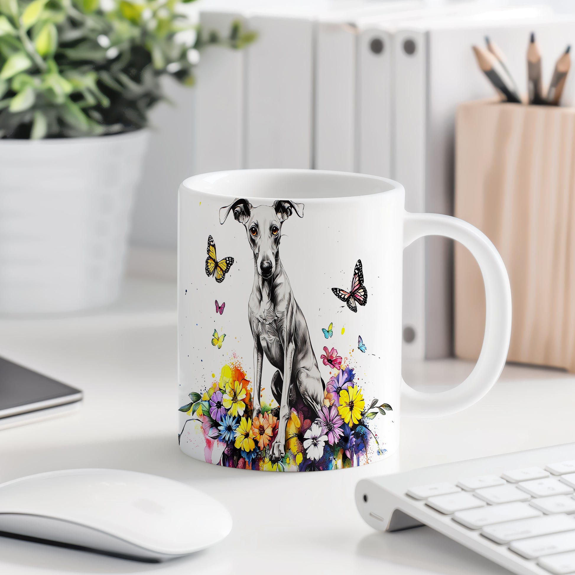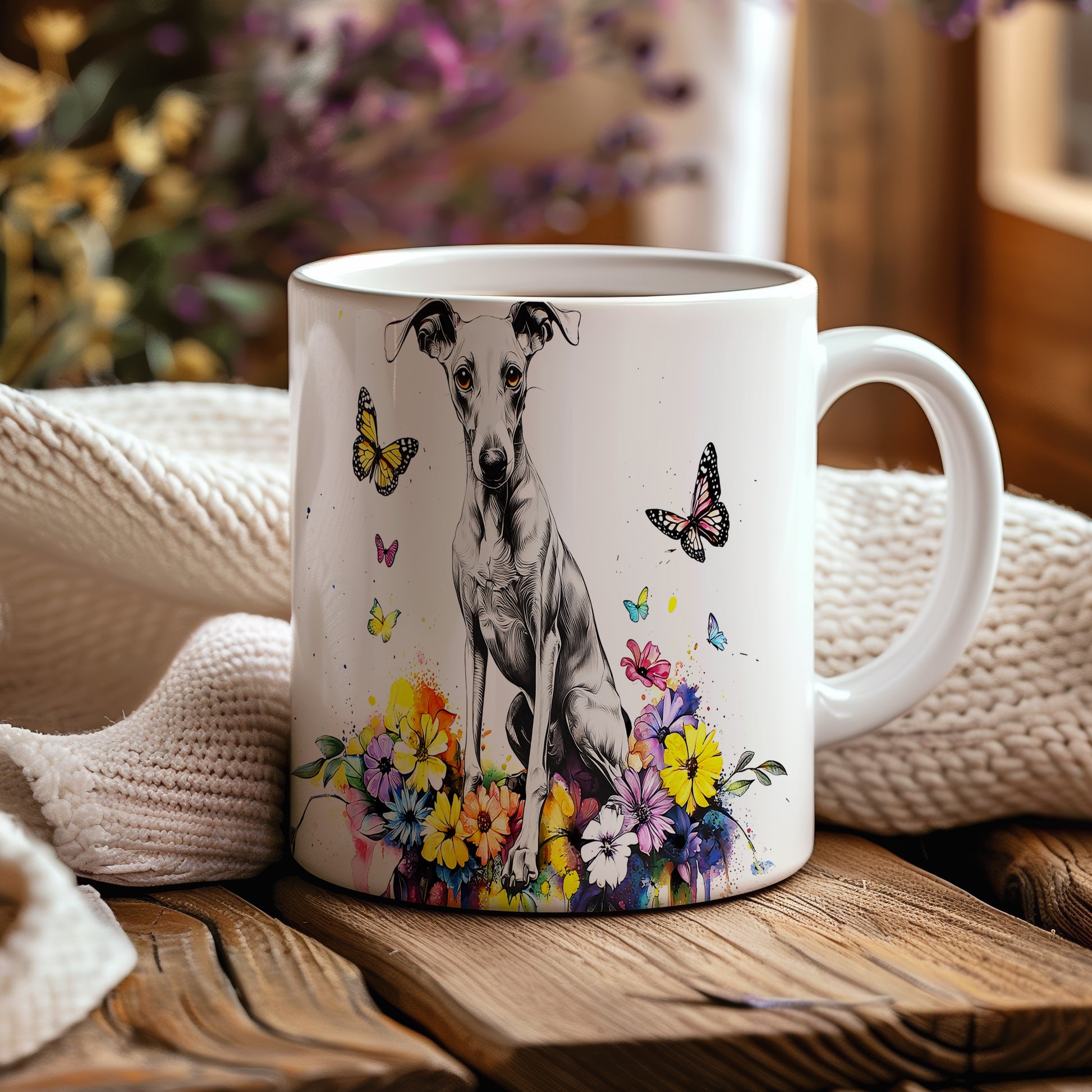 Tento hrnek zobrazuje roztomilého psa obklopeného barevnými květinami a motýli. Je ideální pro milovníky zvířat a přírody, skvělý tip na dárek pro přátele nebo rodinu. Materiál: keramika. Objem: 330 ml. Vhodné do myčky i mikrovlnky. Používání tohoto hrnku přináší radost a oživí každé pití.
