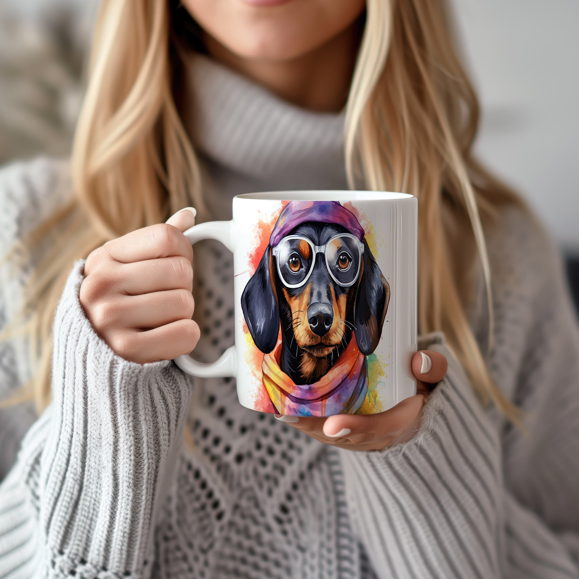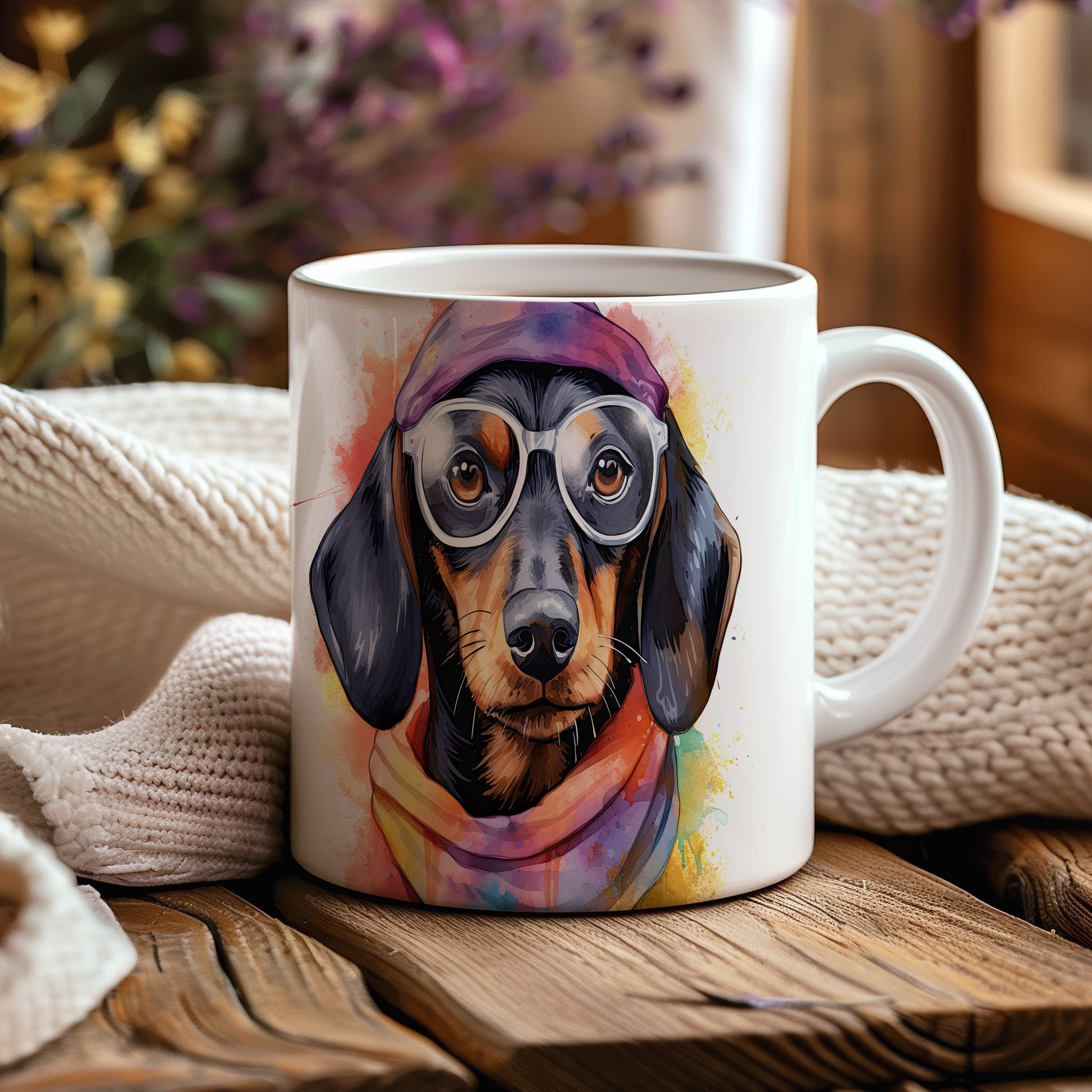 Tento hrnek zobrazuje psa v brýlích a barevném šátku, ideální pro milovníky zvířat. Skvělý tip na dárek pro přátele nebo rodinu, kteří ocení originální design. Materiál: keramika. Objem: 330 ml. Vhodné do myčky i mikrovlnky. Používáním tohoto hrnku si zpříjemníte každodenní pití oblíbeného nápoje.