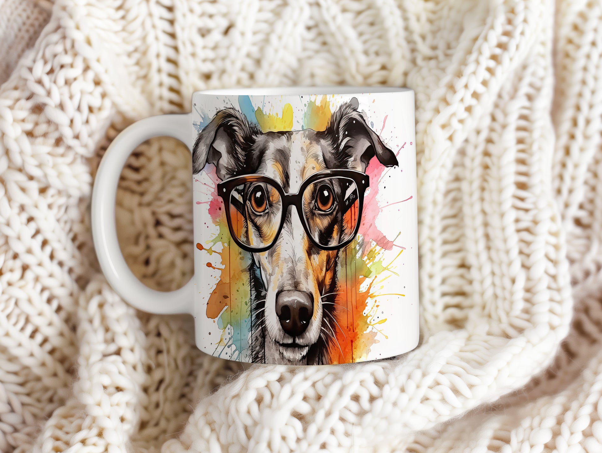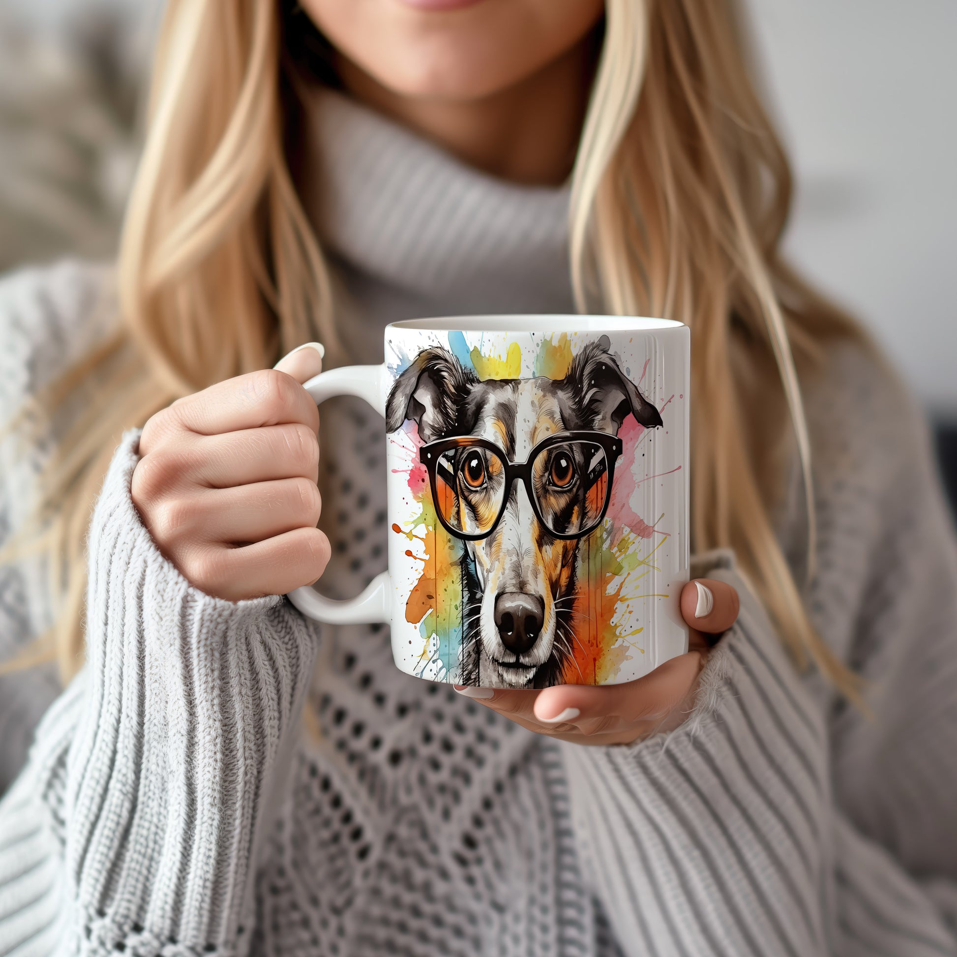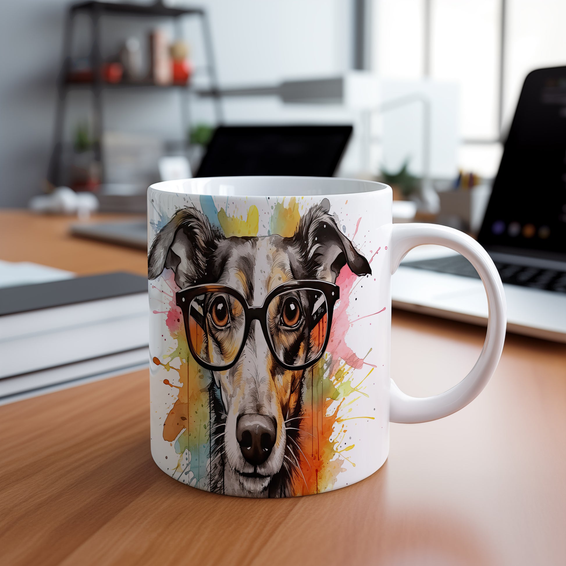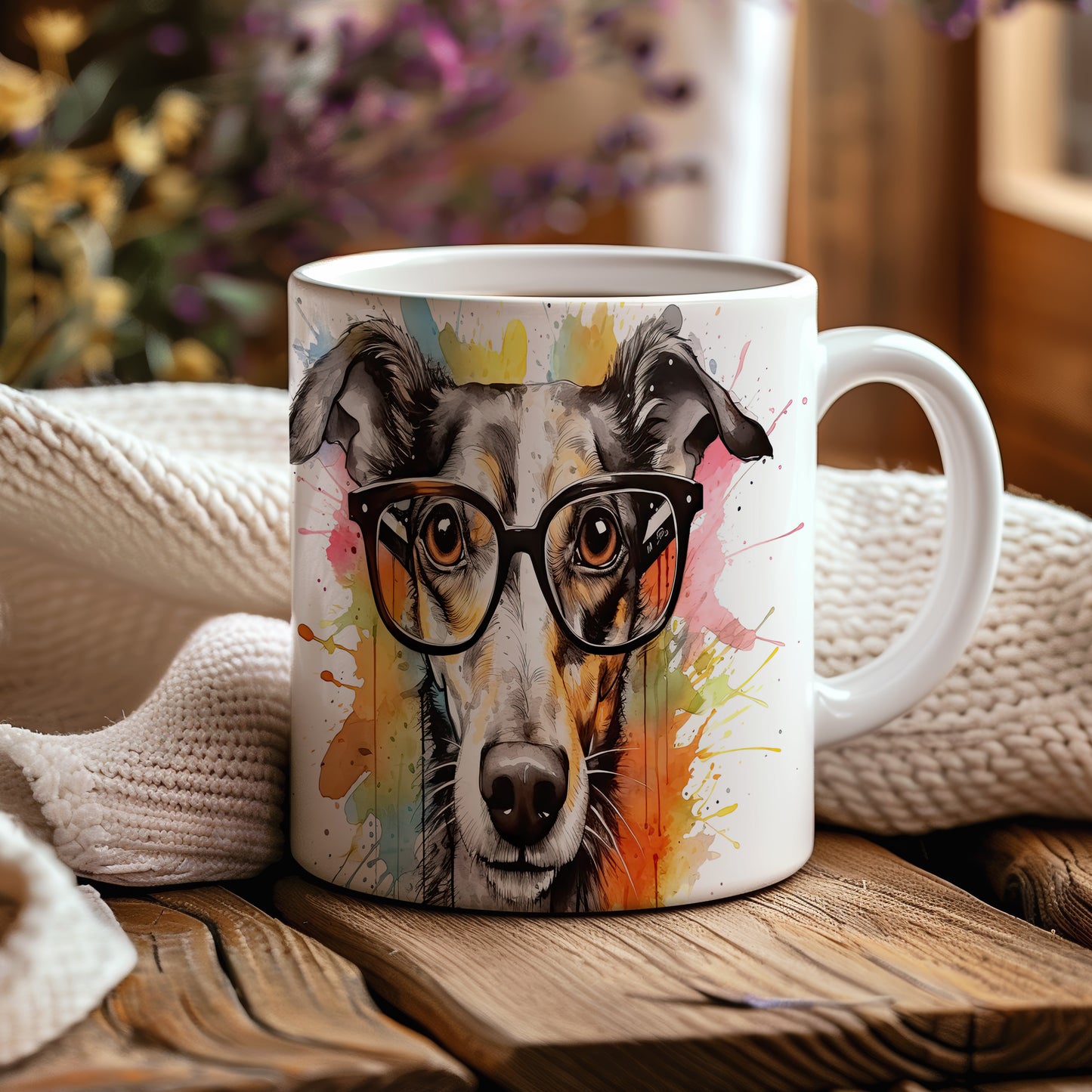 Hrnek s ilustrací psa v brýlích – malířským vzhledem