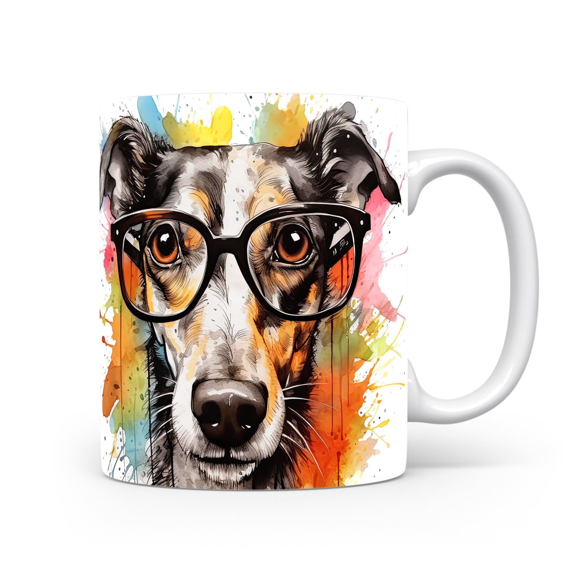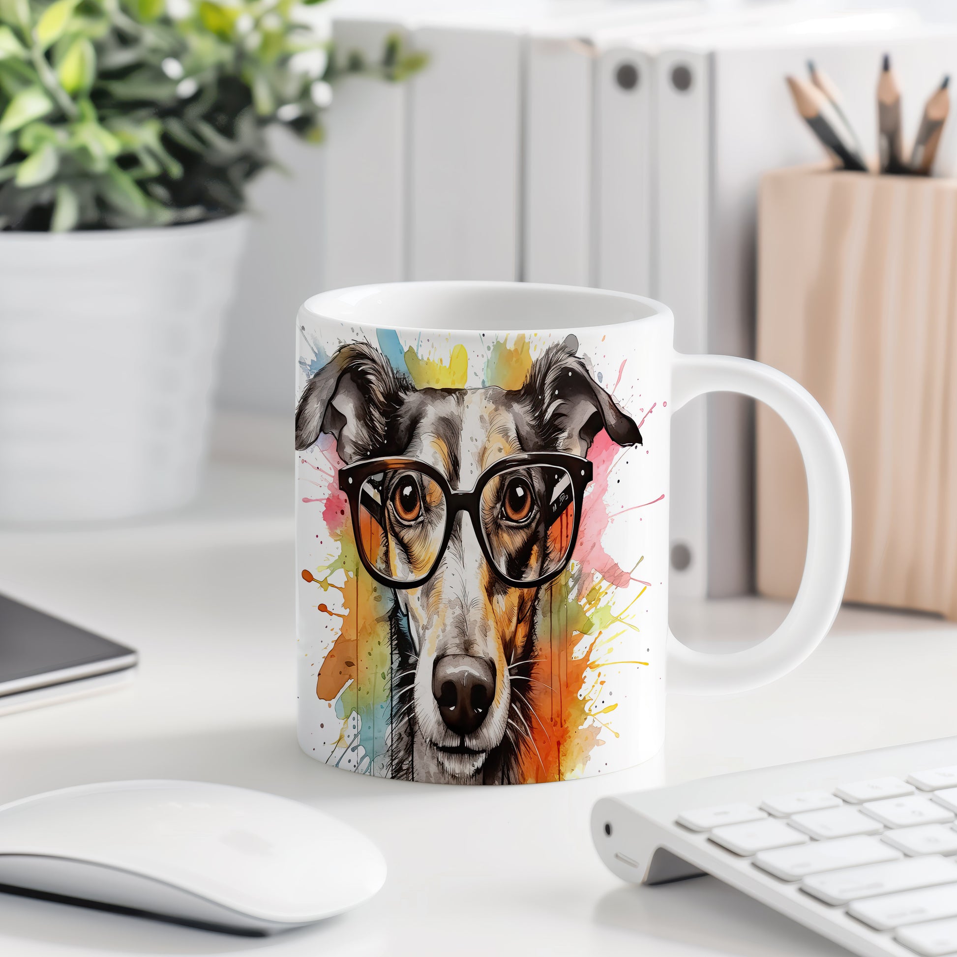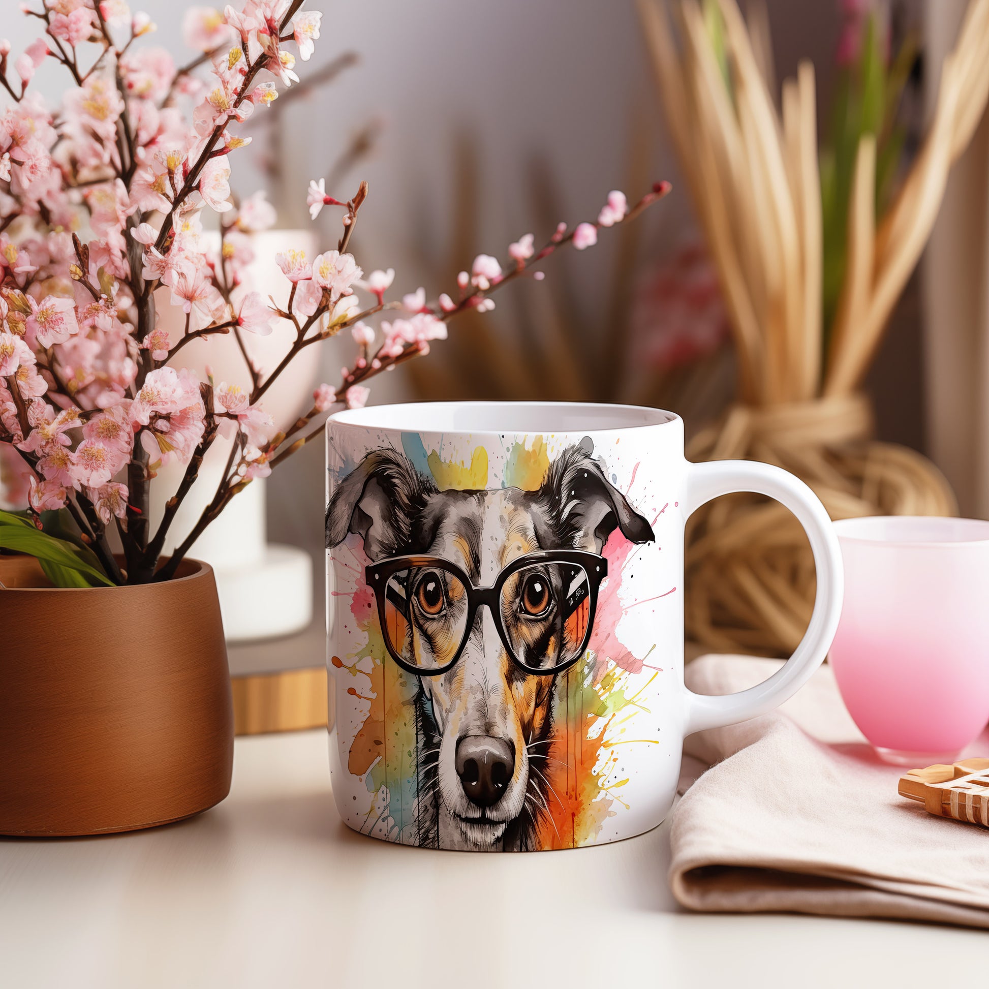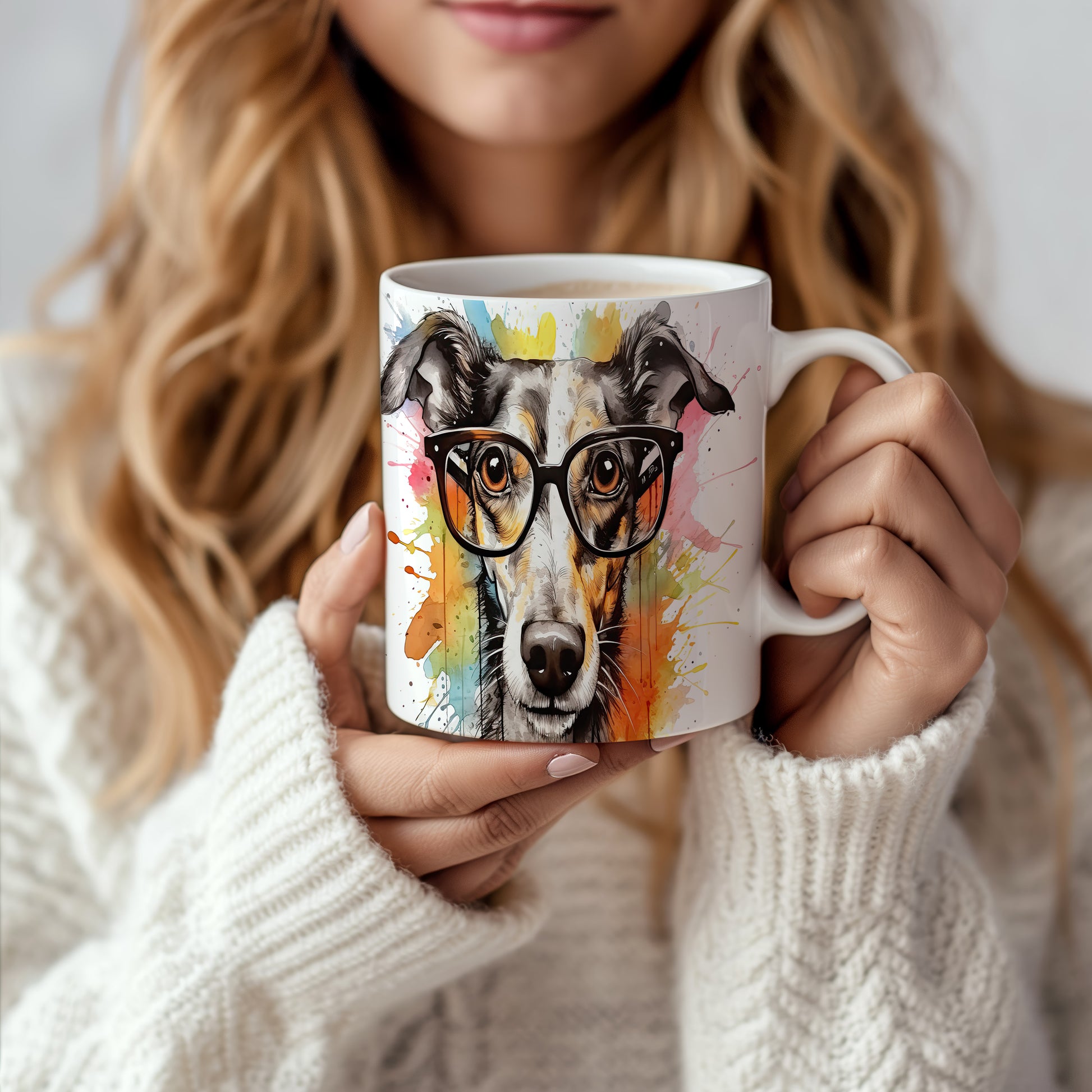 Hrnek s ilustrací psa v brýlích – malířským vzhledem