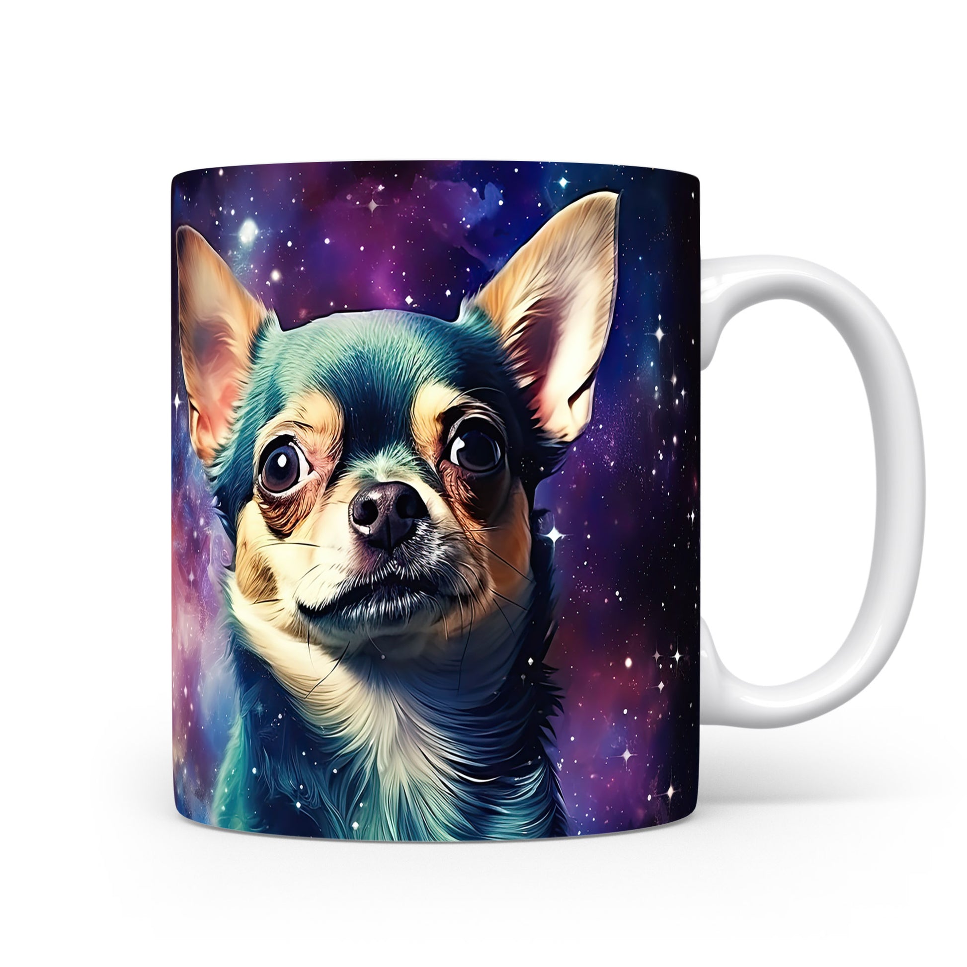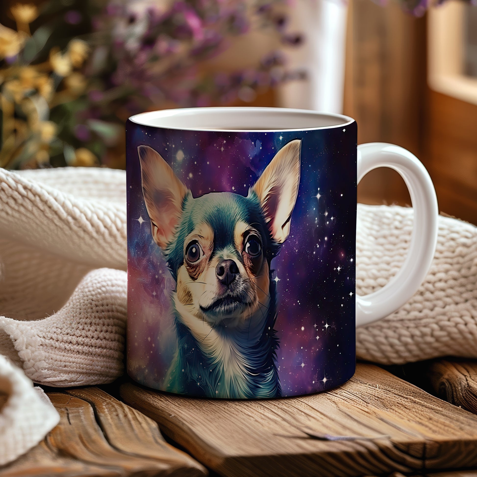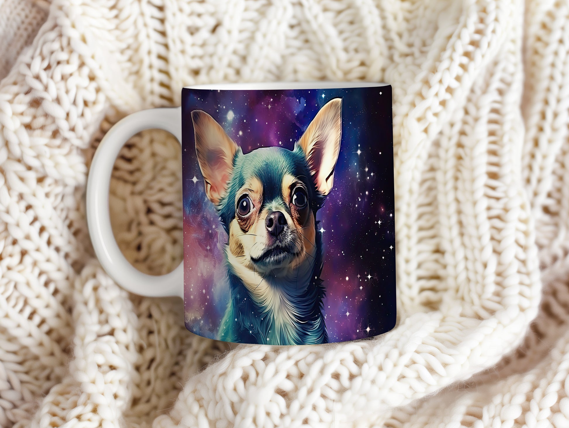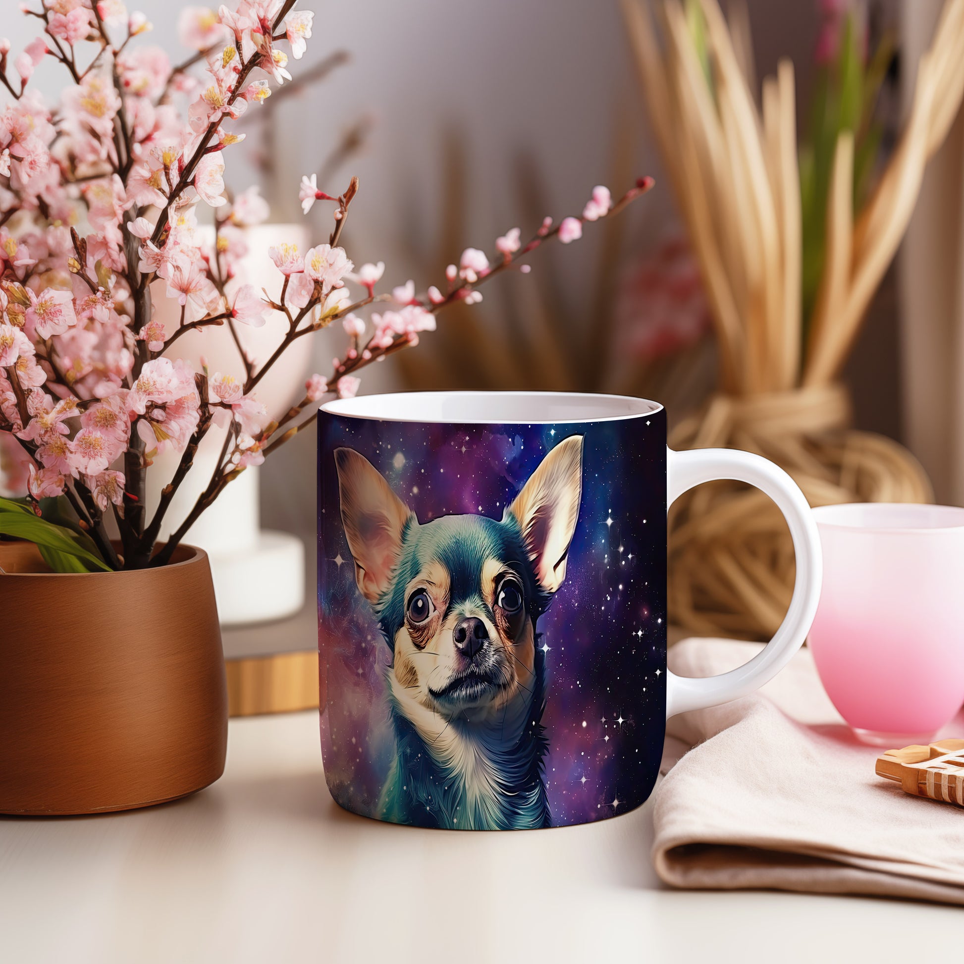 Hrnek s uměleckým zobrazením čivavy na galaktickém pozadí. Tento hrnek je ideální pro milovníky psů a vesmíru, skvělý tip na dárek pro každého, kdo má rád originální design. Materiál: keramika. Objem: 330 ml. Vhodné do myčky i mikrovlnky. Používání tohoto hrnku přináší radost z každého doušku.