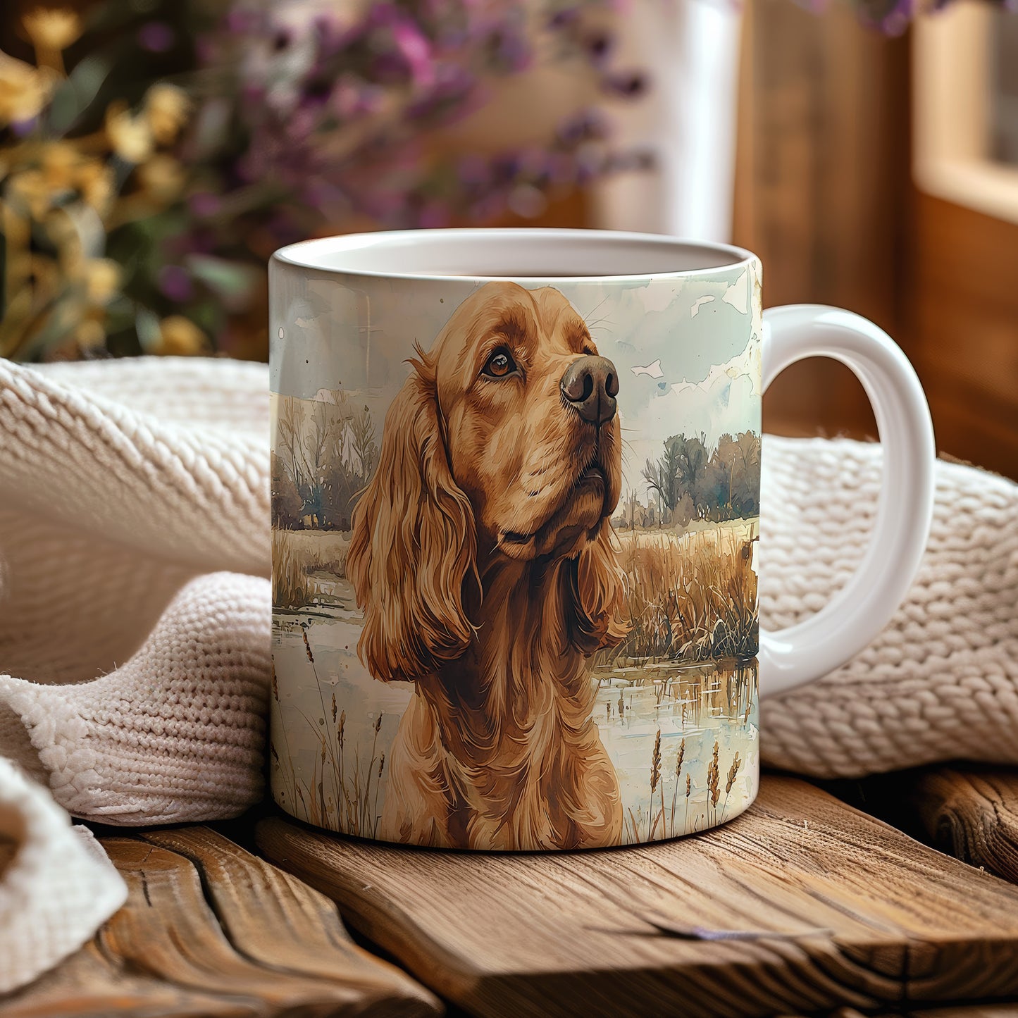 Hrnek s ilustrací Anglického kokršpaněla v přírodě