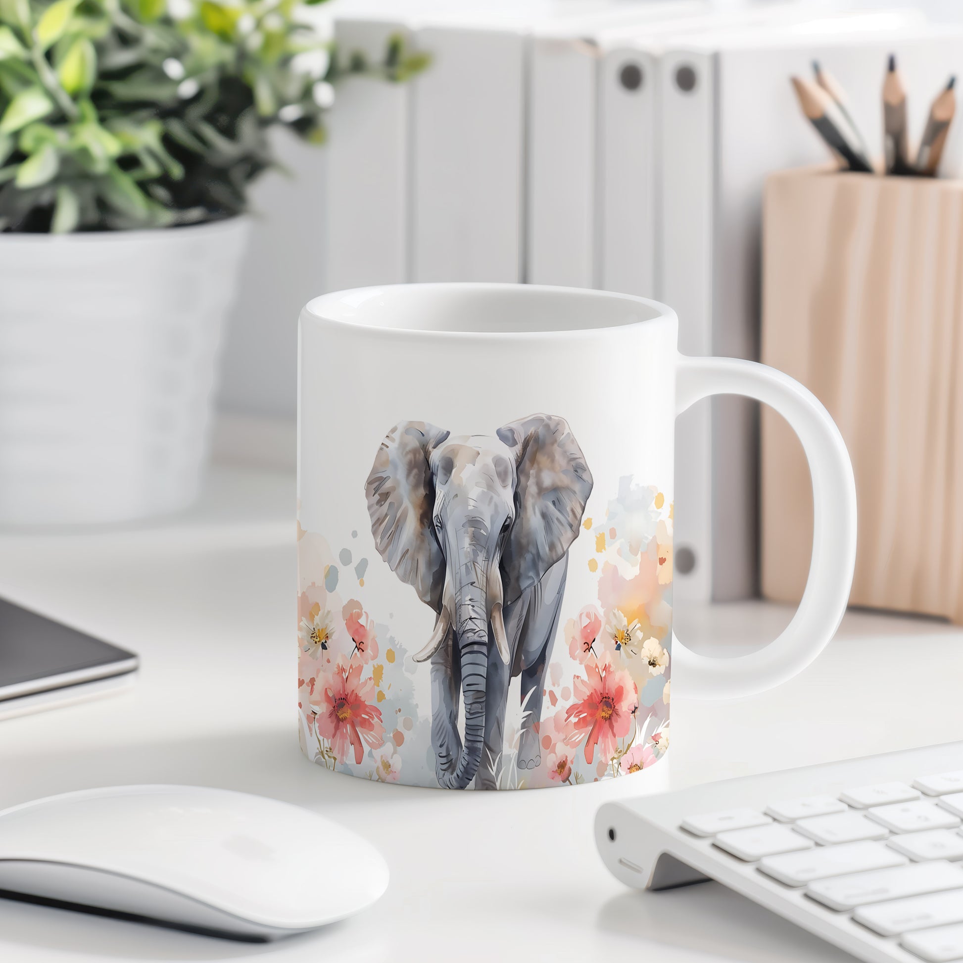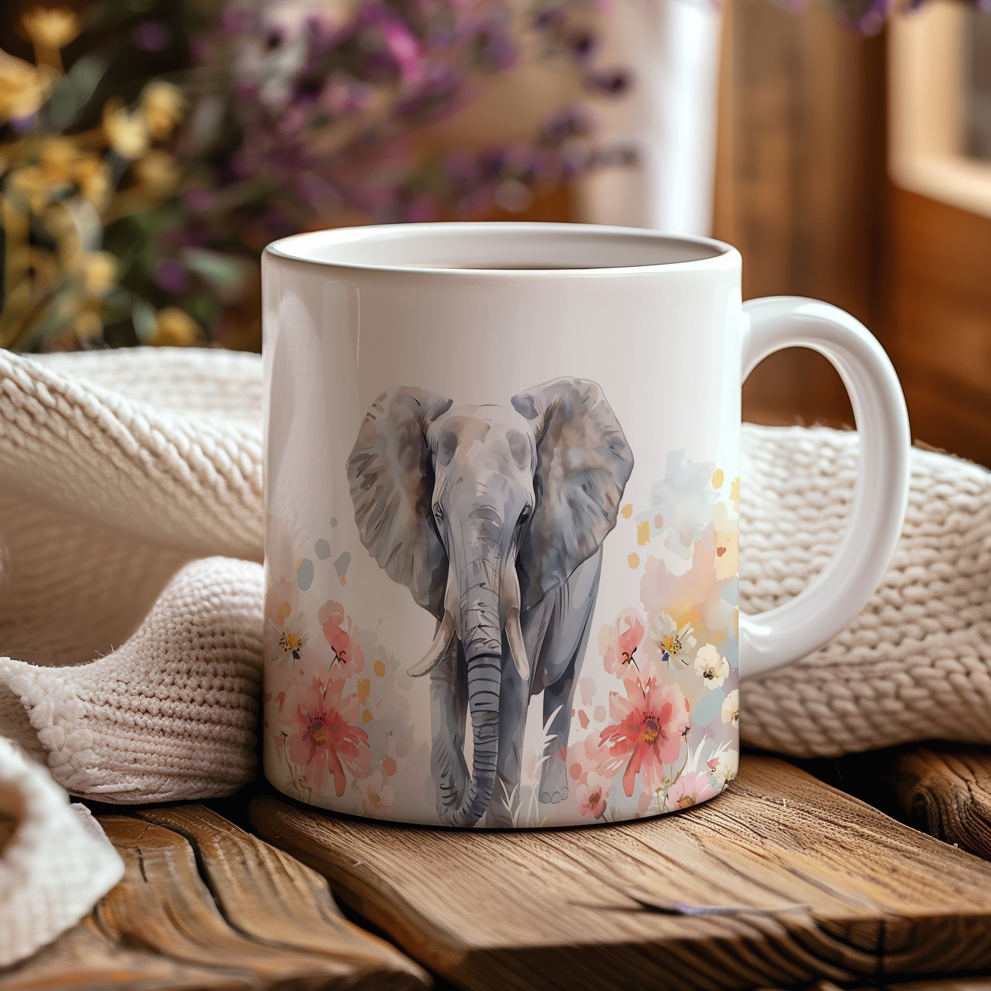 Tento hrnek s realistickou ilustrací slona a barevnými květinami potěší všechny milovníky přírody a zvířat. Skvělý tip na dárek pro přátele nebo rodinu, kteří ocení originální design. Materiál: keramika. Objem: 330 ml. Vhodné do myčky i mikrovlnky. Při každém doušku si užijete jedinečný zážitek z pití.