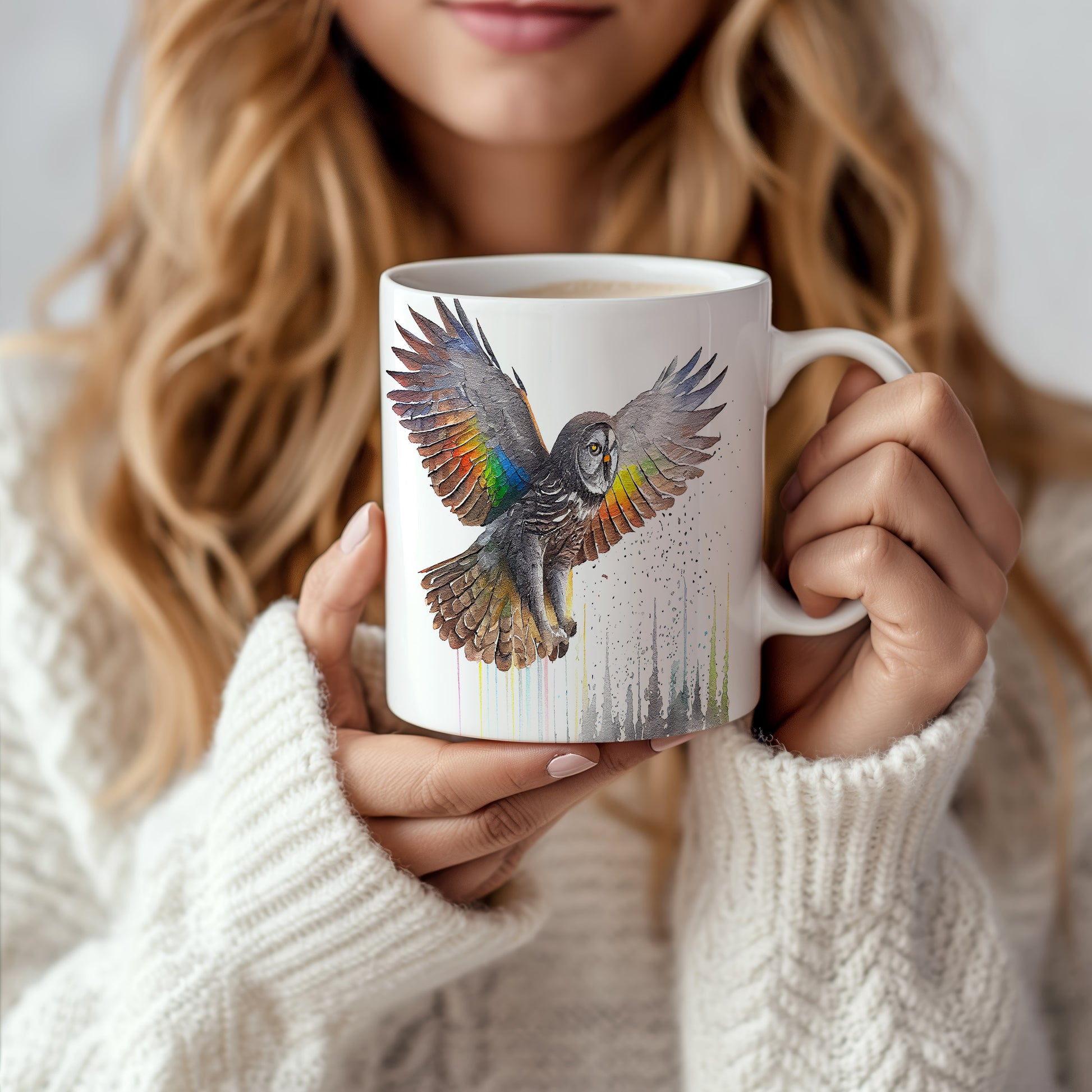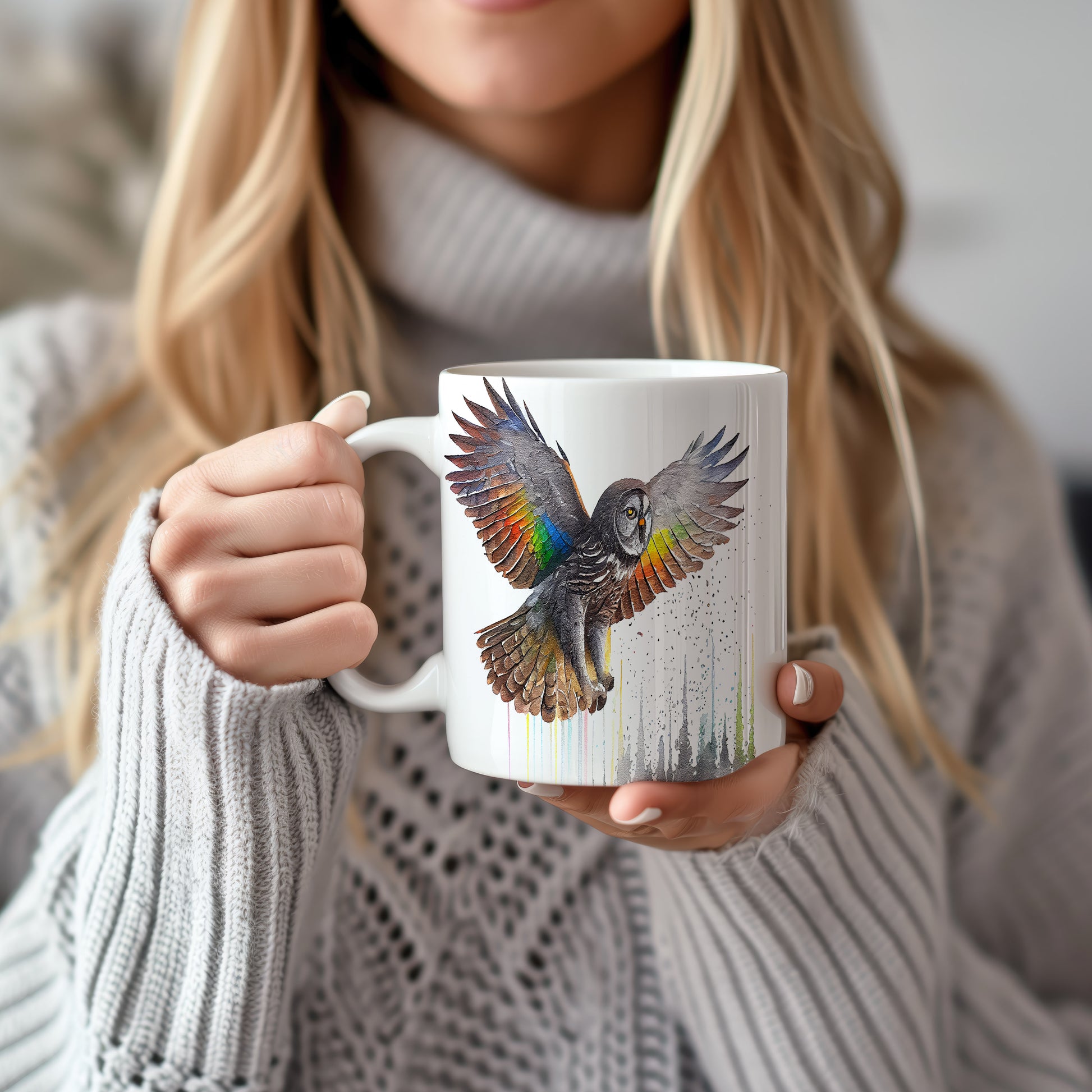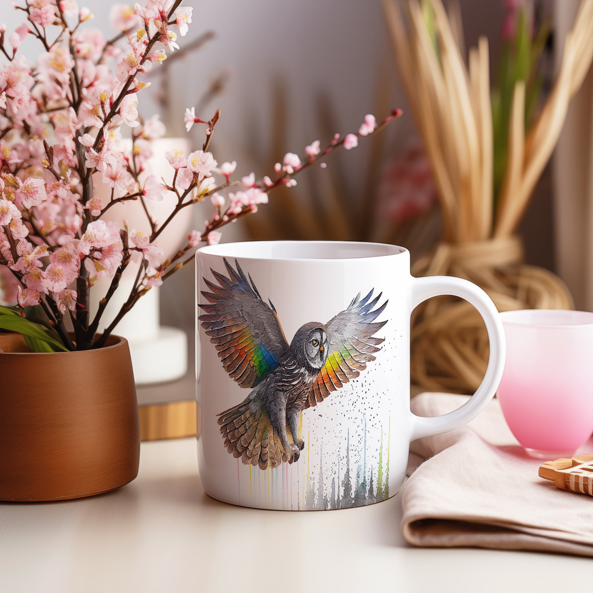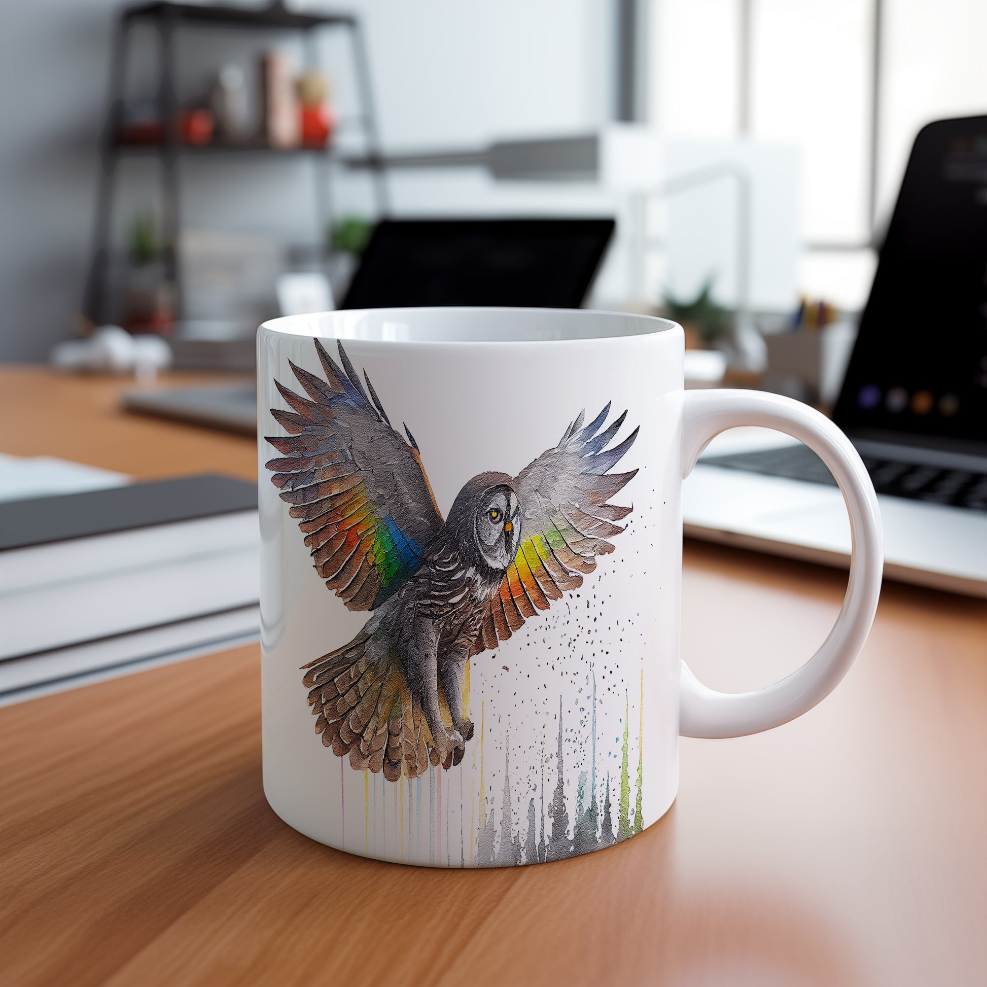 Hrnek s motivem sovy v letu je skvělým kouskem pro milovníky přírody a zvířat. Tento hrnek potěší každého, kdo ocení krásu a majestátnost těchto ptáků, a je ideálním dárkem pro přátele nebo rodinu. Materiál: keramika. Objem: 330 ml. Vhodné do myčky i mikrovlnky. Používání tohoto hrnku přináší radost z každého doušku.