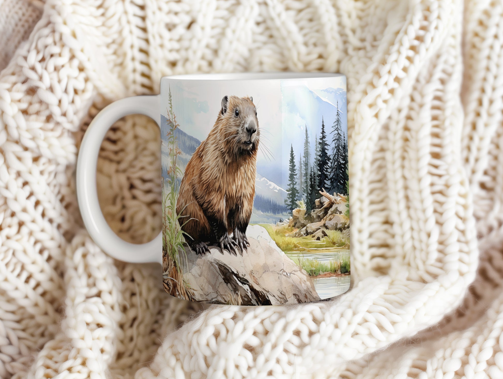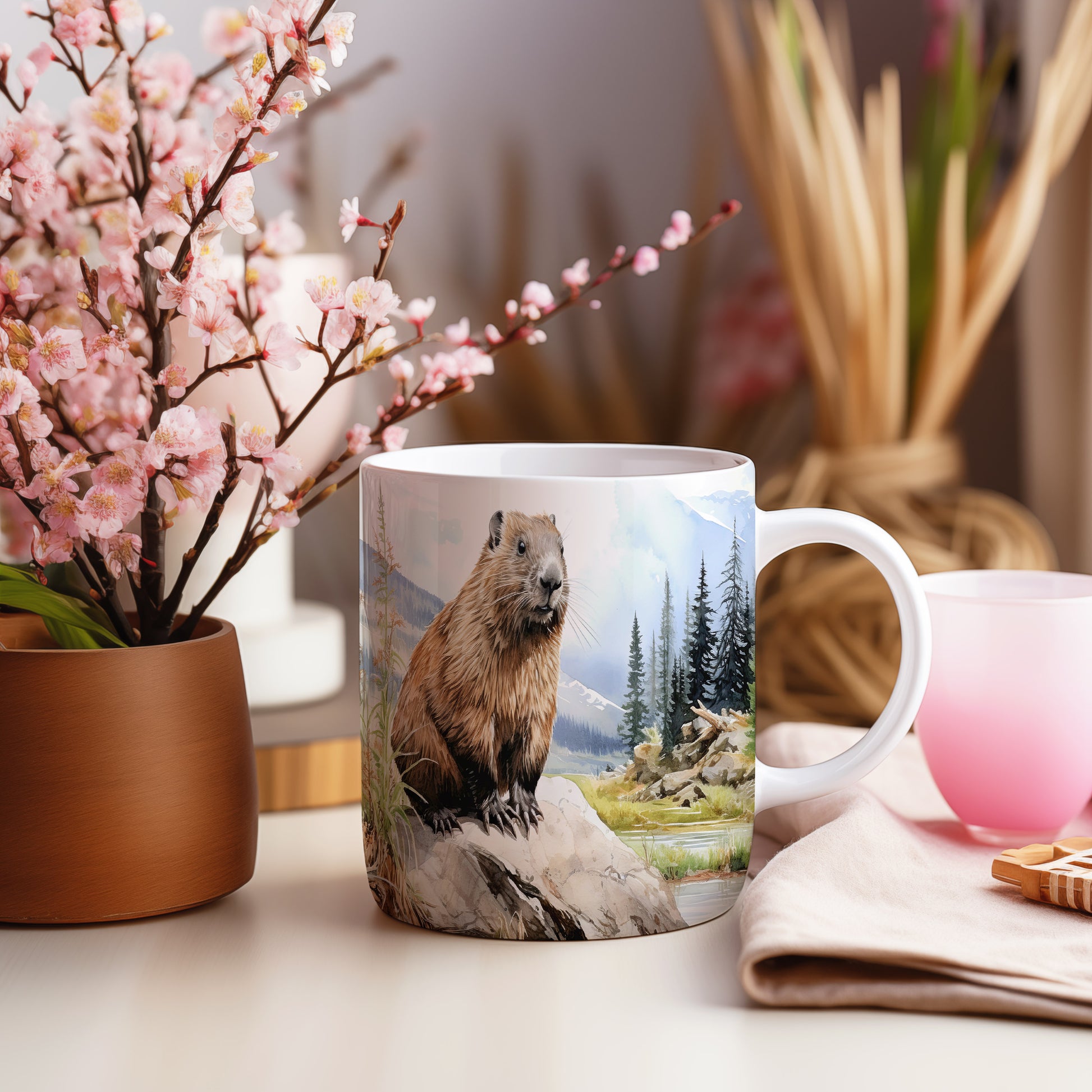 Hrnek s ilustrací svištěm na skalce