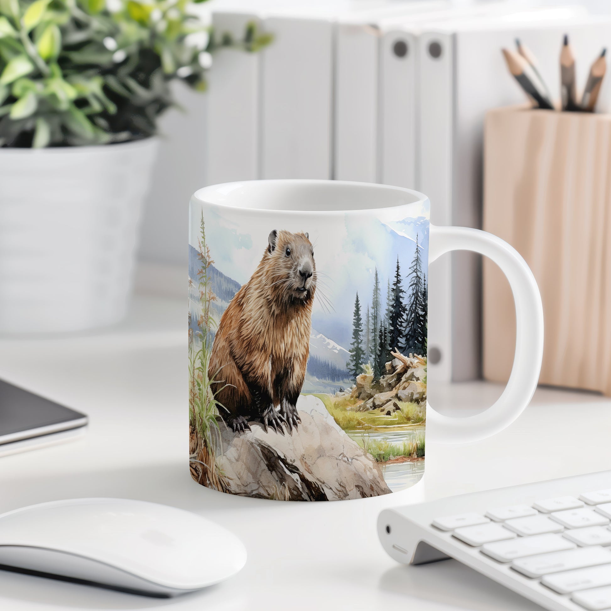 Hrnek s ilustrací svištěm na skalce přináší přírodní motiv a zvířecí tematiku. Je ideální pro milovníky zvířat a přírody, skvělý tip na dárek pro každého, kdo ocení krásu přírody. Materiál: keramika. Objem: 330 ml. Vhodné do myčky i mikrovlnky. Tento hrnek vám zpříjemní každé ráno a dodá vám energii na celý den.