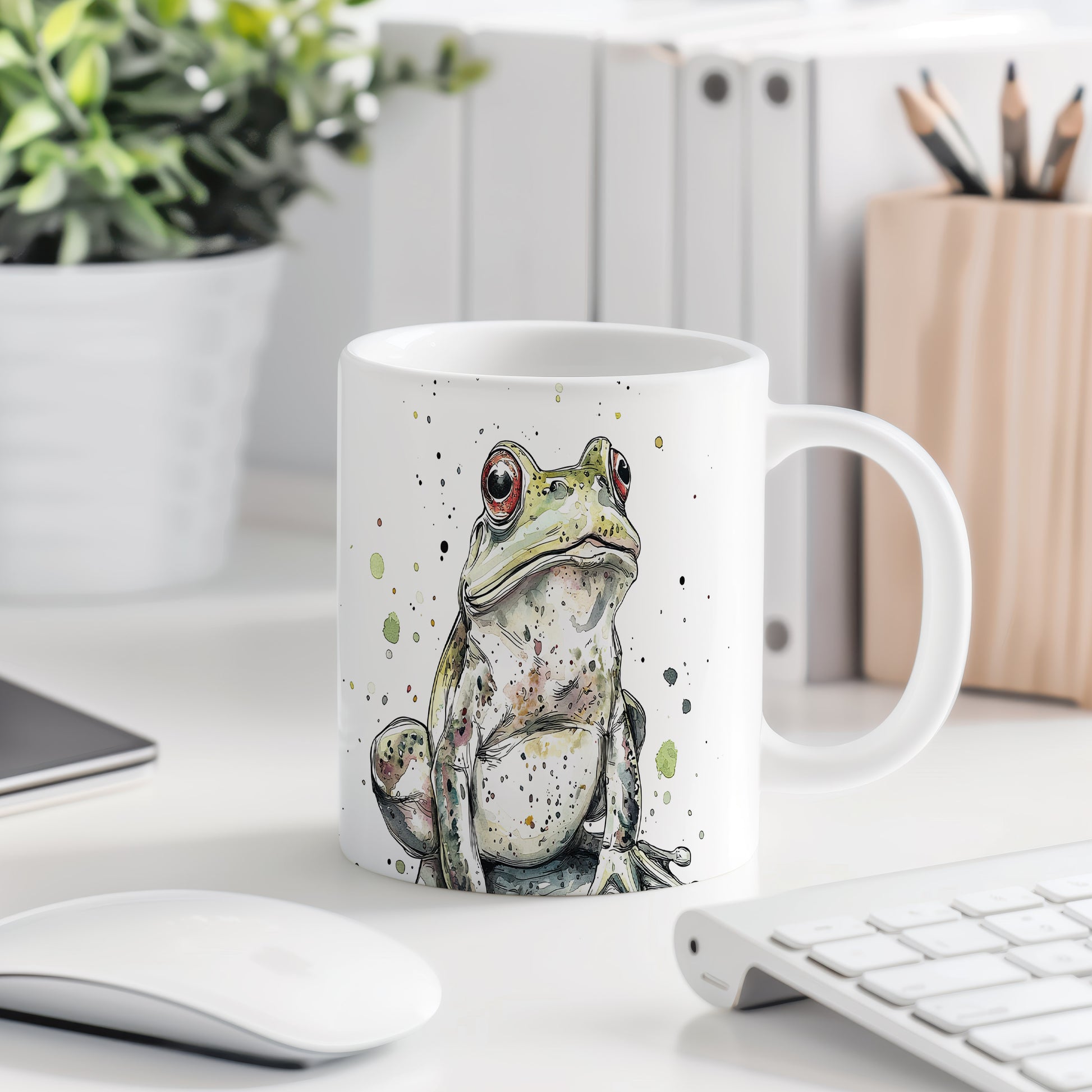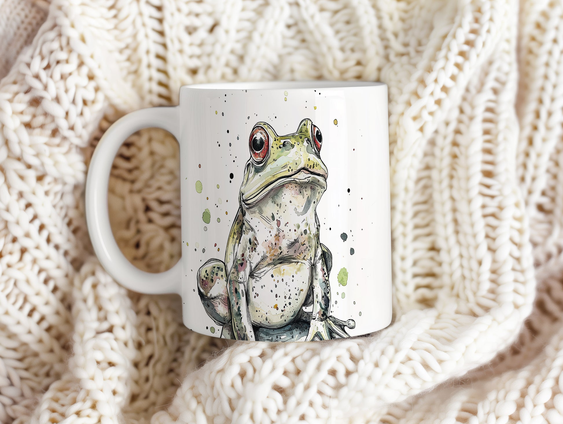 Hrnek s ilustrací žáby se skvrnami