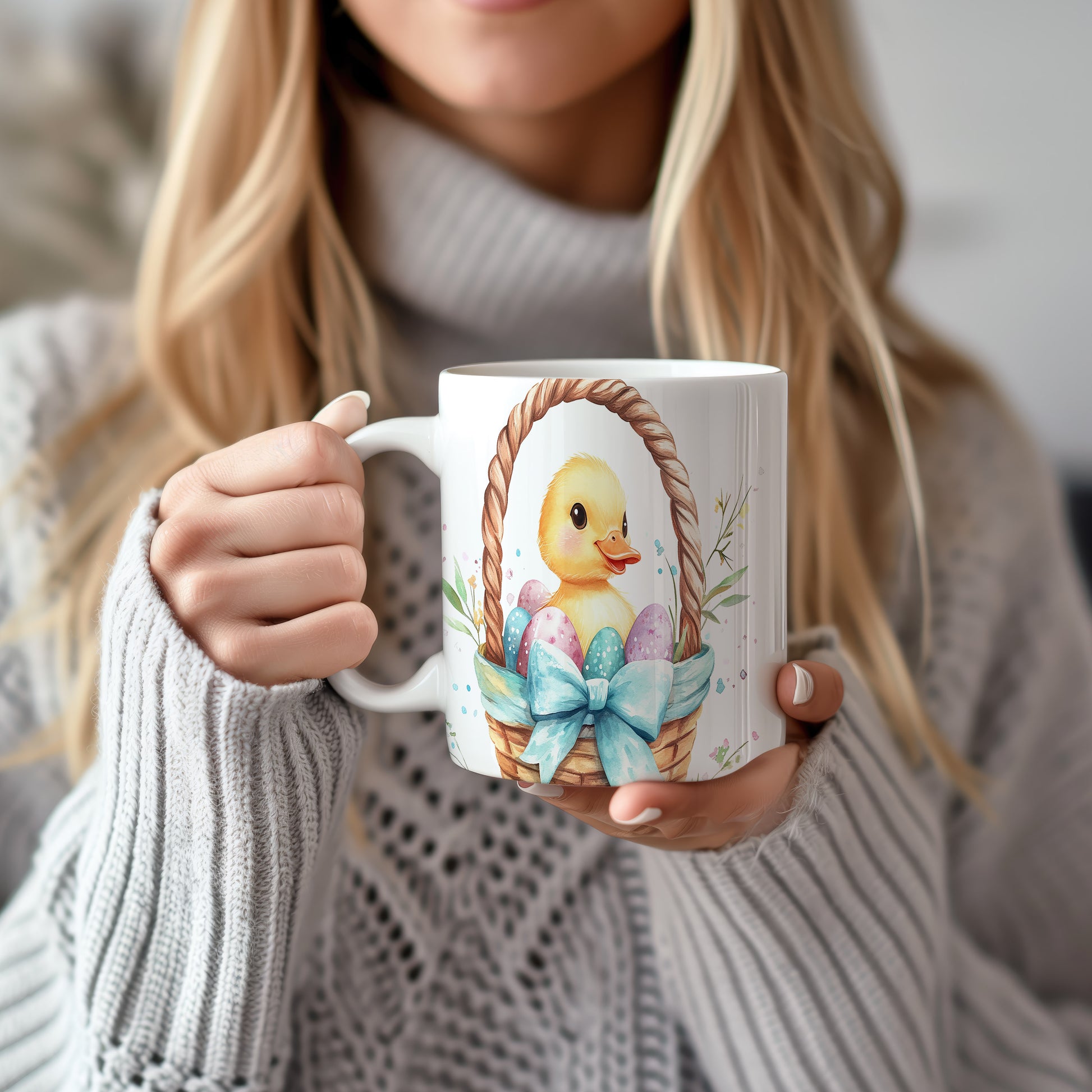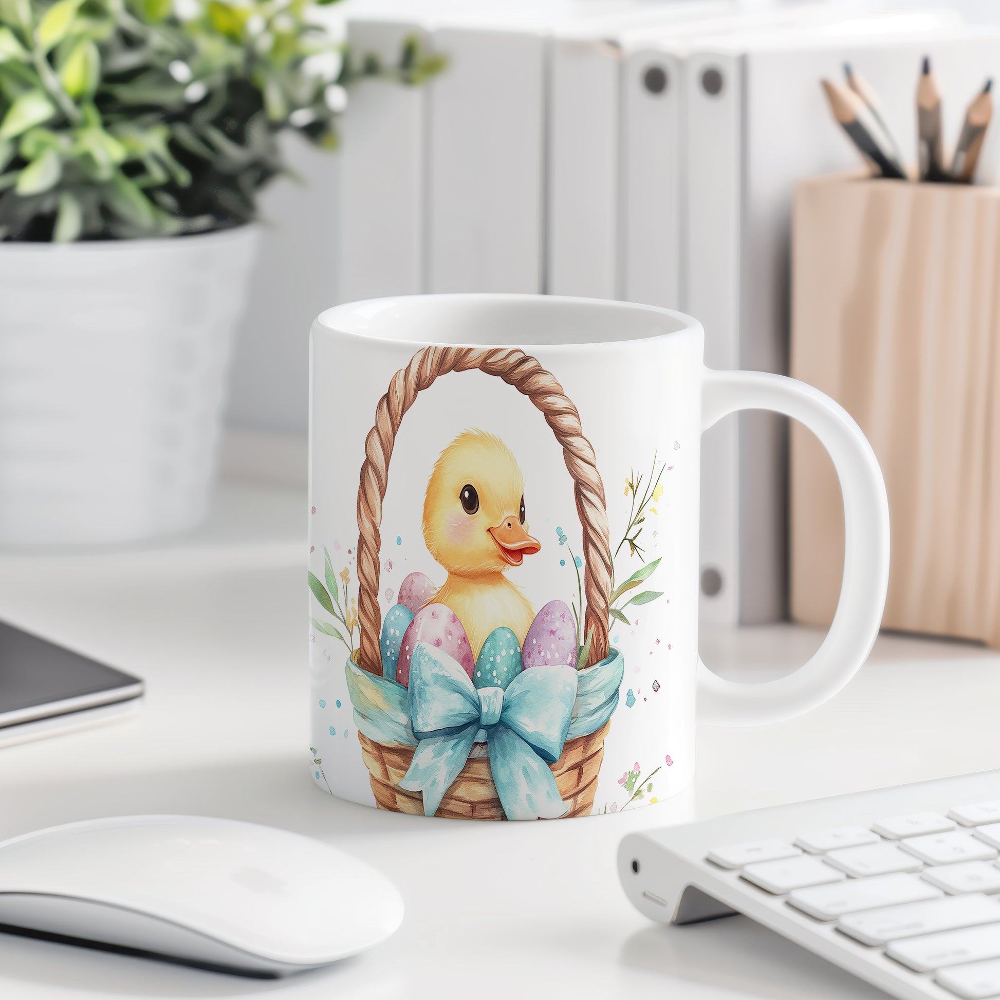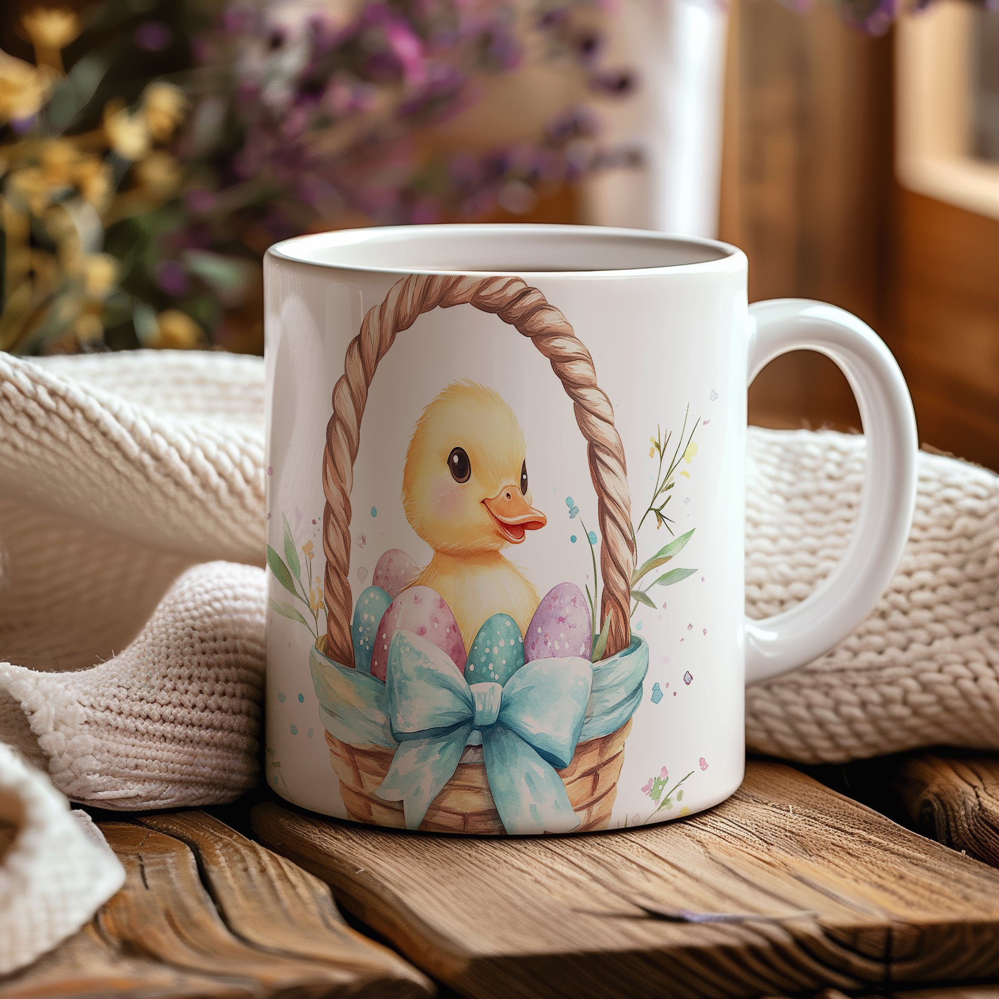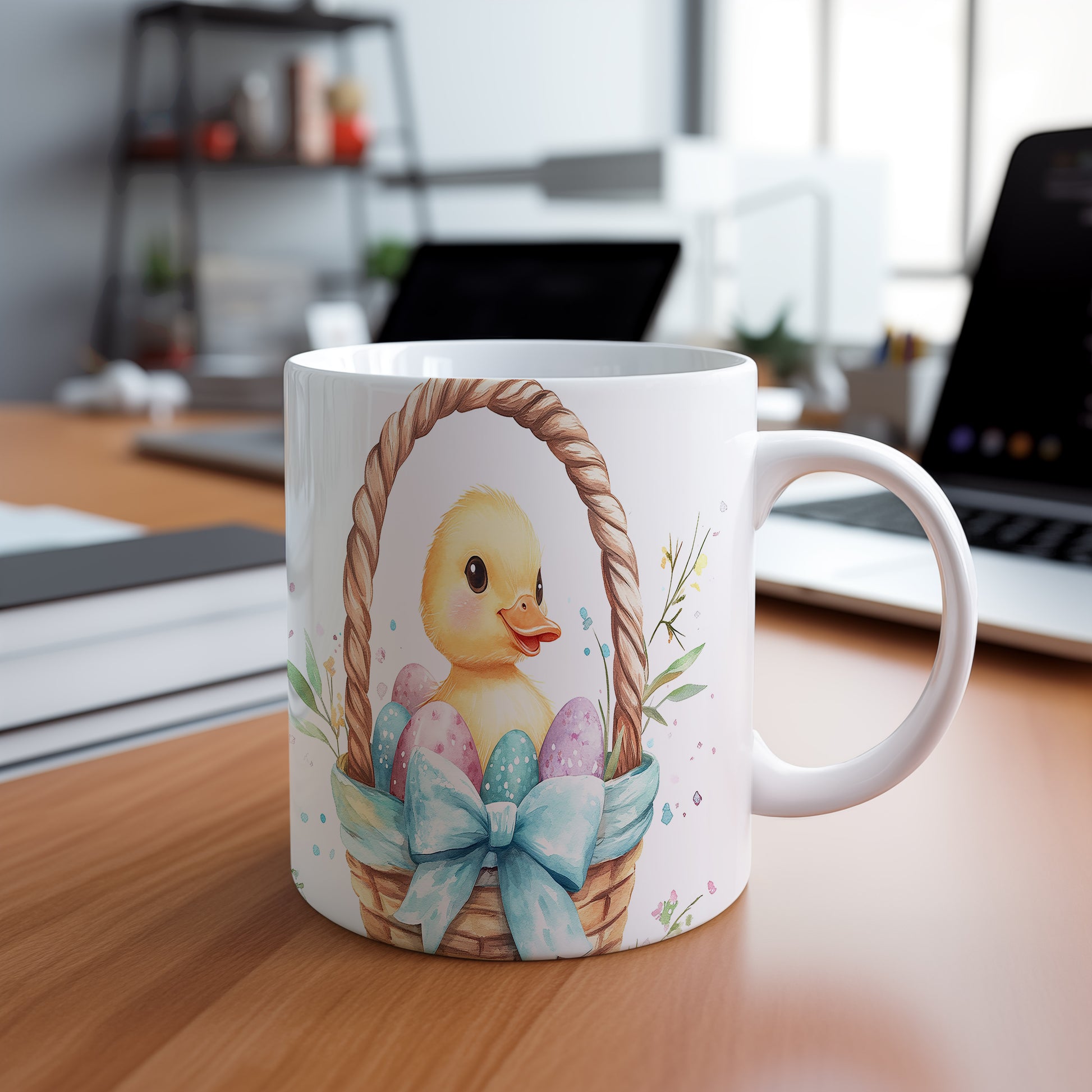 Hrnek s roztomilým kachňátkem a barevnými velikonočními vajíčky je ideální pro jarní atmosféru a oslavy Velikonoc. Skvěle se hodí jako dárek pro děti nebo milovníky jara. Materiál: keramika. Objem: 330 ml. Vhodné do myčky i mikrovlnky. Tento hrnek přináší radost a veselí do každého dne.