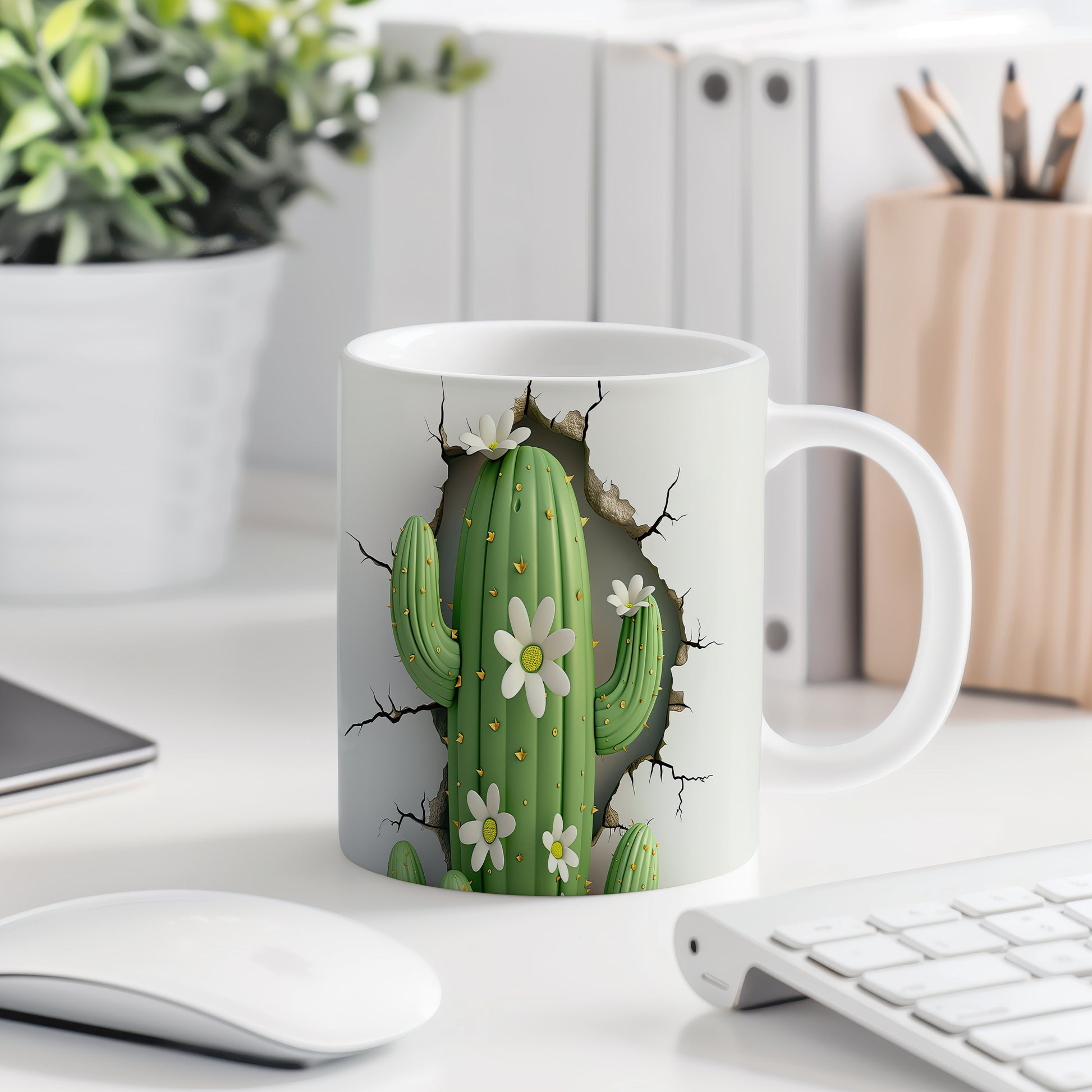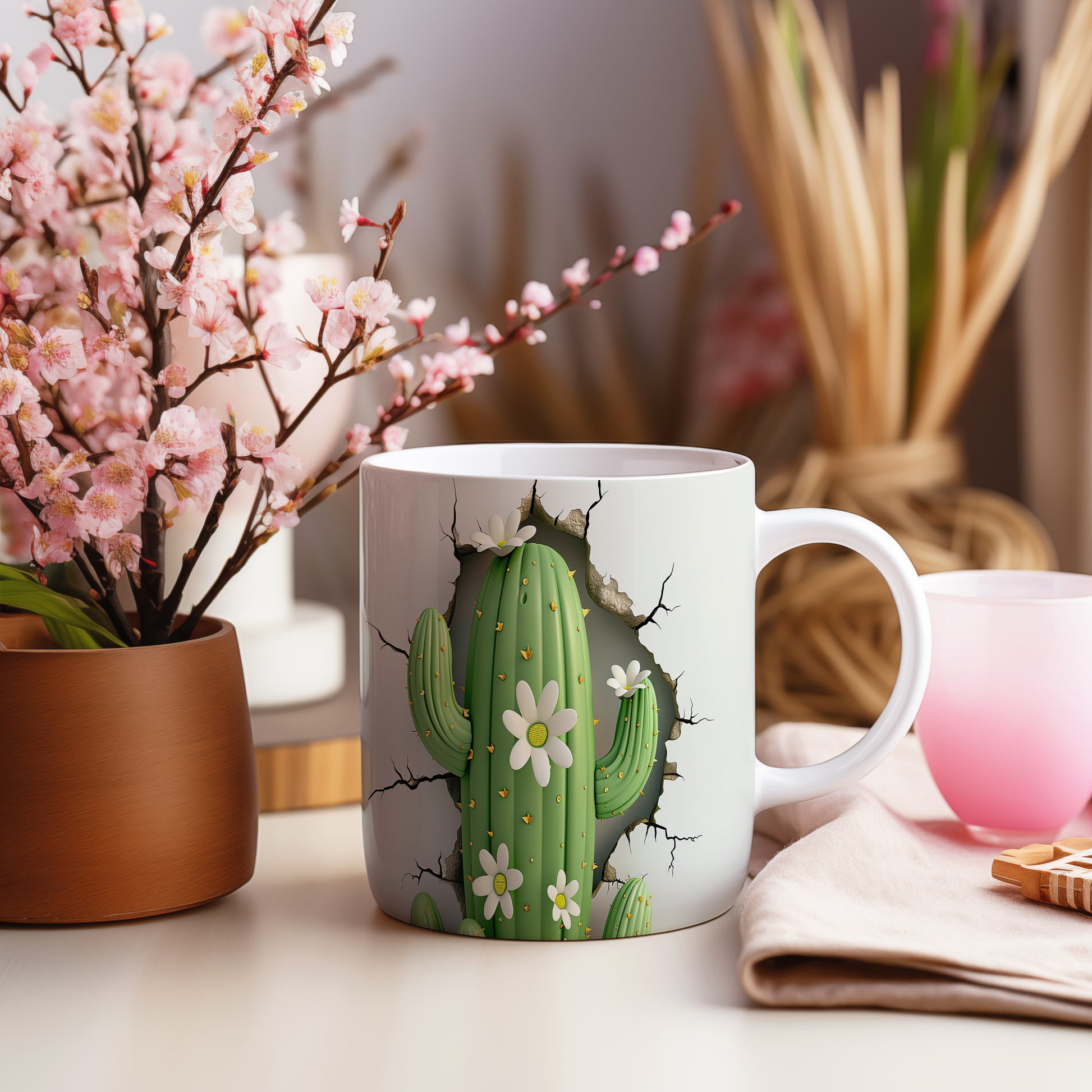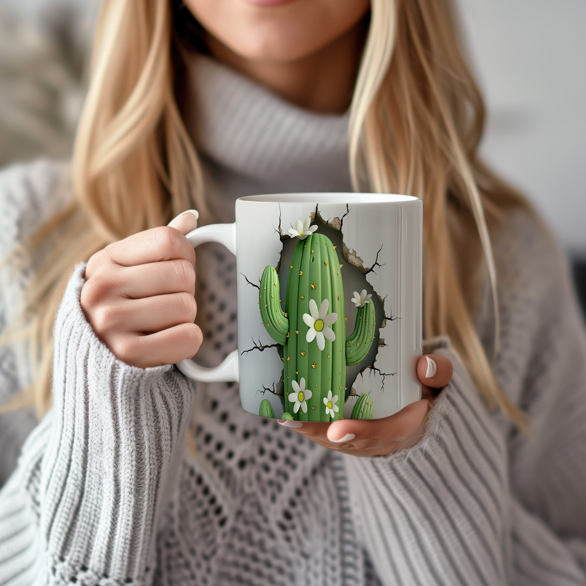 Keramický hrnek s motivem kaktusu a bílých květin, který přináší originální design. Tento hrnek je ideální pro milovníky rostlin a skvělý tip na dárek pro přátele. Materiál: keramika. Objem: 330 ml. Vhodné do myčky i mikrovlnky. Používání tohoto hrnku přidává do každodenního pití špetku stylu.