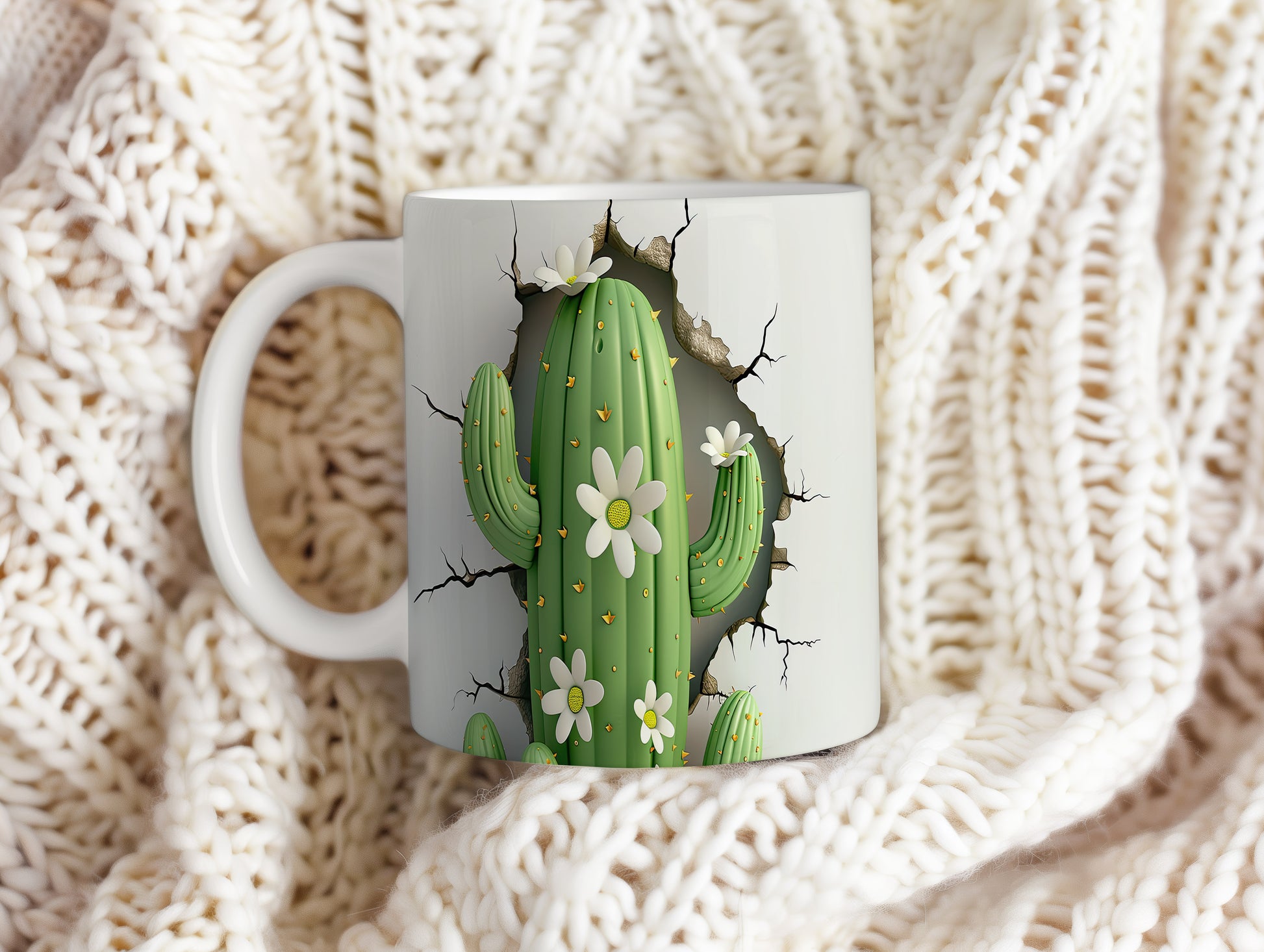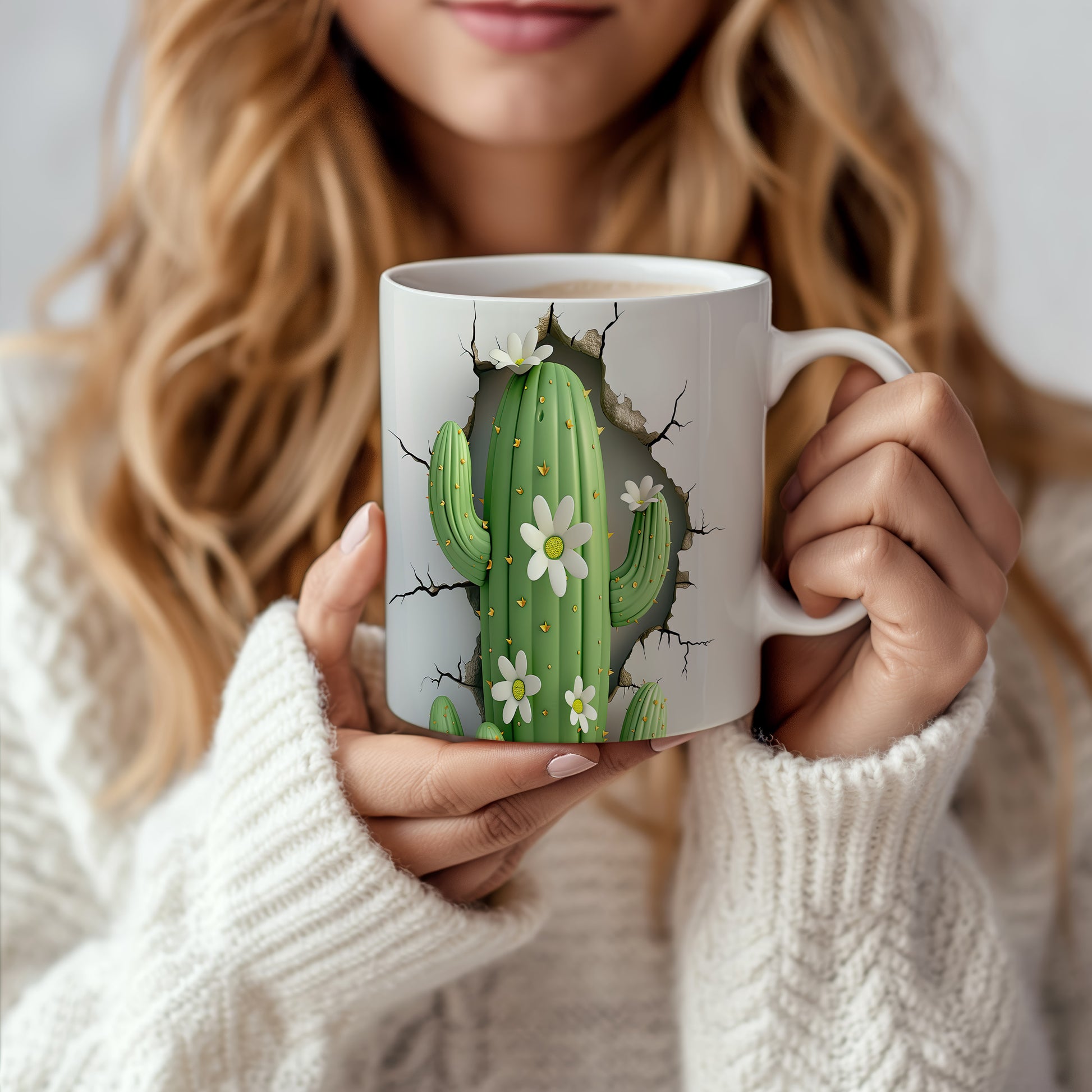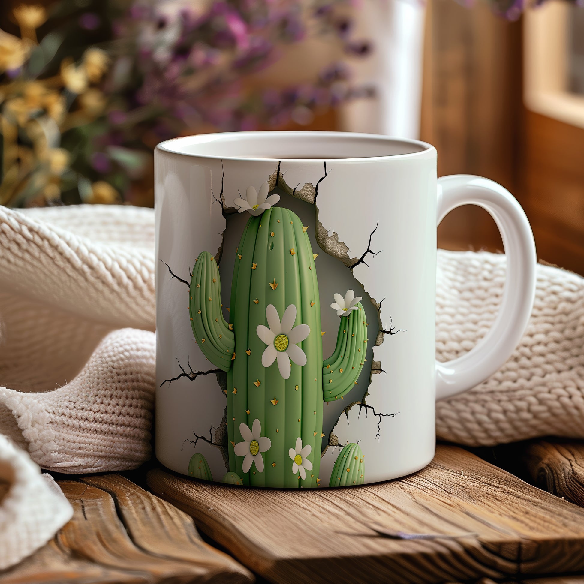 Keramický hrnek s motivem kaktusu a bílých květin, který přináší originální design. Tento hrnek je ideální pro milovníky rostlin a skvělý tip na dárek pro přátele. Materiál: keramika. Objem: 330 ml. Vhodné do myčky i mikrovlnky. Používání tohoto hrnku přidává do každodenního pití špetku stylu.