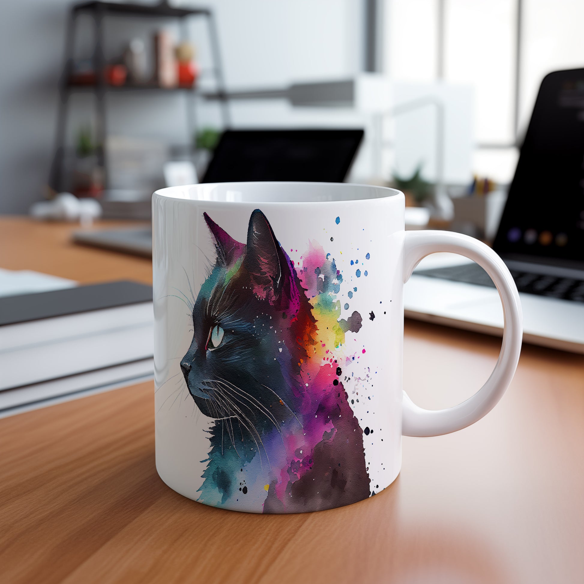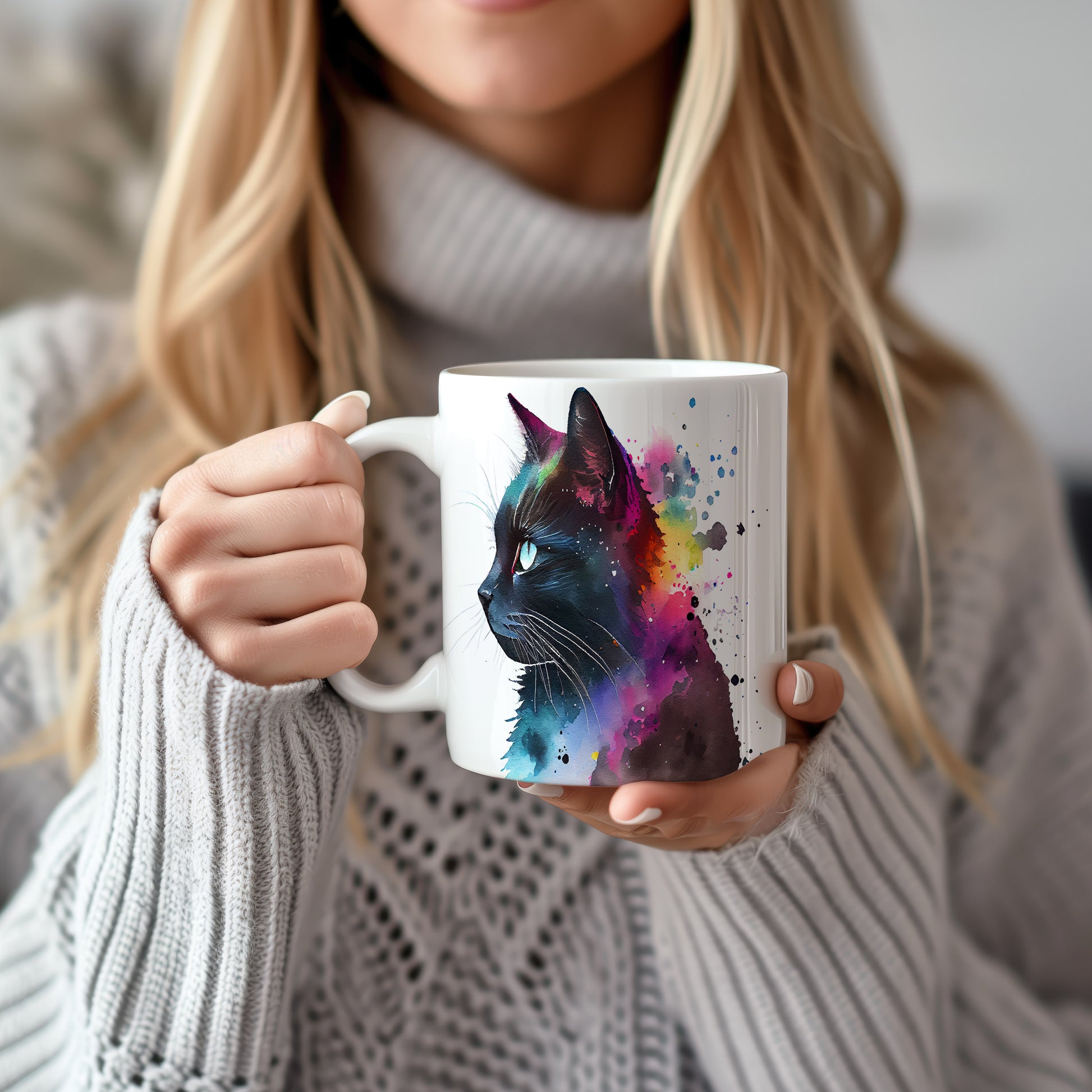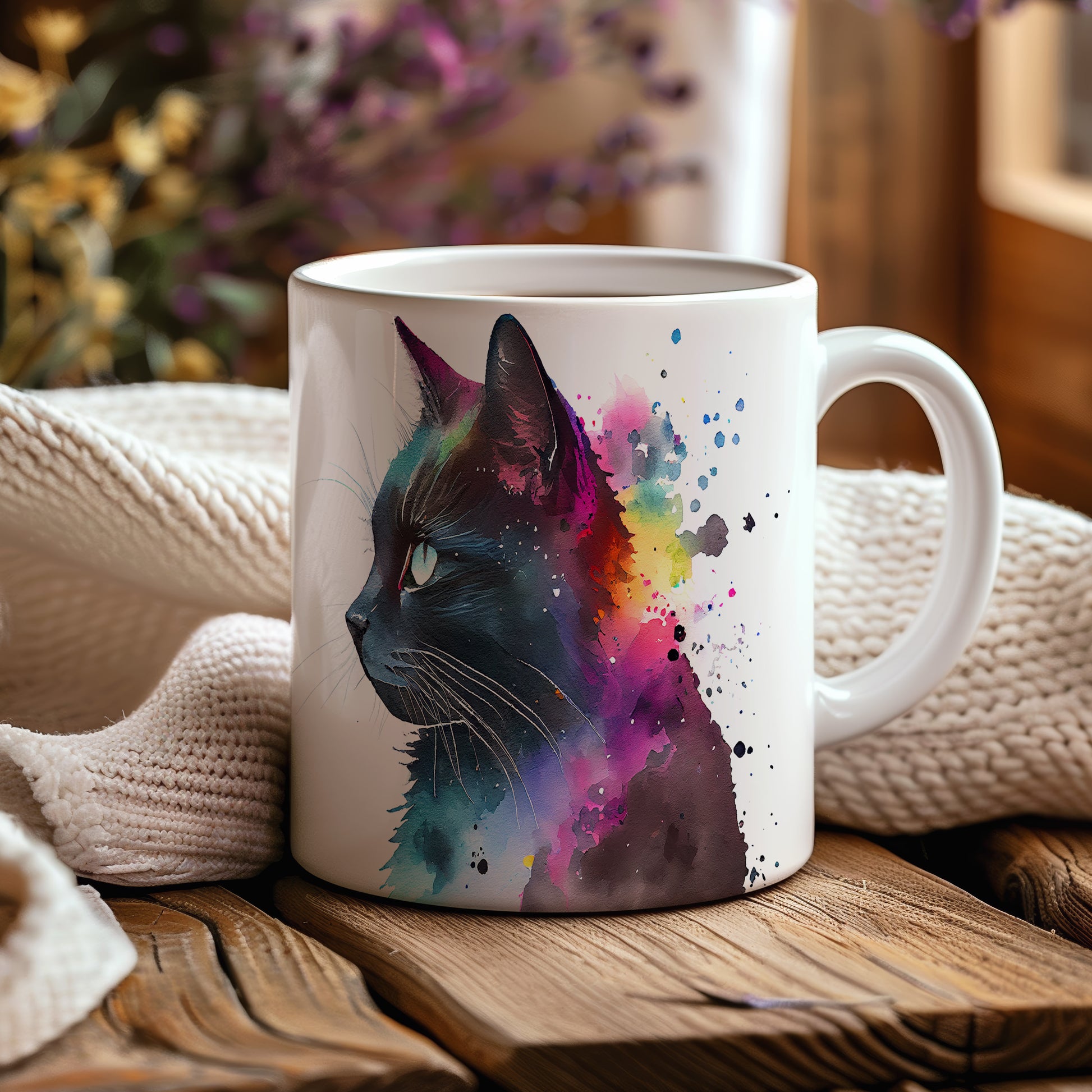 Tento hrnek s portrétem černé kočky a barevným pozadím je skvělým kouskem pro milovníky zvířat a umění. Je ideální jako dárek pro přátele nebo rodinu, kteří ocení originální design. Materiál: keramika. Objem: 330 ml. Vhodné do myčky i mikrovlnky. Používáním tohoto hrnku si užijete nejen kávu nebo čaj, ale také radost z jeho jedinečného vzhledu.
