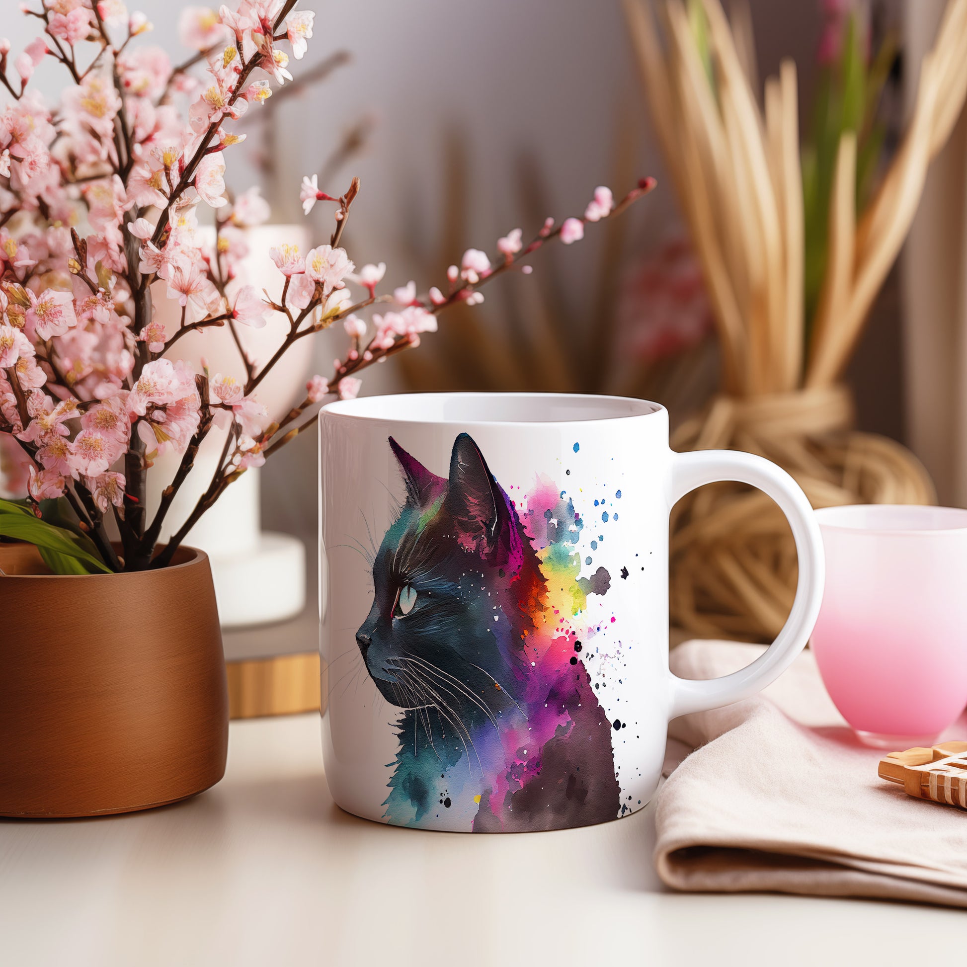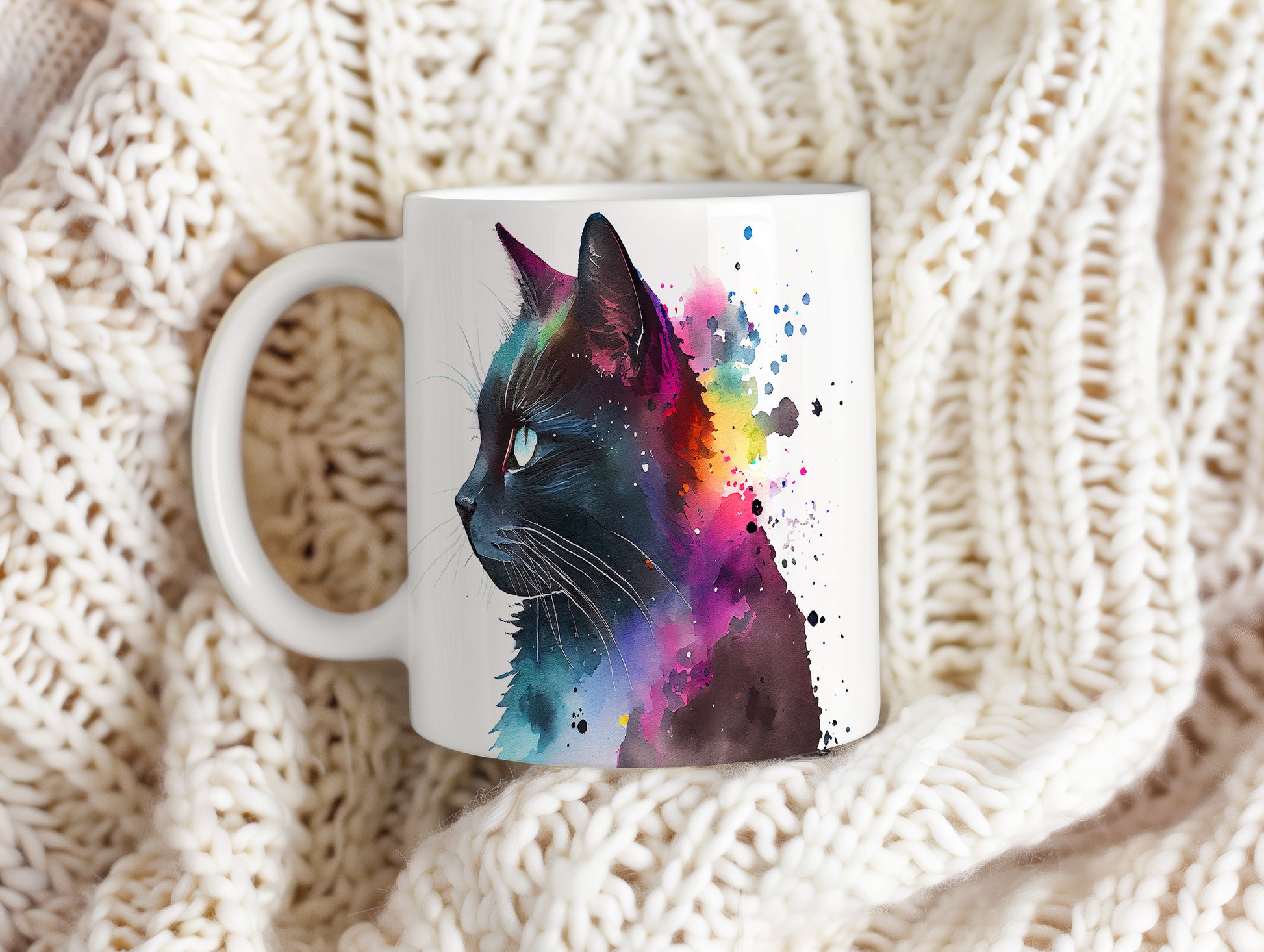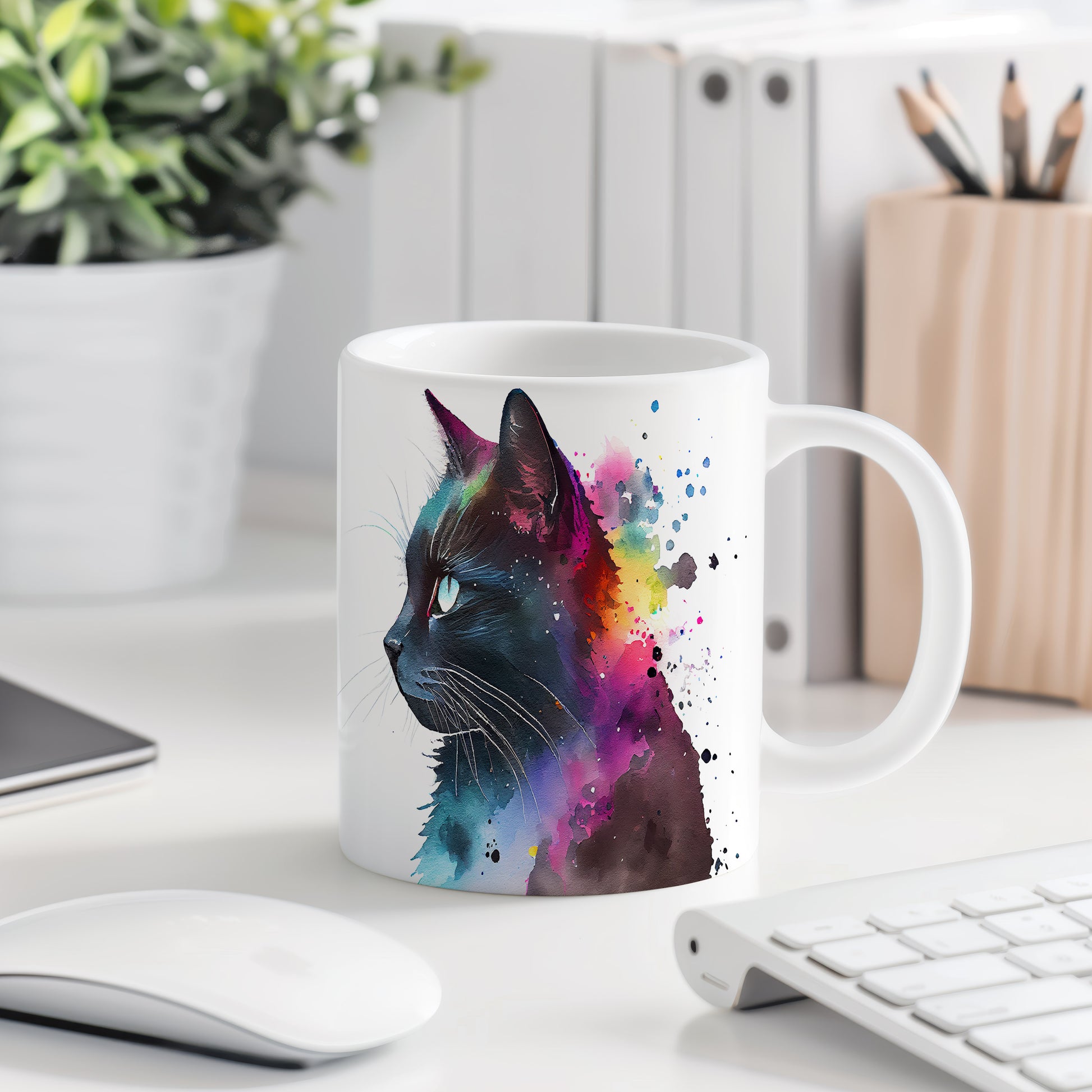 Tento hrnek s portrétem černé kočky a barevným pozadím je skvělým kouskem pro milovníky zvířat a umění. Je ideální jako dárek pro přátele nebo rodinu, kteří ocení originální design. Materiál: keramika. Objem: 330 ml. Vhodné do myčky i mikrovlnky. Používáním tohoto hrnku si užijete nejen kávu nebo čaj, ale také radost z jeho jedinečného vzhledu.