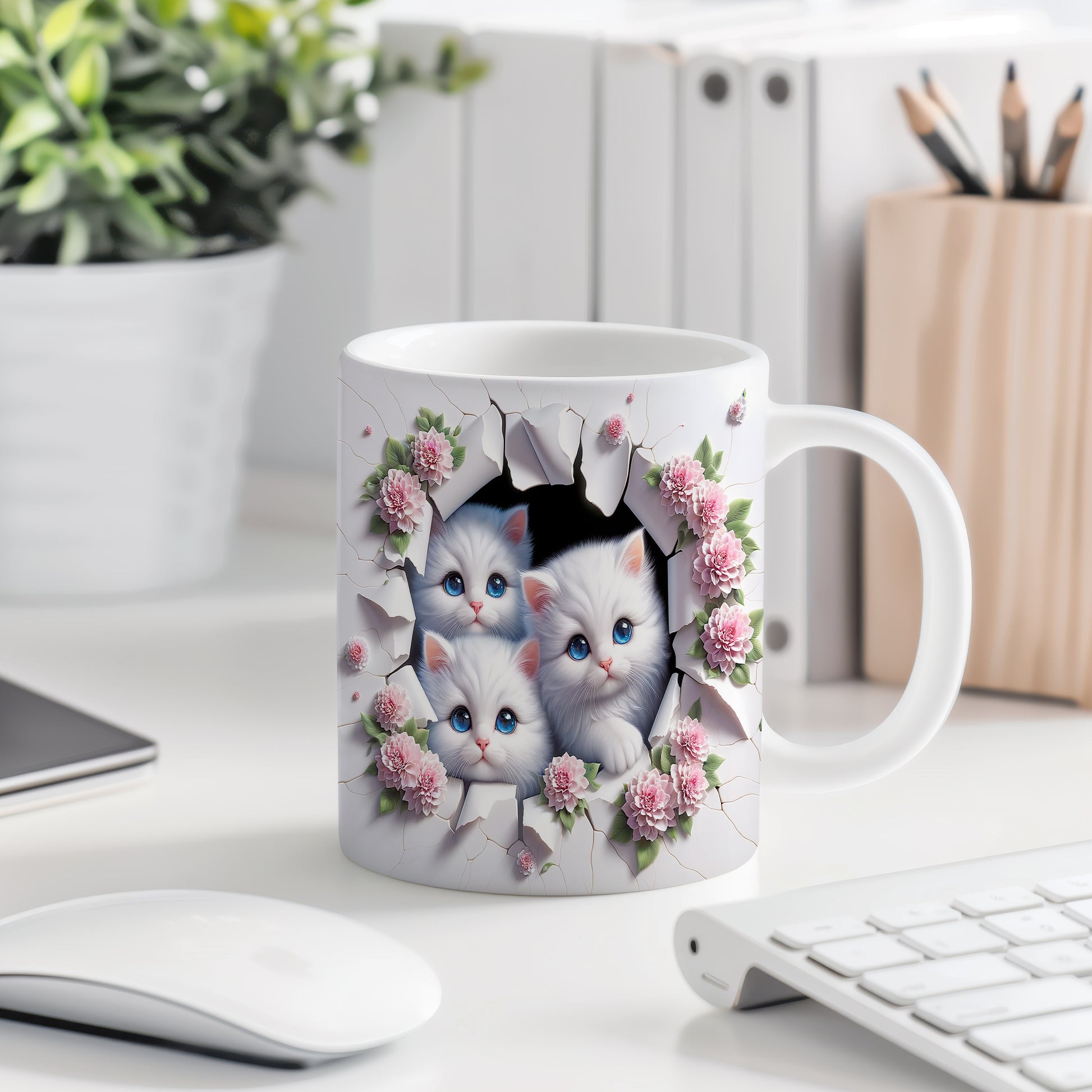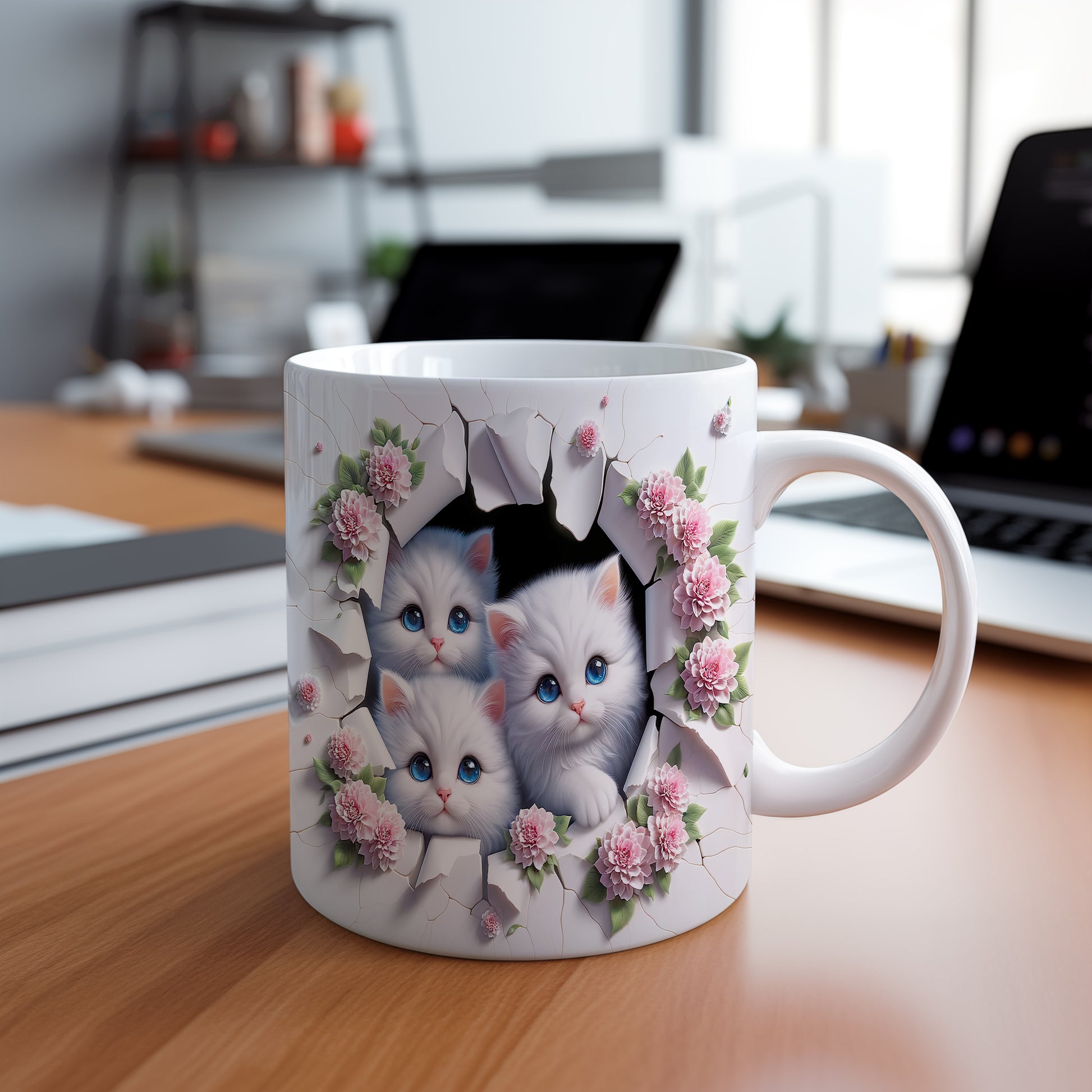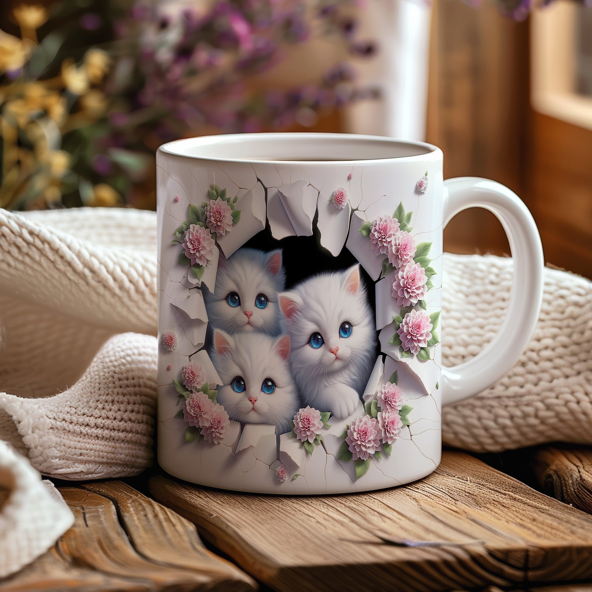 Hrnek s motivem šťastných koček a růžových květů je skvělou volbou pro milovníky těchto roztomilých zvířat. Tento hrnek potěší každého, kdo si rád vychutnává kávu nebo čaj s oblíbeným motivem. Materiál: keramika. Objem: 330 ml. Vhodné do myčky i mikrovlnky. Používáním tohoto hrnku si zpříjemníte každodenní chvíle a přidáte do svého dne kousek radosti.