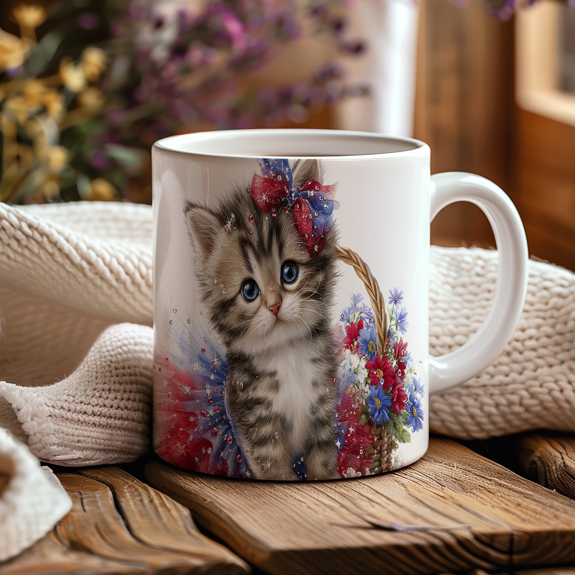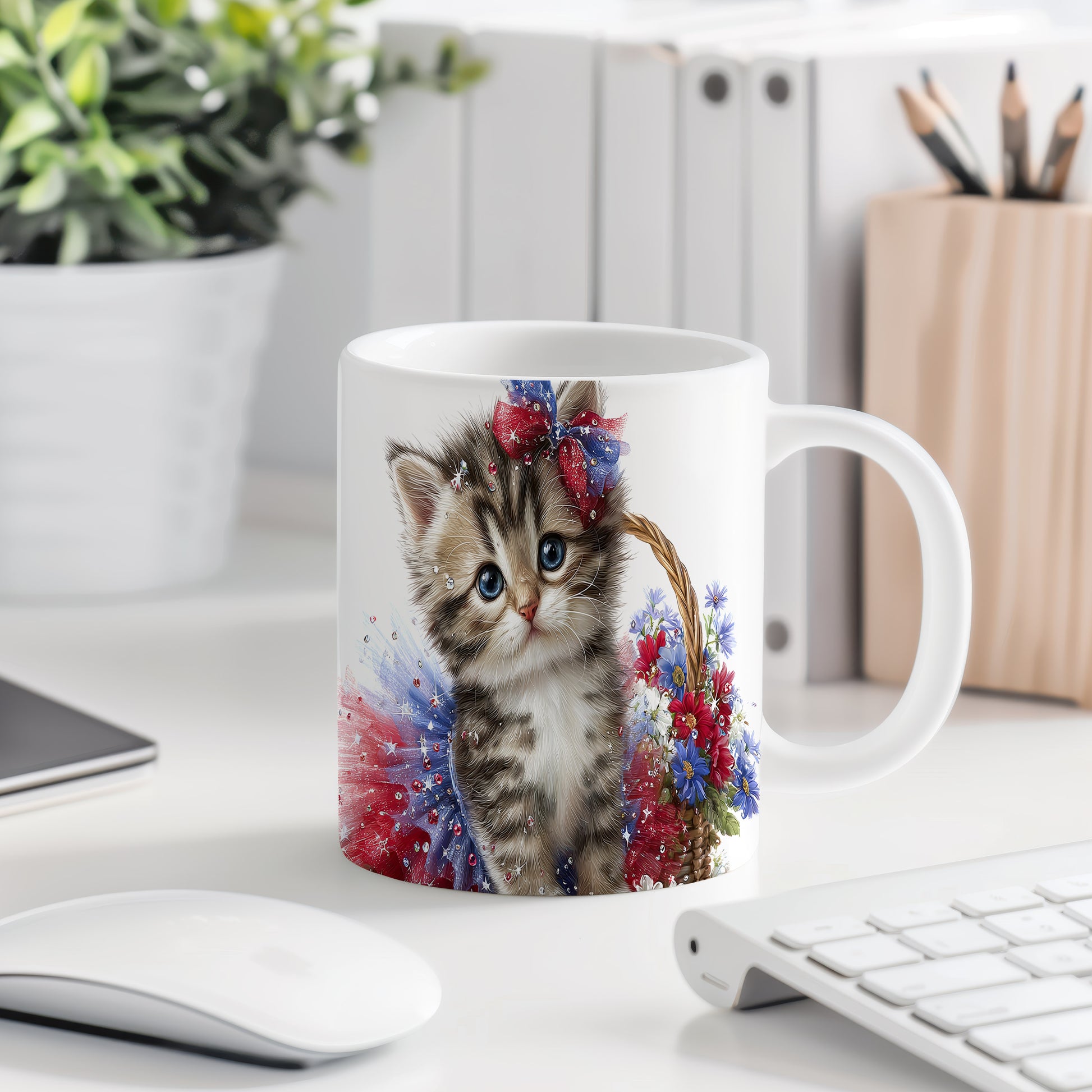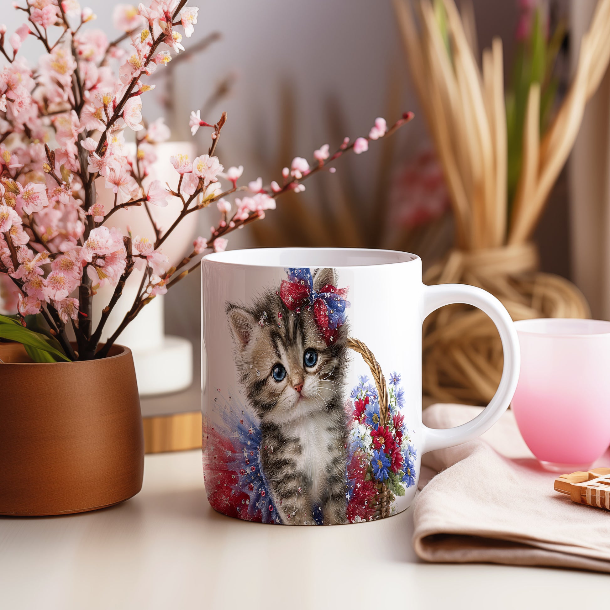 Tento hrnek zdobí motiv roztomilé kočičky s mašlí a květinami. Je ideální pro milovníky koček a skvělým dárkem pro přátele nebo rodinu. Materiál: keramika. Objem: 330 ml. Vhodné do myčky i mikrovlnky. Používání tohoto hrnku přináší radost a útulnost do každého dne.