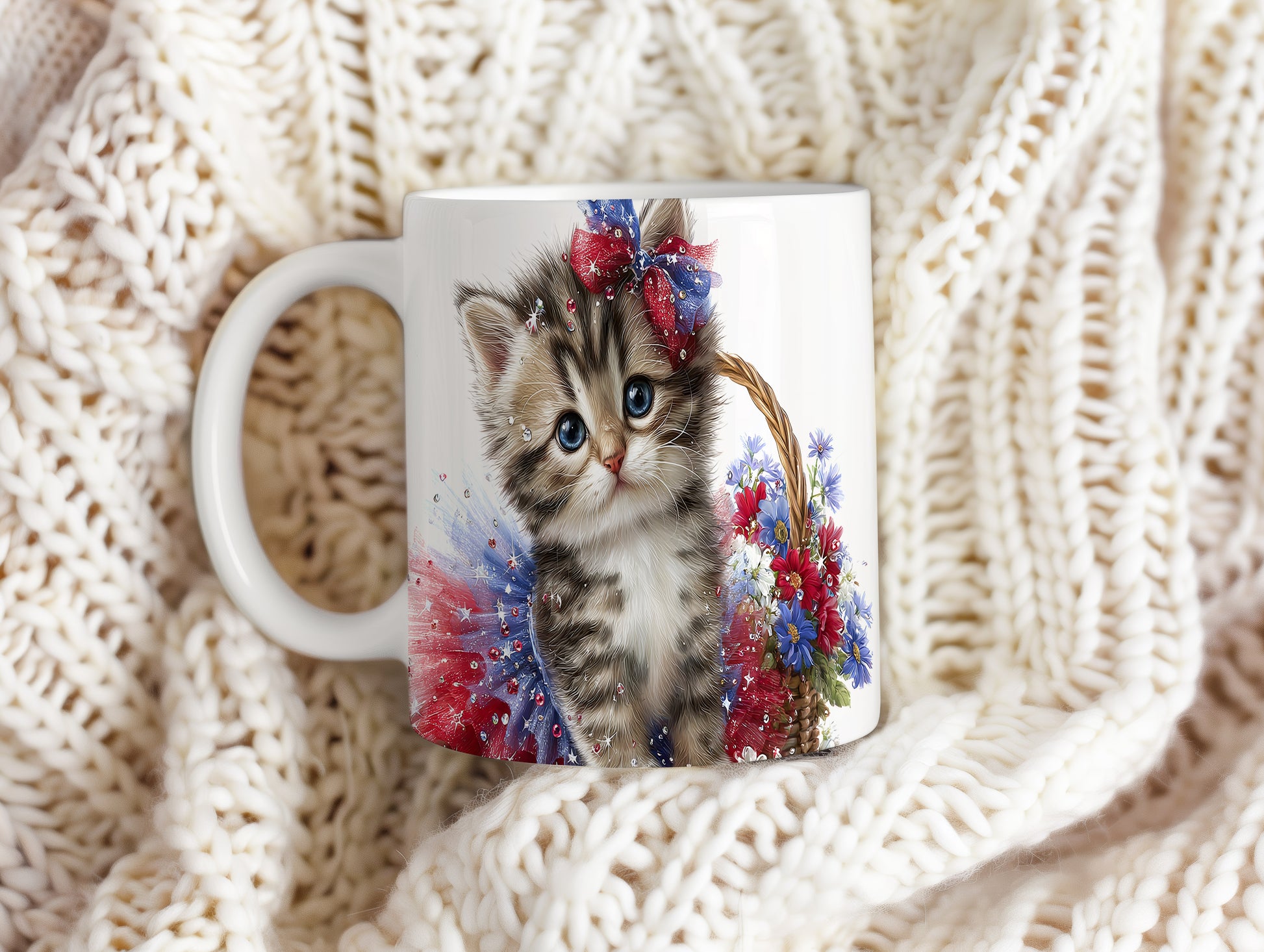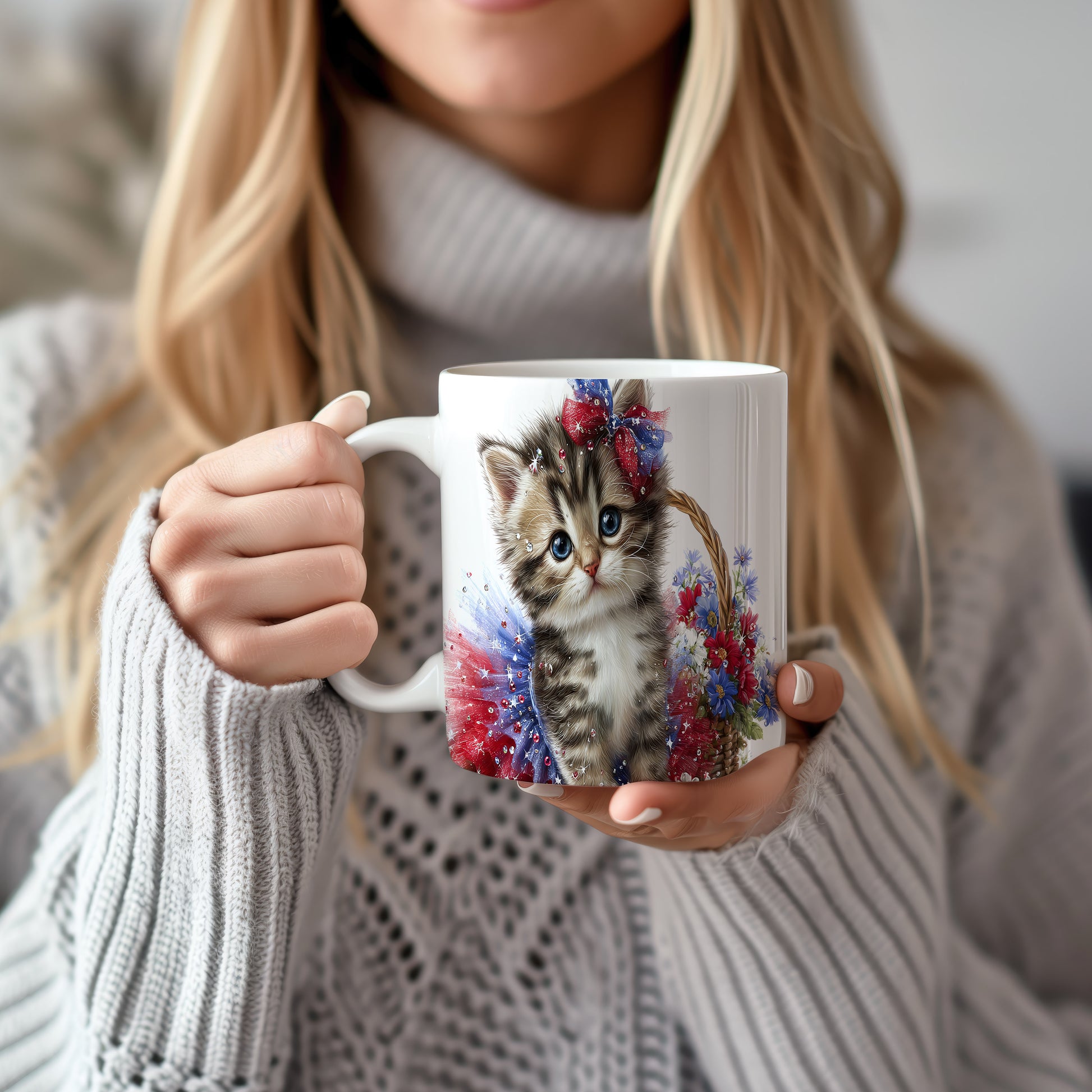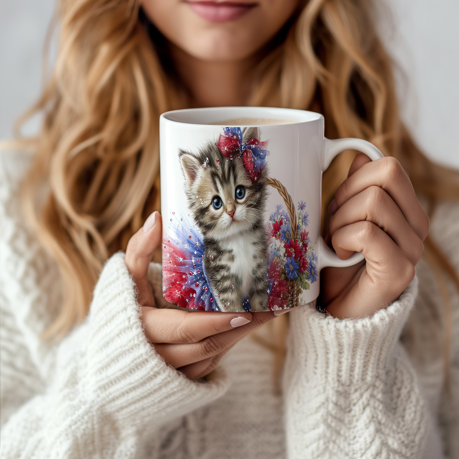 Tento hrnek zdobí motiv roztomilé kočičky s mašlí a květinami. Je ideální pro milovníky koček a skvělým dárkem pro přátele nebo rodinu. Materiál: keramika. Objem: 330 ml. Vhodné do myčky i mikrovlnky. Používání tohoto hrnku přináší radost a útulnost do každého dne.