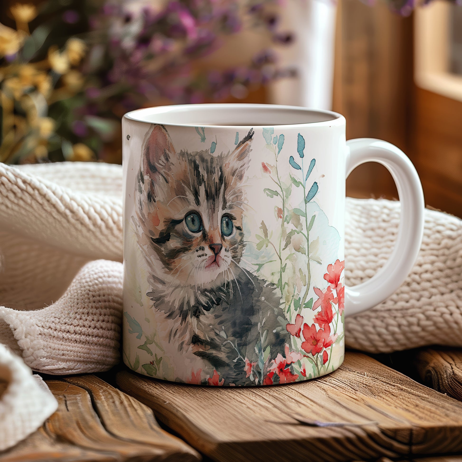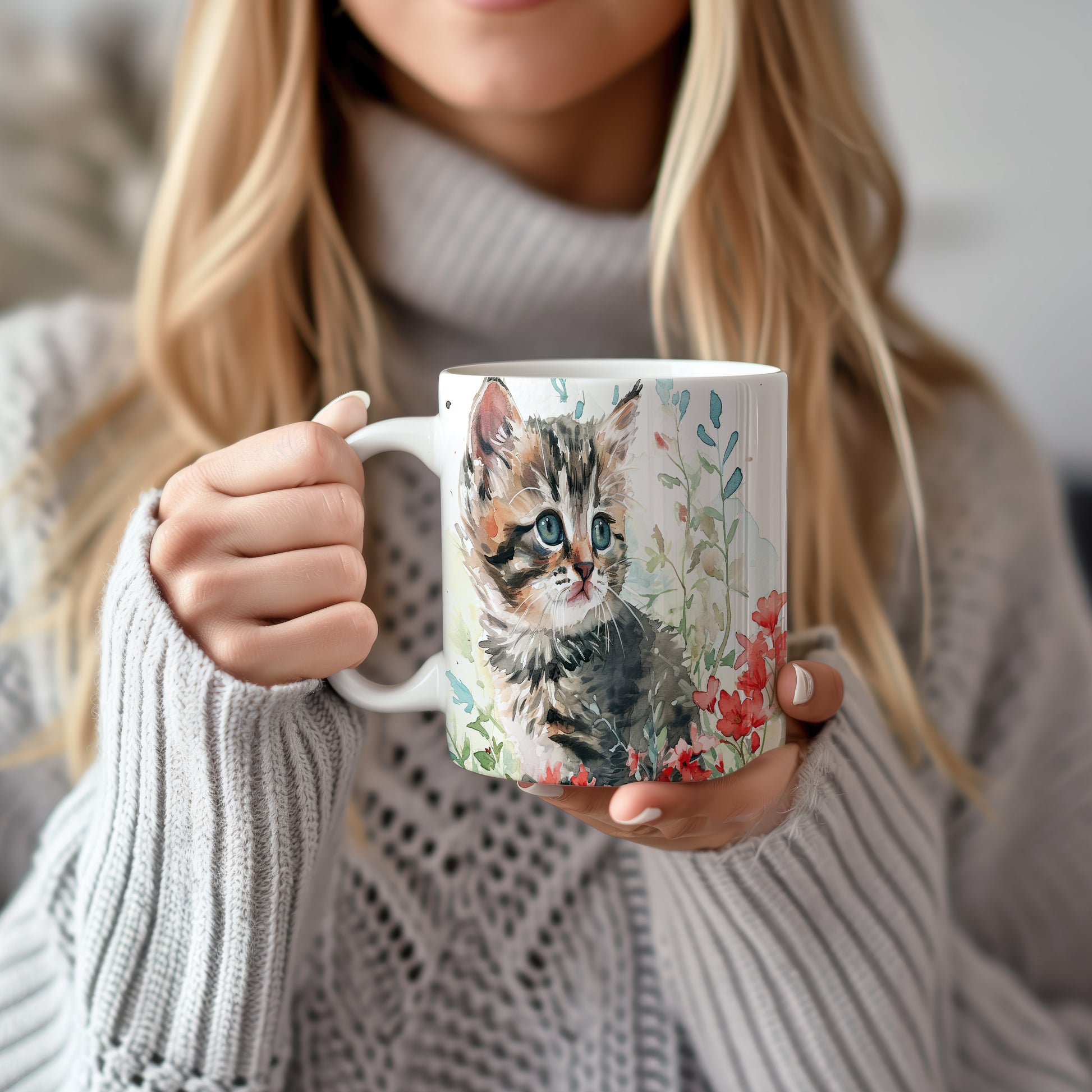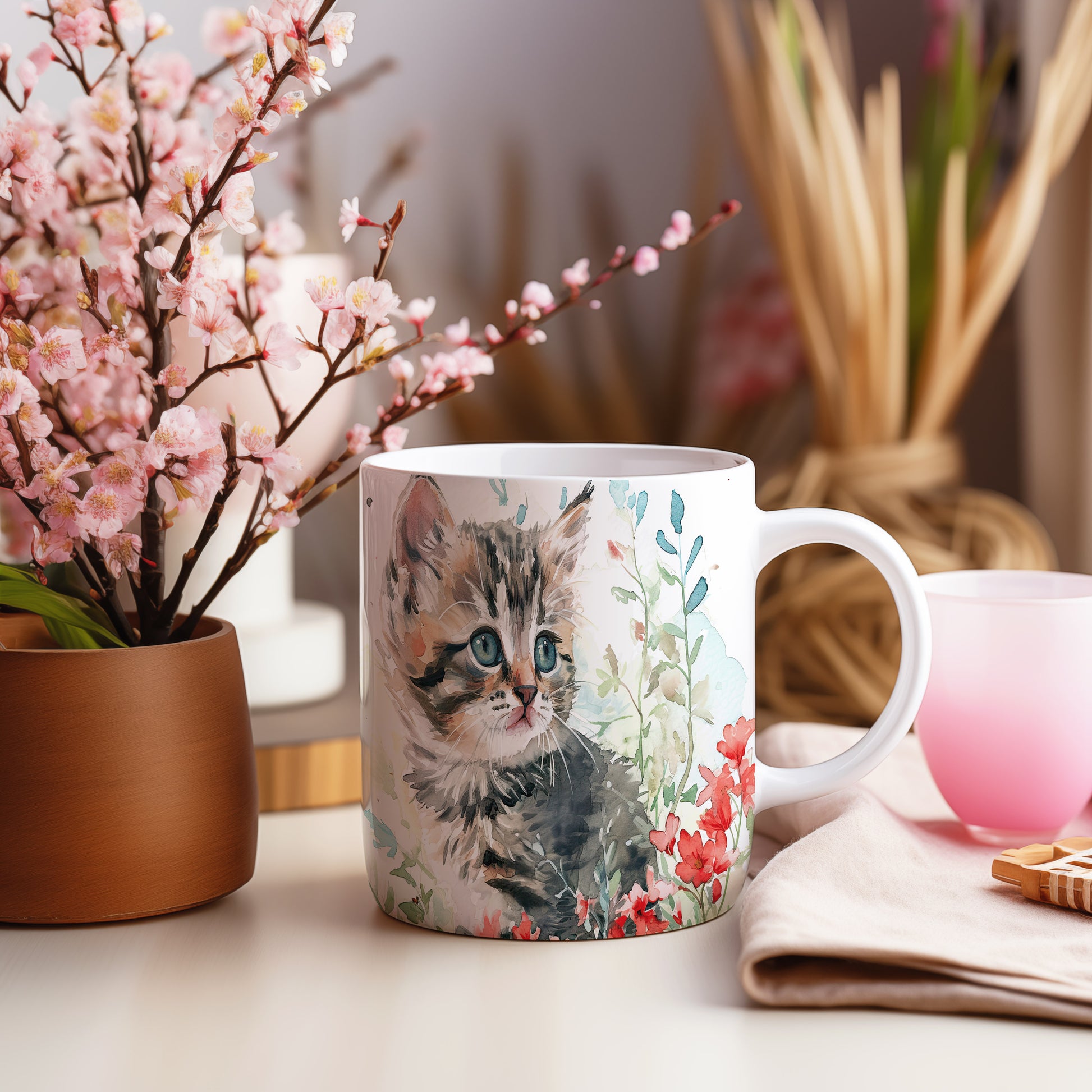 Elegantní hrnek s akvarelovou kočičkou a květinami. Tento hrnek je ideální pro milovníky koček a skvěle se hodí jako dárek pro přátele nebo rodinu. Materiál: keramika. Objem: 330 ml. Vhodné do myčky i mikrovlnky. Používání tohoto hrnku přináší radost z každého doušku vaší oblíbené kávy nebo čaje.