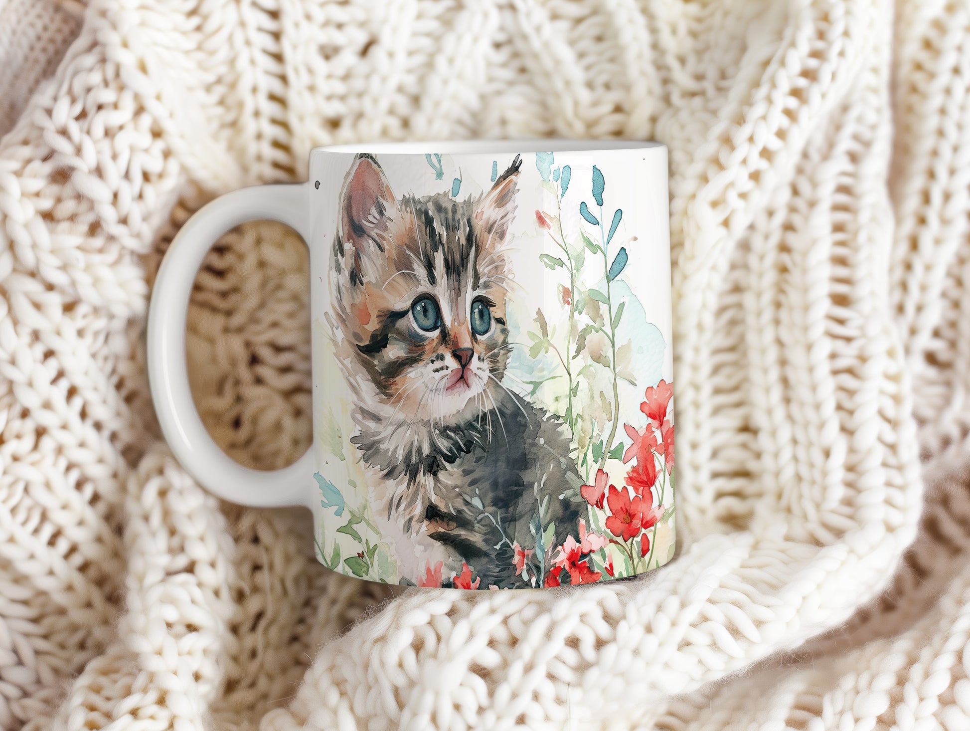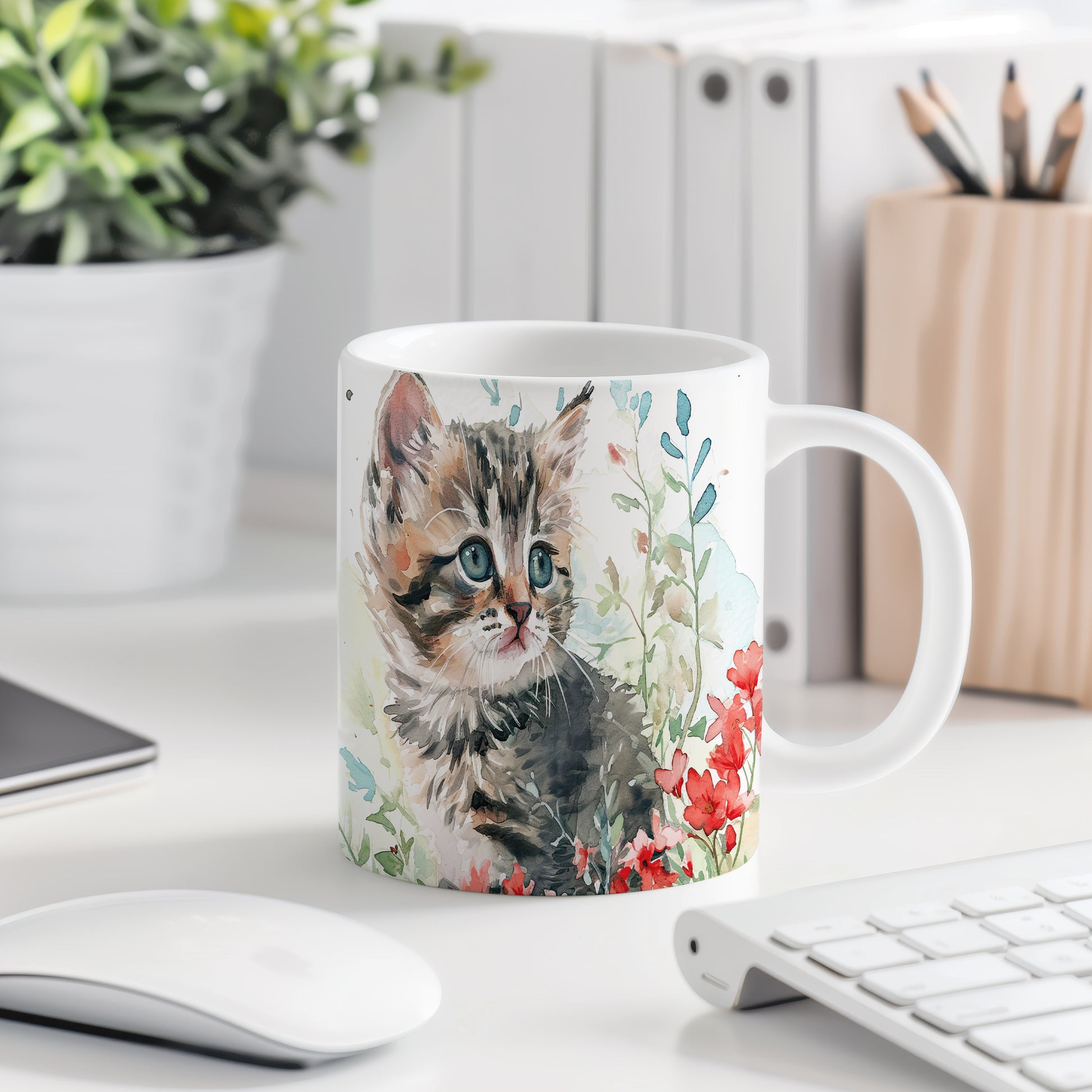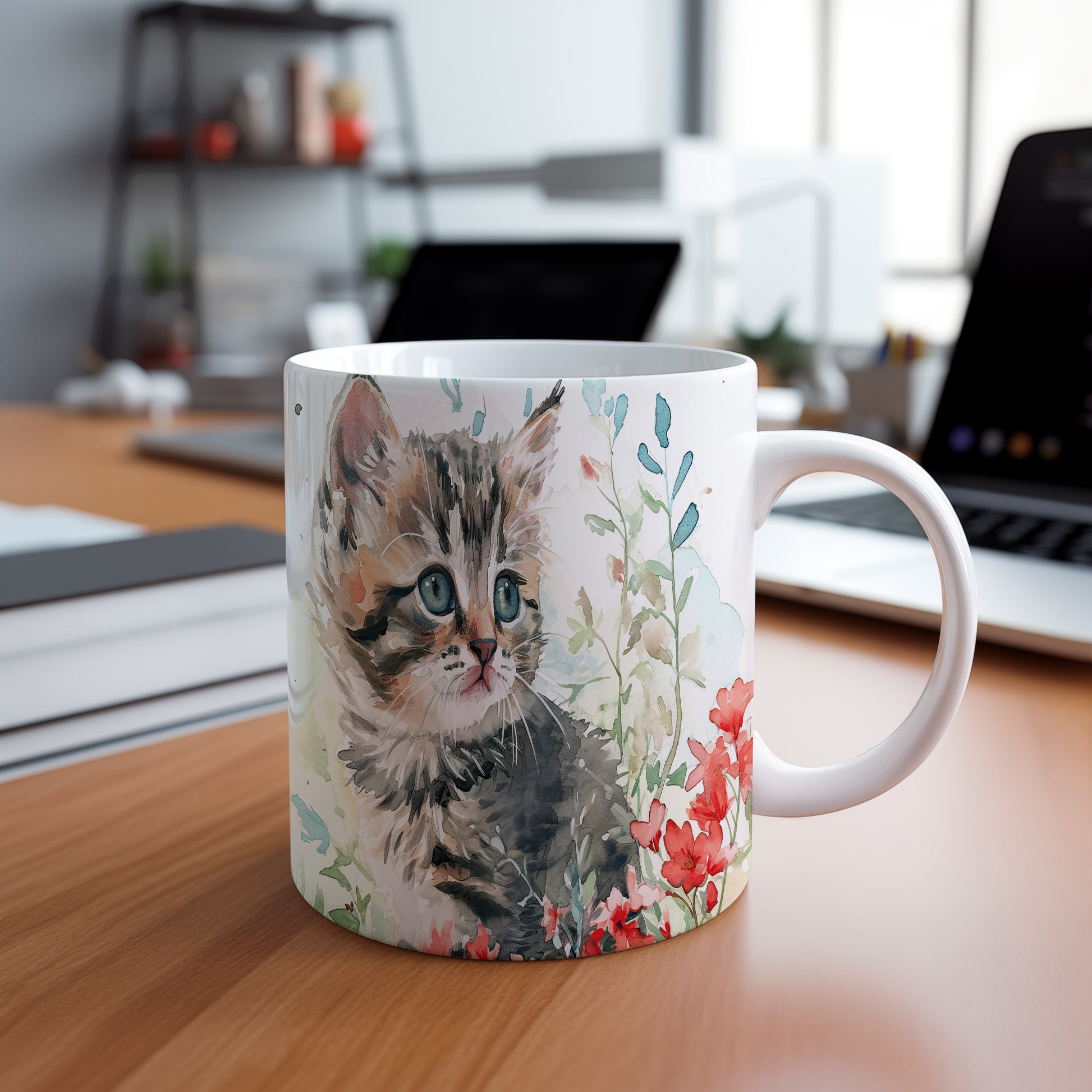 Elegantní hrnek s akvarelovou kočičkou a květinami. Tento hrnek je ideální pro milovníky koček a skvěle se hodí jako dárek pro přátele nebo rodinu. Materiál: keramika. Objem: 330 ml. Vhodné do myčky i mikrovlnky. Používání tohoto hrnku přináší radost z každého doušku vaší oblíbené kávy nebo čaje.