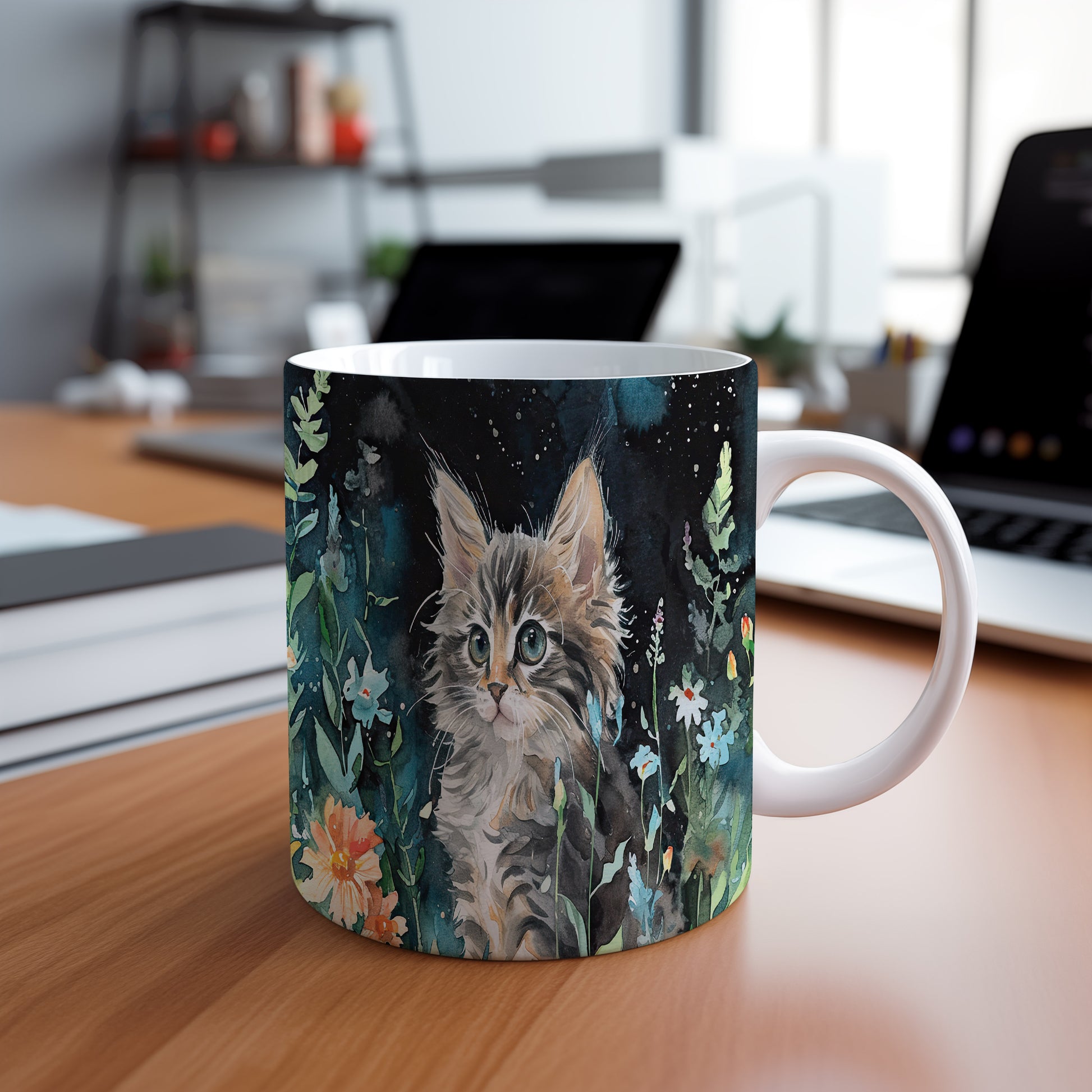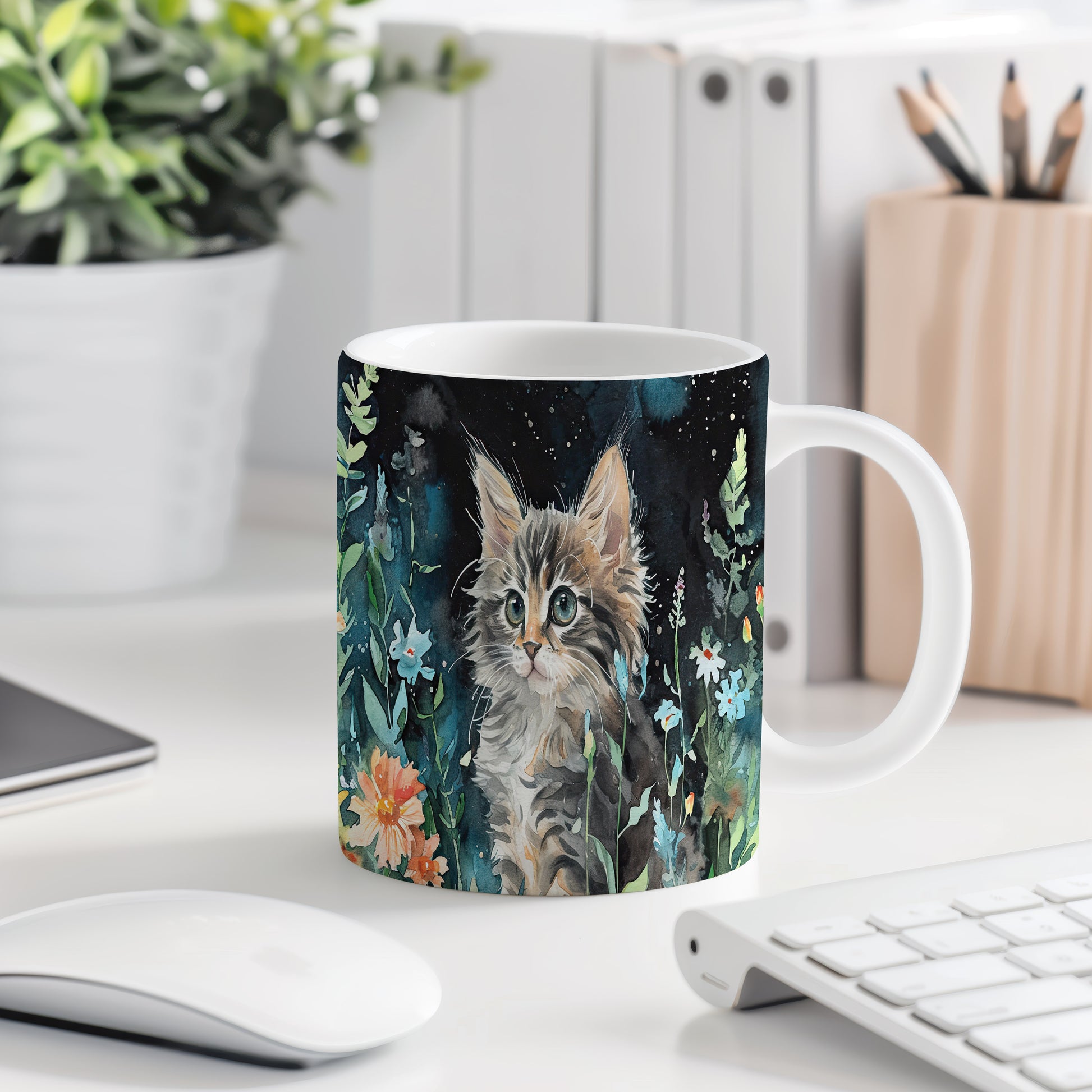 Hrnek s kočičkou v lučním motivu je krásným a hravým kouskem pro všechny milovníky zvířat. Tento keramický hrnek je ideální jako dárek pro přátele nebo rodinu, kteří mají rádi kočky. Materiál: keramika. Objem: 330 ml. Vhodné do myčky i mikrovlnky. Užijte si svůj oblíbený nápoj s tímto stylovým hrnkem, který přináší radost do každého dne.