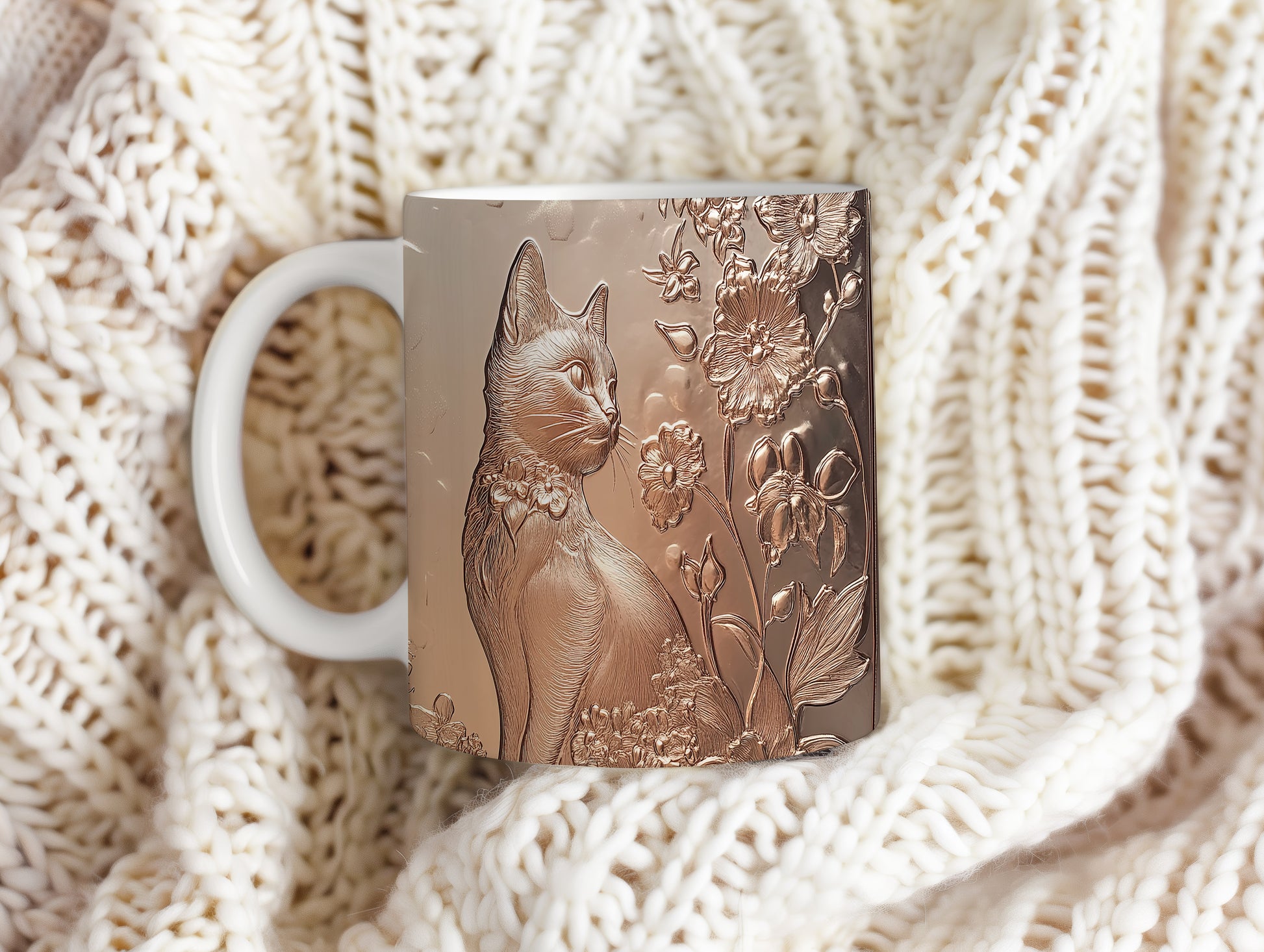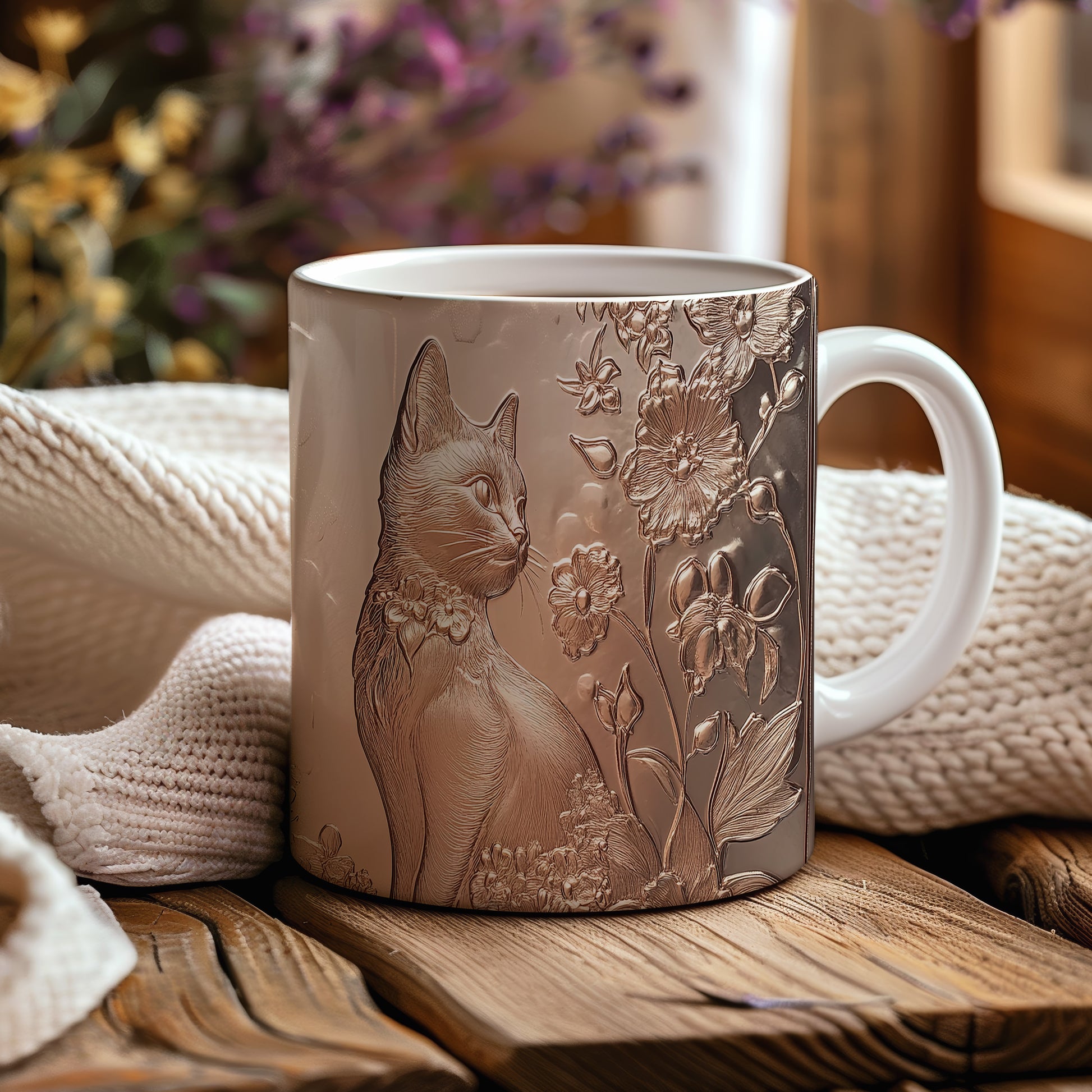 Hrnek s kočkou a květinami