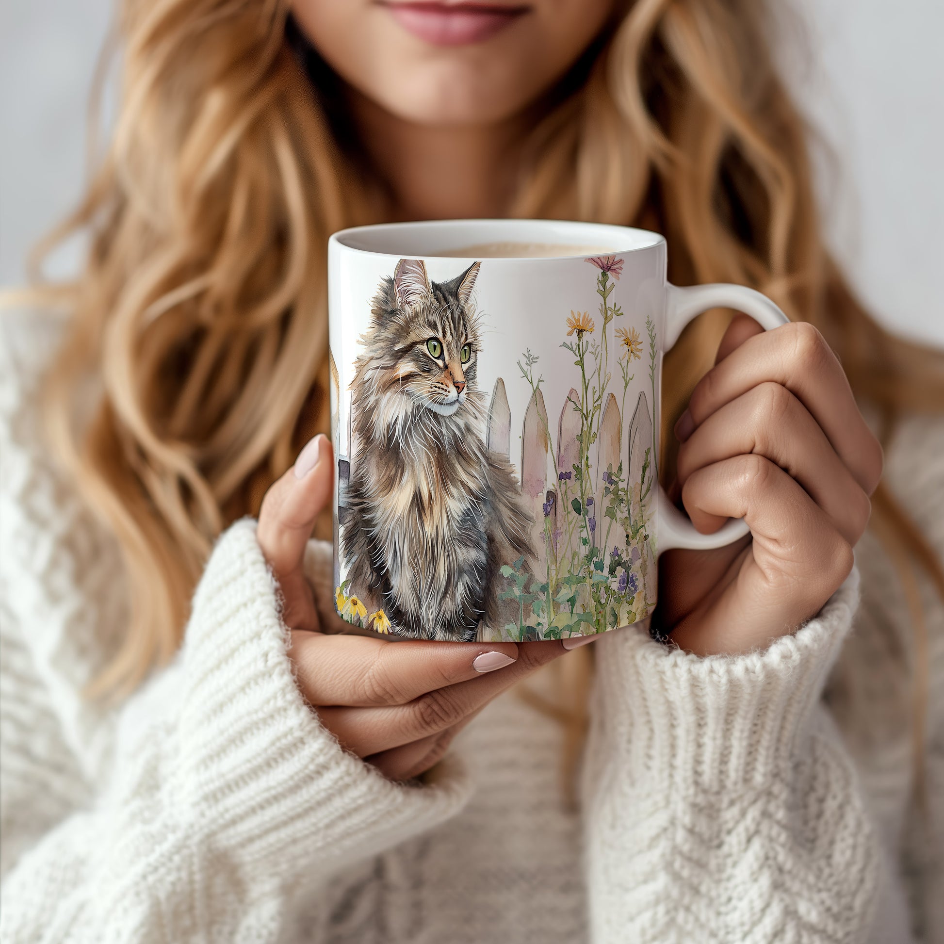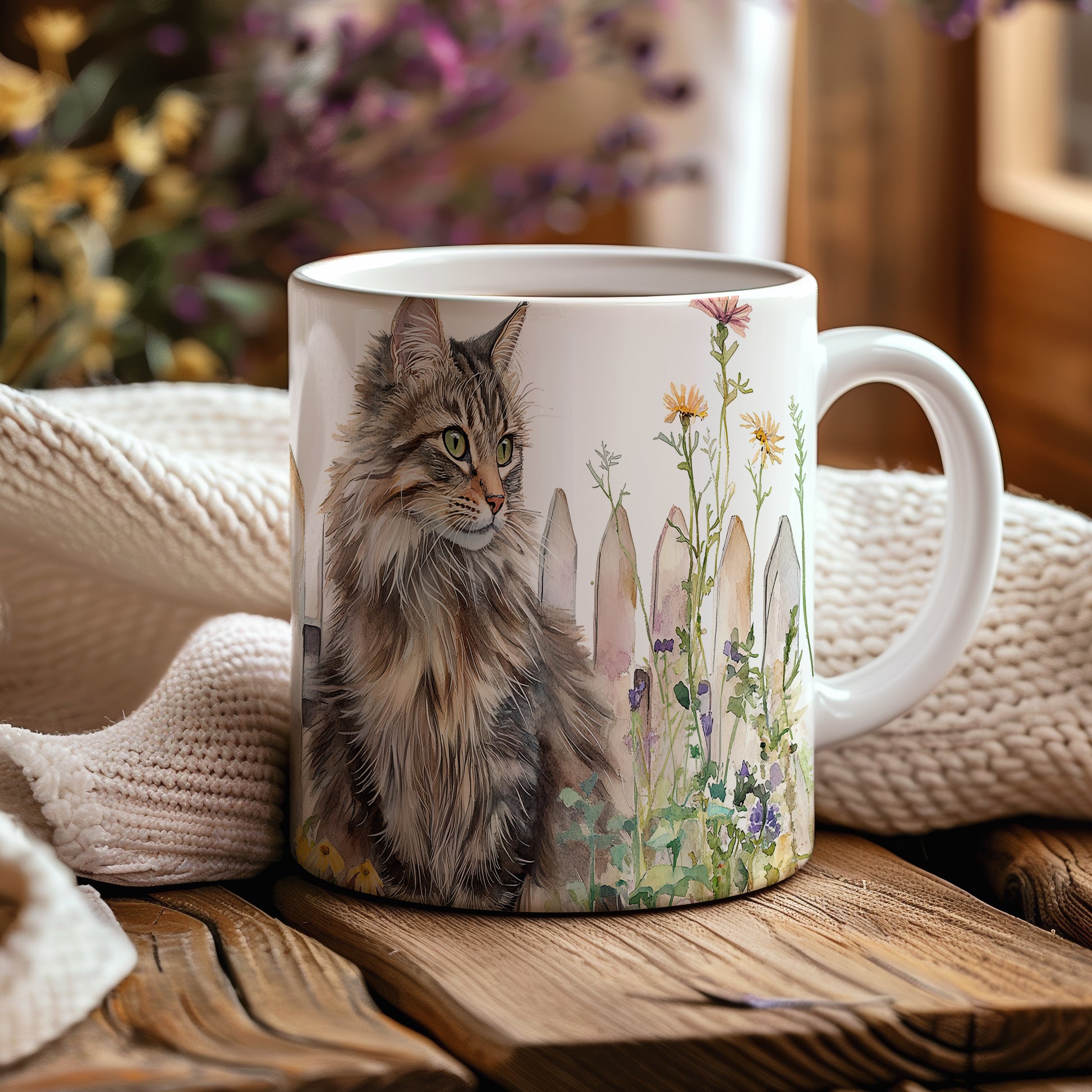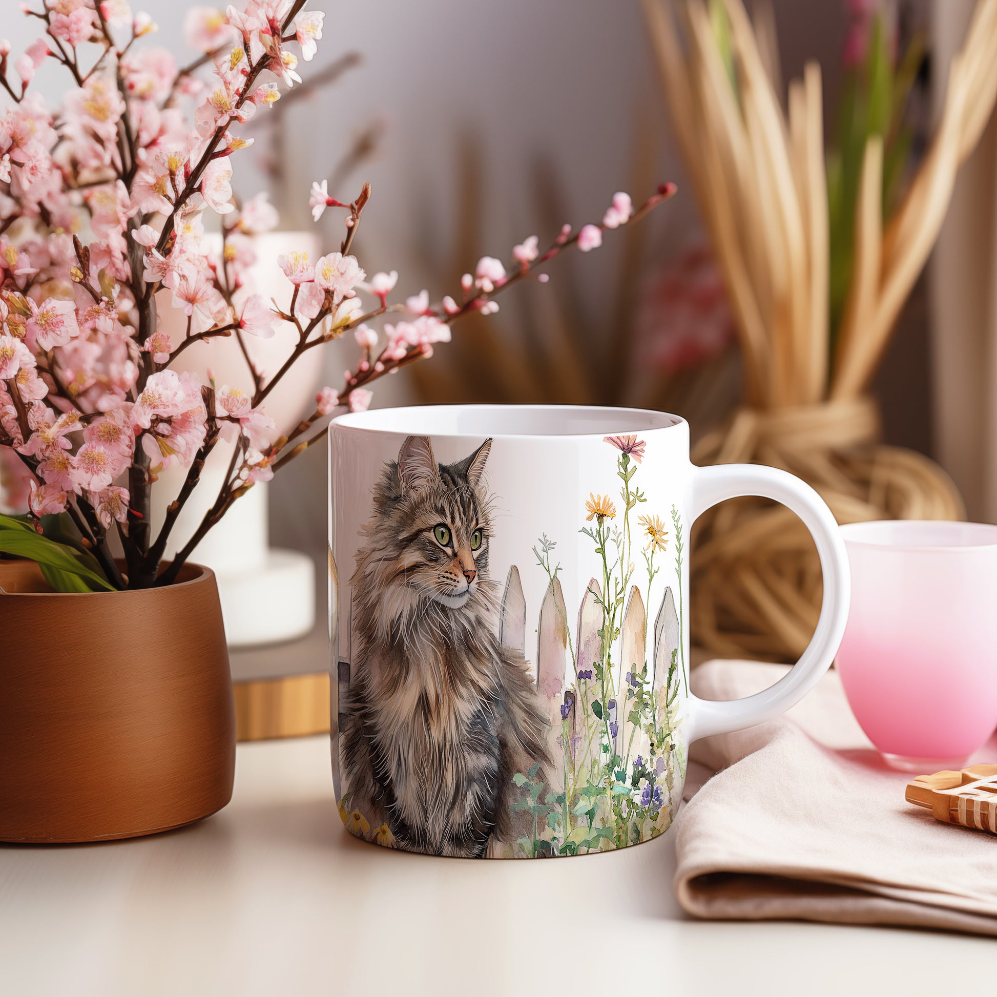 Tento hrnek zobrazuje krásnou ilustraci kočky vedle rozkvetlých květin. Je ideální pro milovníky koček a přírody, skvělý tip na dárek pro každého, kdo má rád zvířata. Materiál: keramika. Objem: 330 ml. Vhodné do myčky i mikrovlnky. Používání tohoto hrnku přináší radost a útulnost do každého dne.