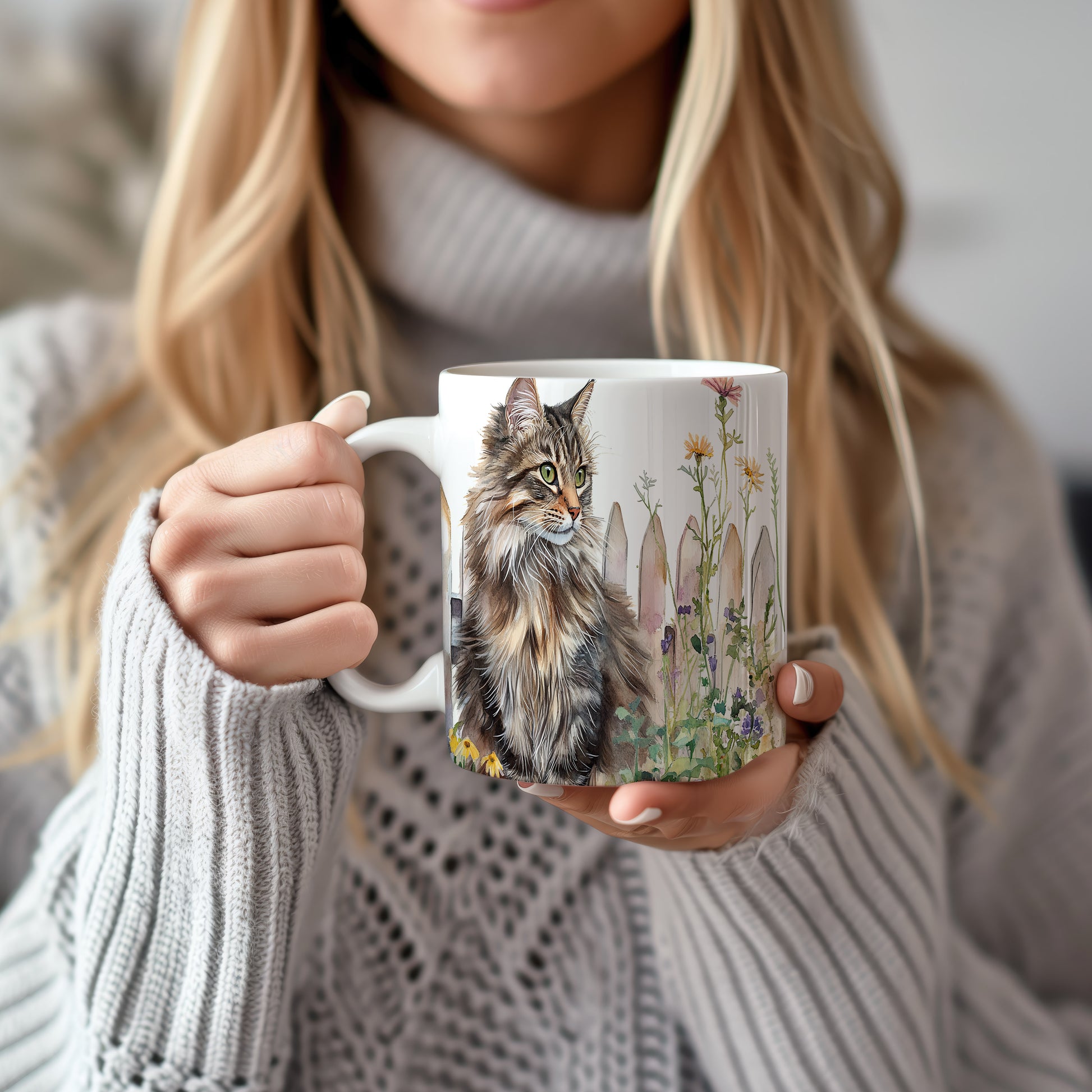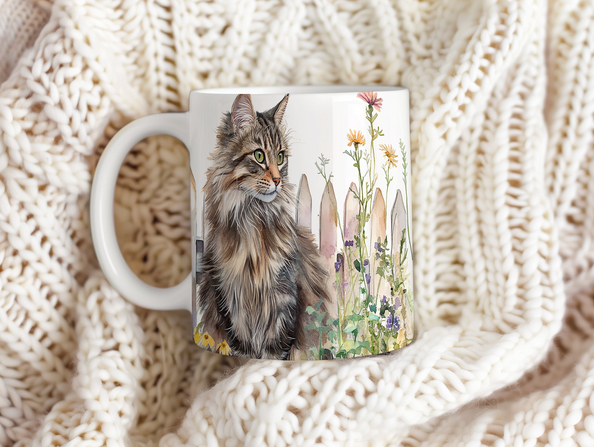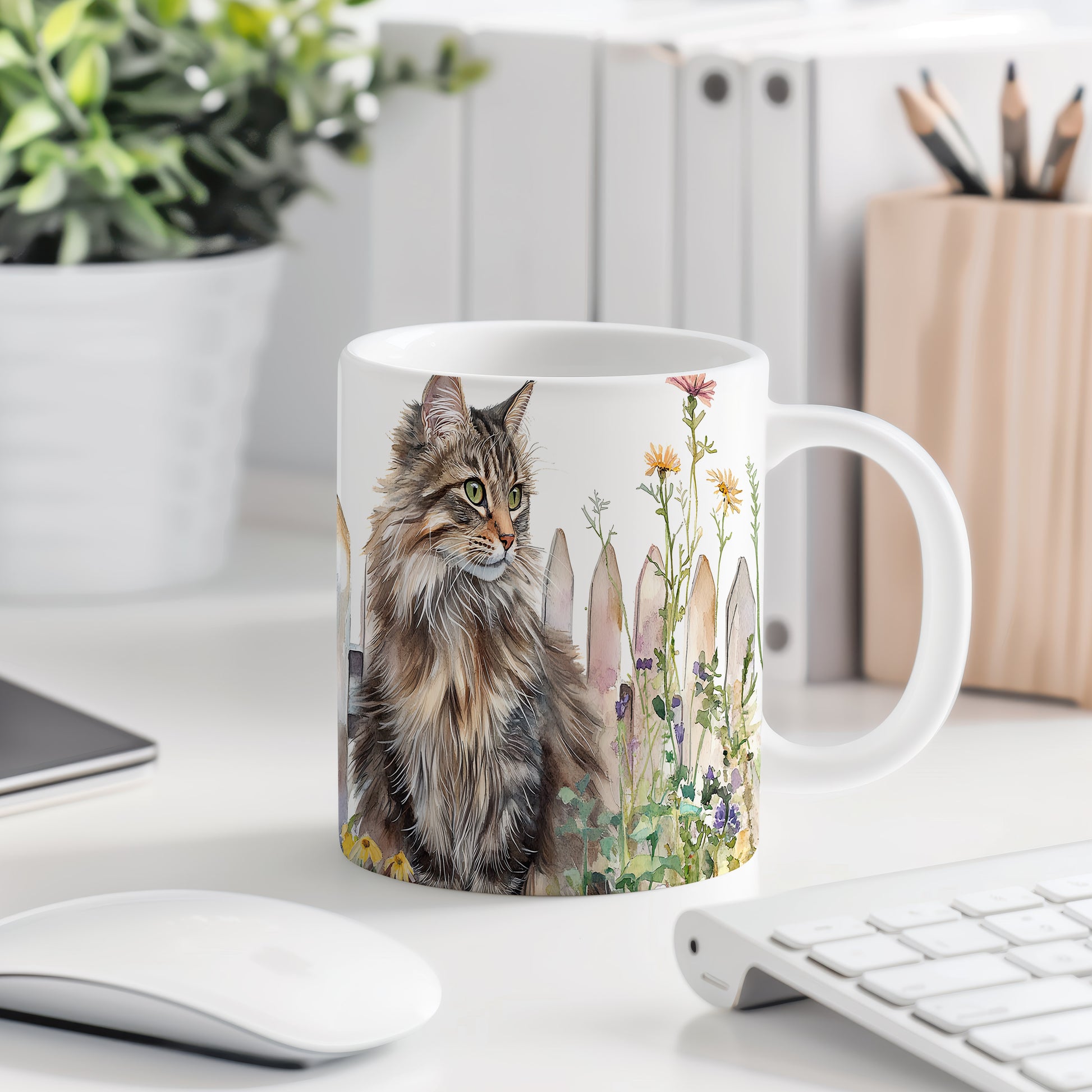 Tento hrnek zobrazuje krásnou ilustraci kočky vedle rozkvetlých květin. Je ideální pro milovníky koček a přírody, skvělý tip na dárek pro každého, kdo má rád zvířata. Materiál: keramika. Objem: 330 ml. Vhodné do myčky i mikrovlnky. Používání tohoto hrnku přináší radost a útulnost do každého dne.